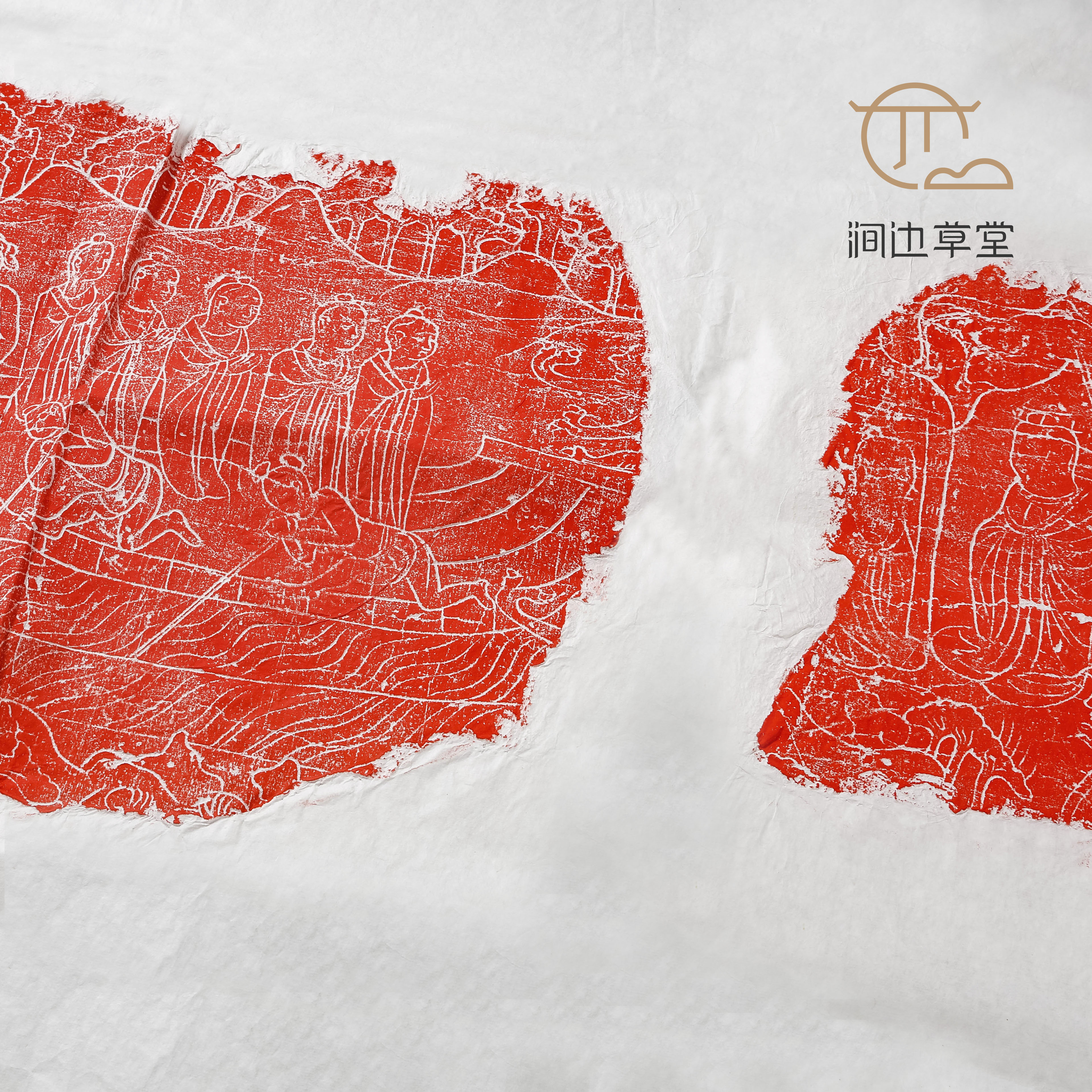 南北朝“普度众生”石刻原拓本,拓工精细,线刻极精美。画面中众菩萨乘船救助苦海中的人,以及骑骆驼的人物手持琵琶等题材,都是十分罕见的。此拓片库存仅3张,售完再无。