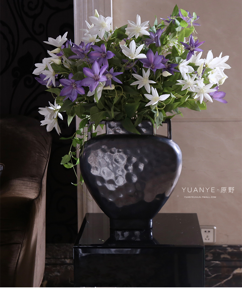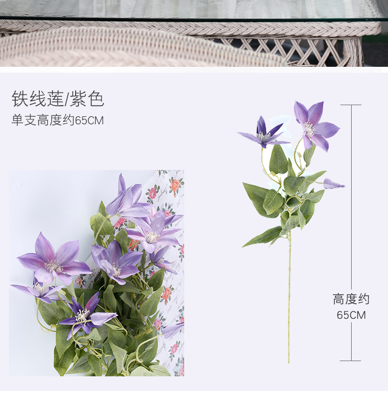 原野经典风大型爱丽丝套装铁线莲花高端仿真花假花装饰花摆件绢花