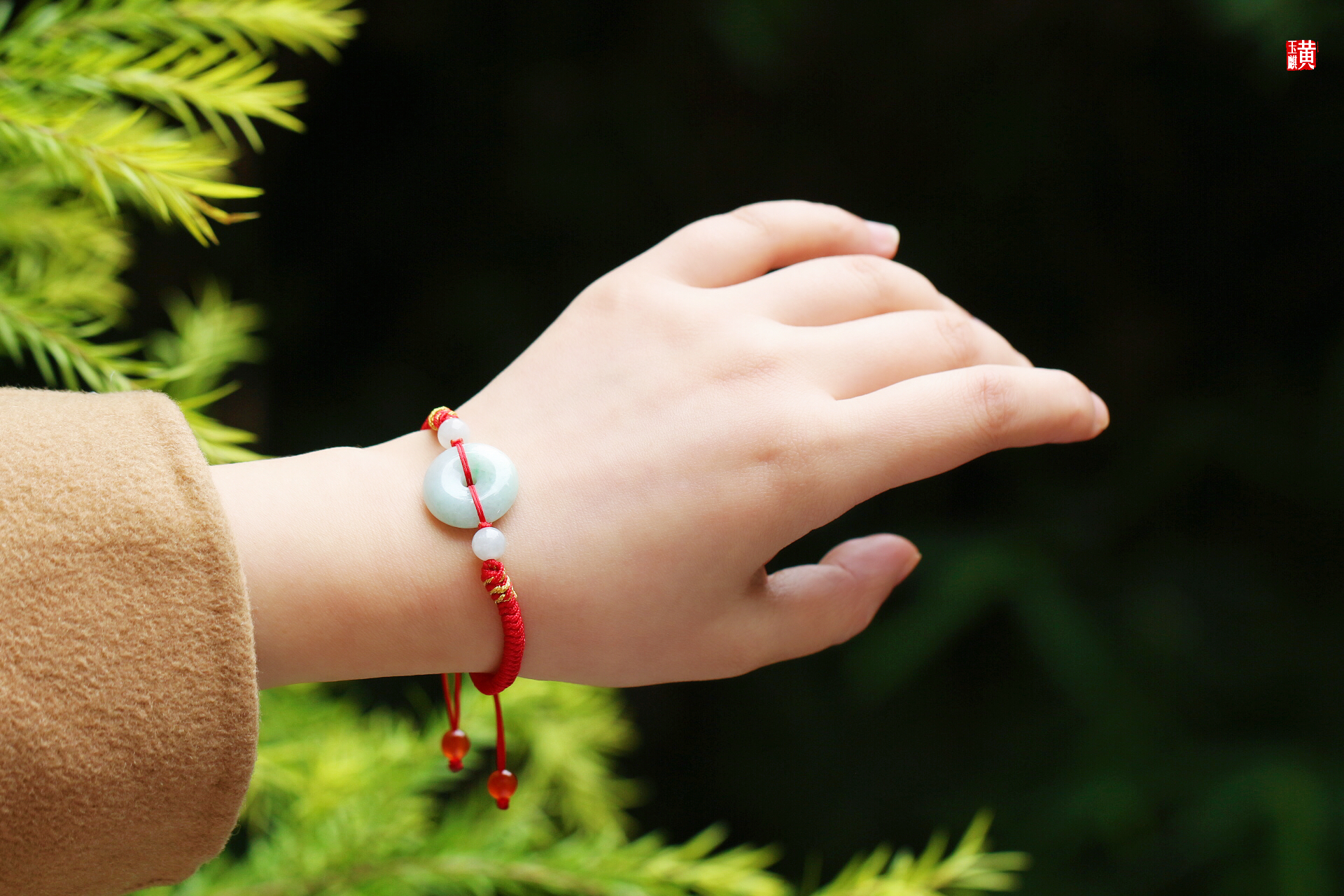 搭配: 编织红绳 / 翡翠珠子