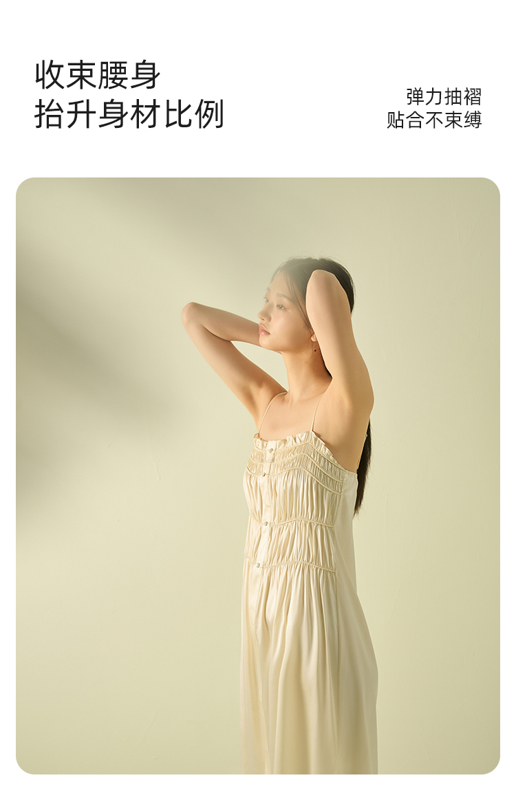 法式宫廷风桑罗抽褶收腰可爱真丝吊带裙2025年春季新品可外穿