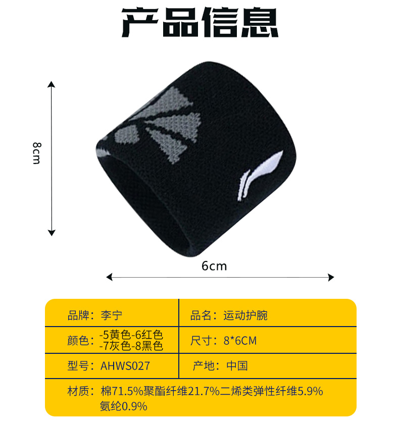 李宁运动护腕男女款运动健身跑步训练透气手腕AHWS027