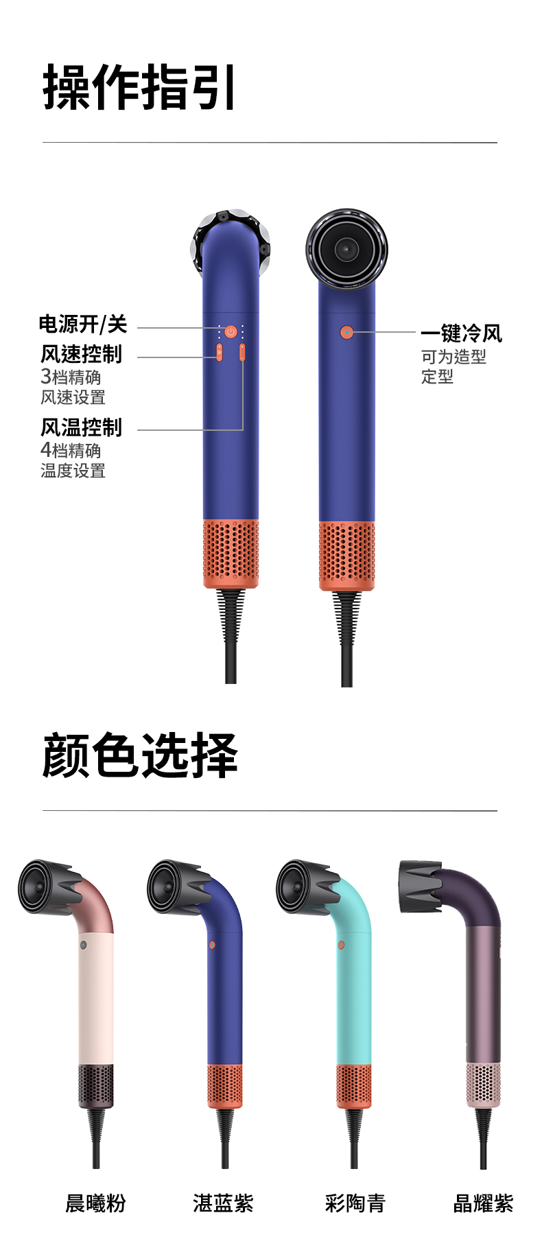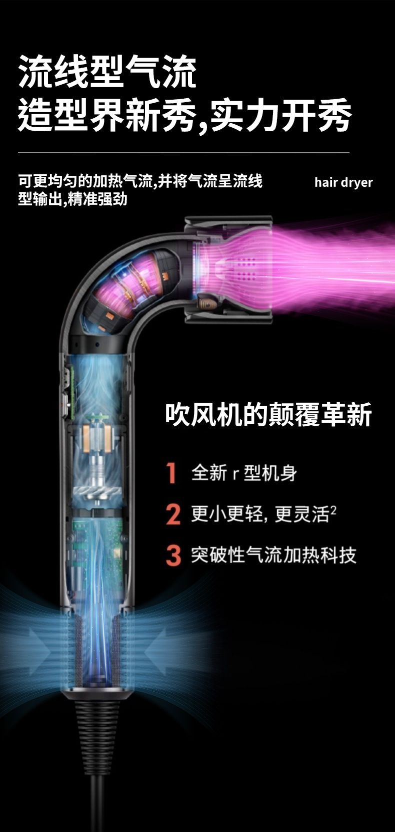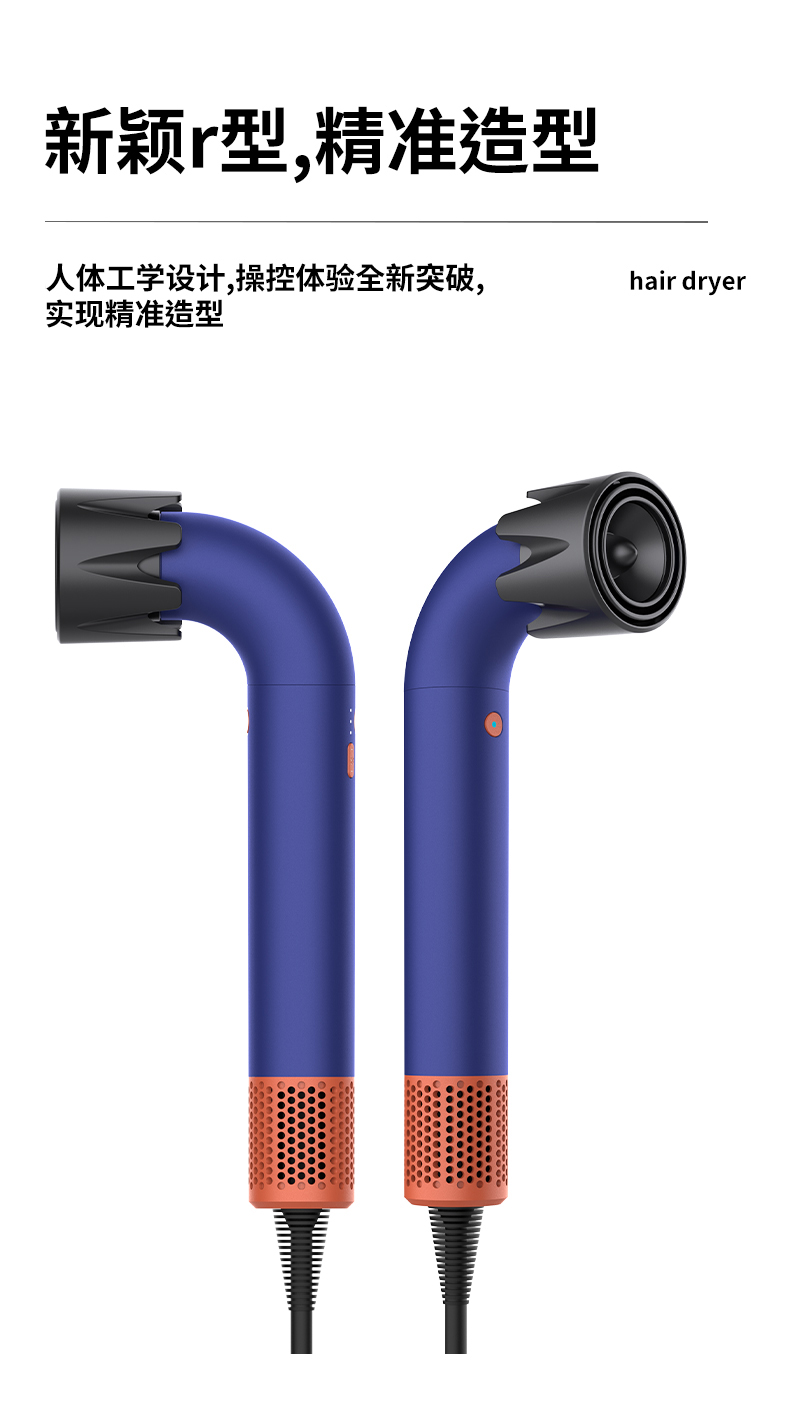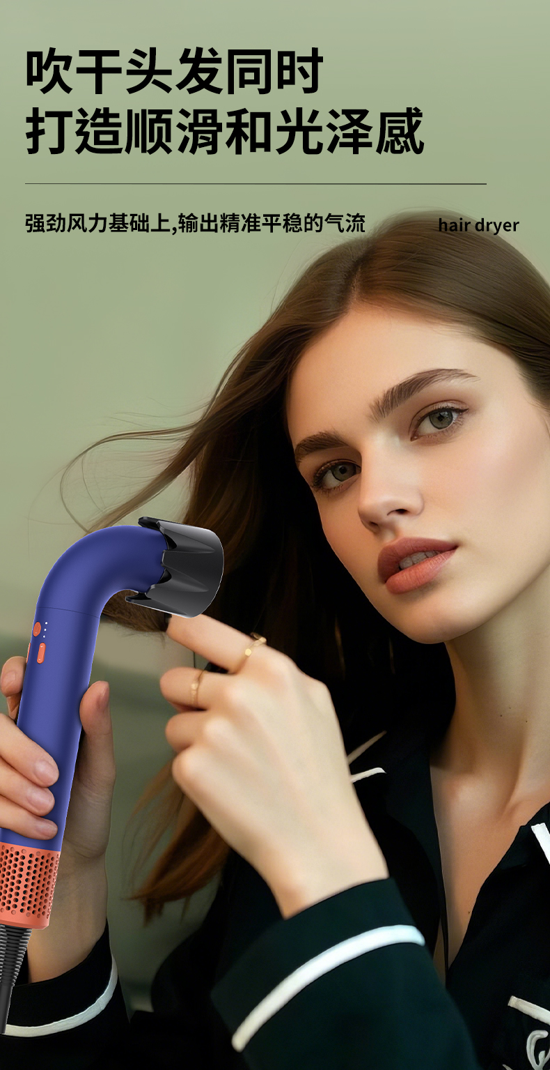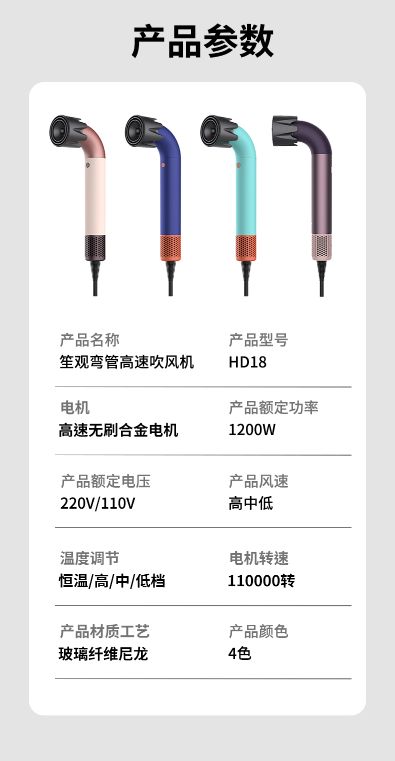 笙观弯管吹风机HD18 | 11w转/min高速马达,20Yi负离子,名牌同款Z新款
