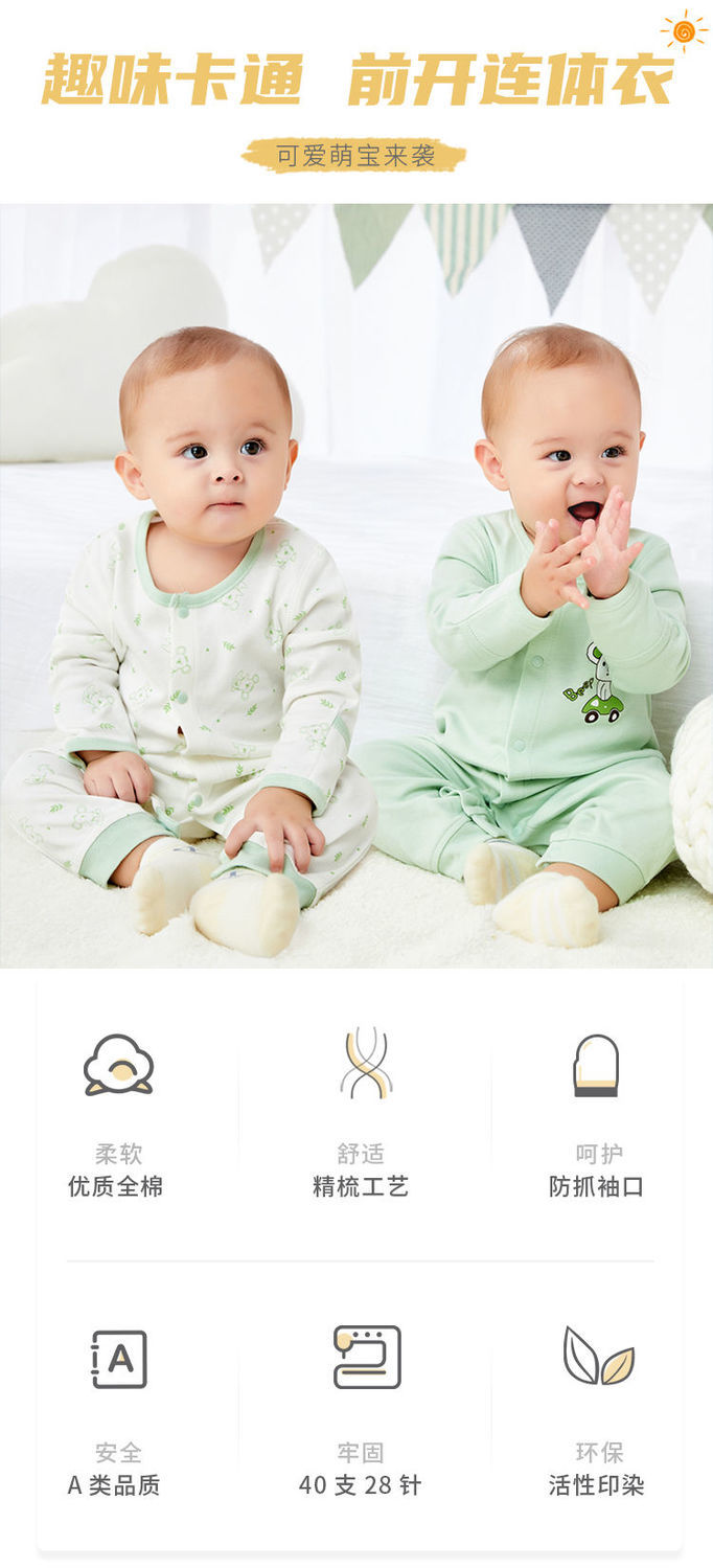 贝贝怡男女宝宝连体衣儿童连体睡衣男童纯棉幼儿防踢长袖春秋爬服211L478