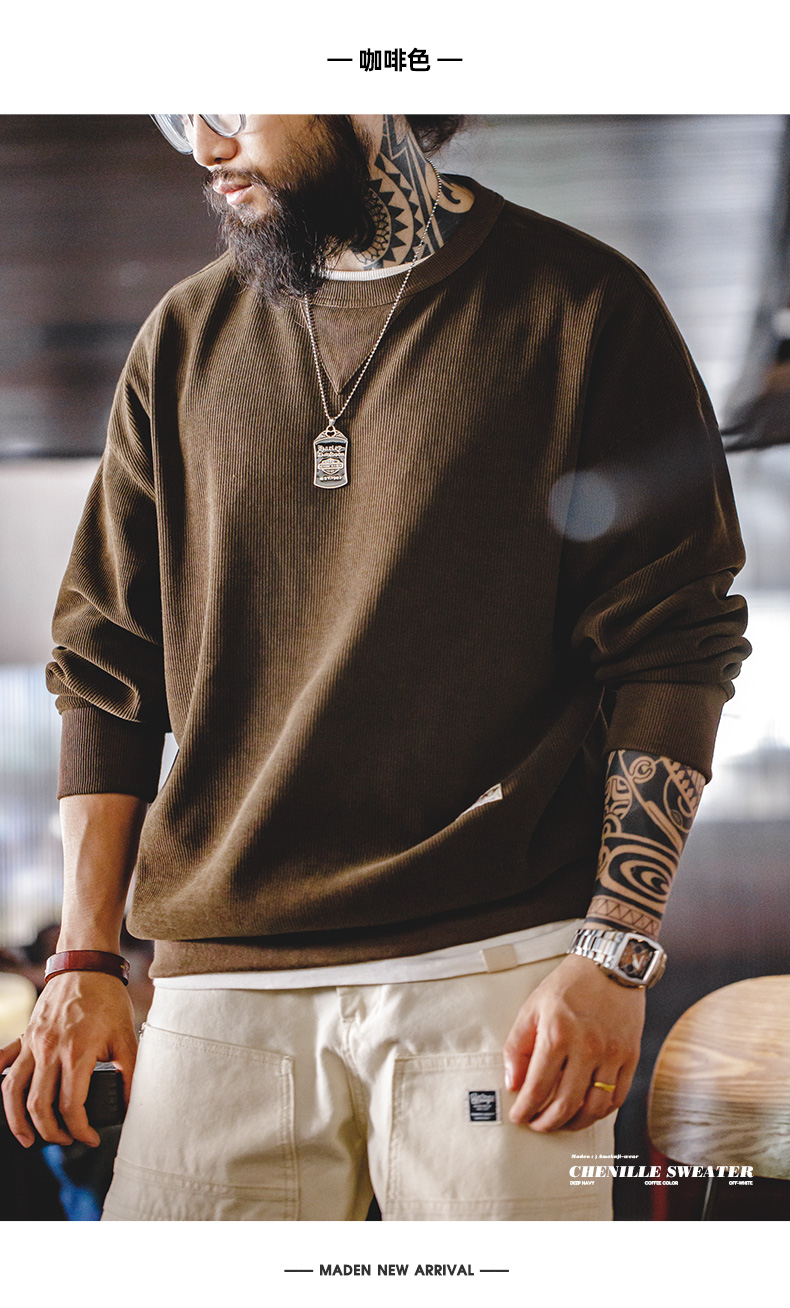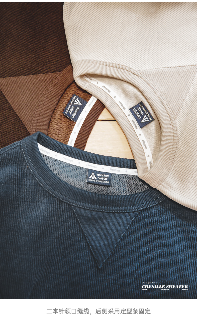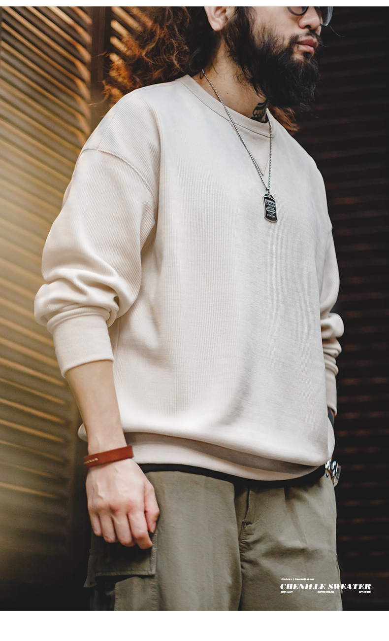 工装优选 美式复古重磅雪尼尔卫衣圆领基础款抗皱打底长袖T恤男秋