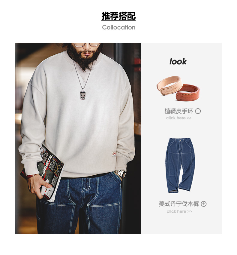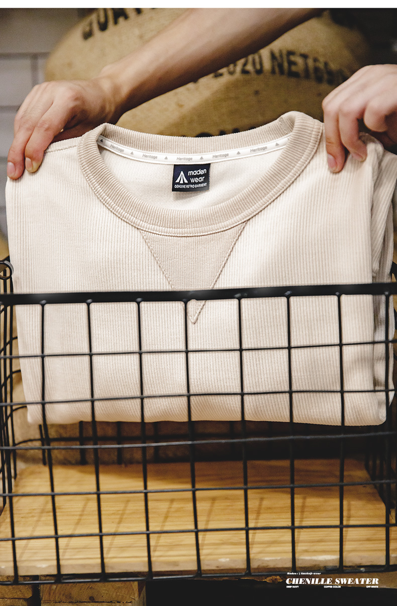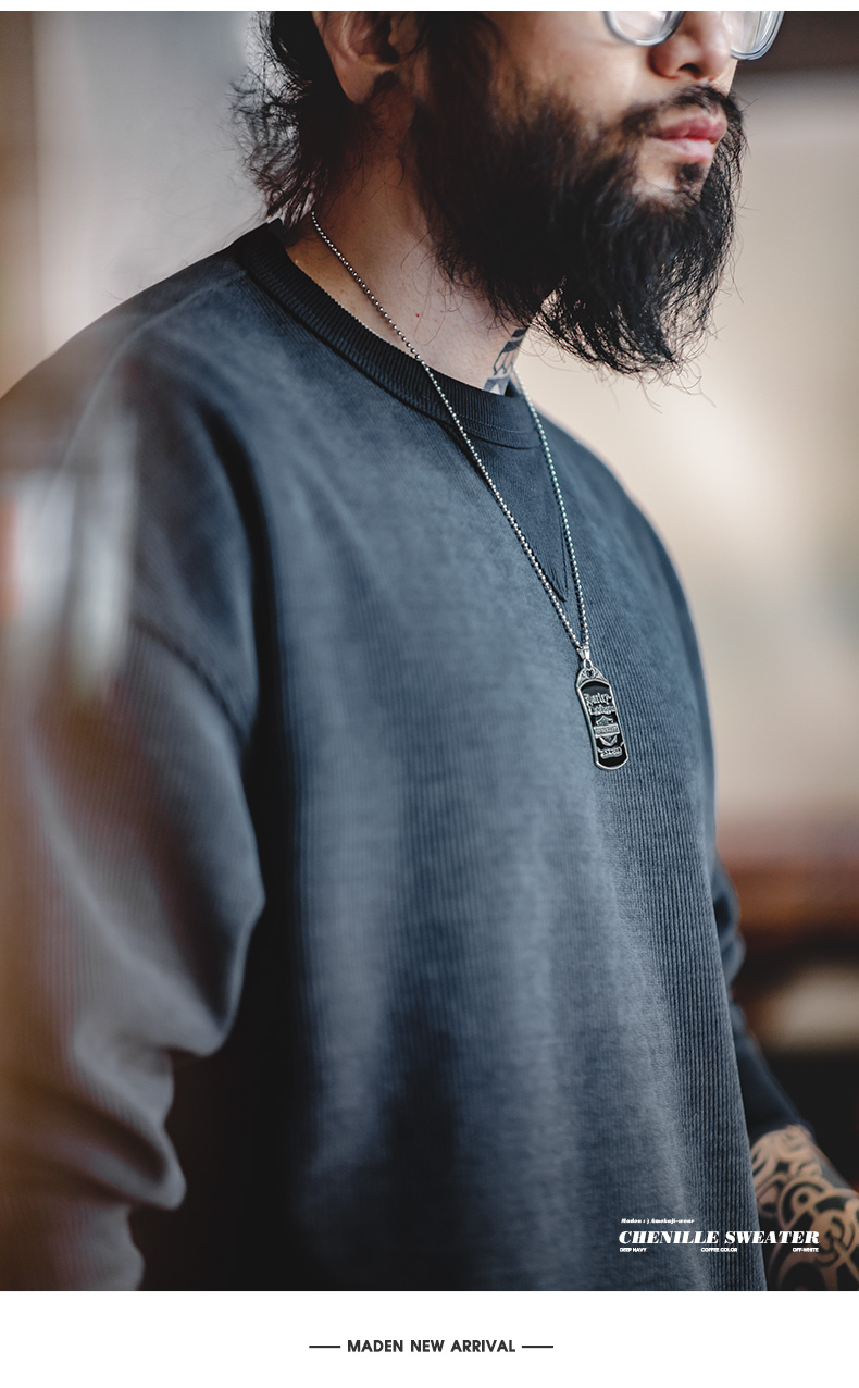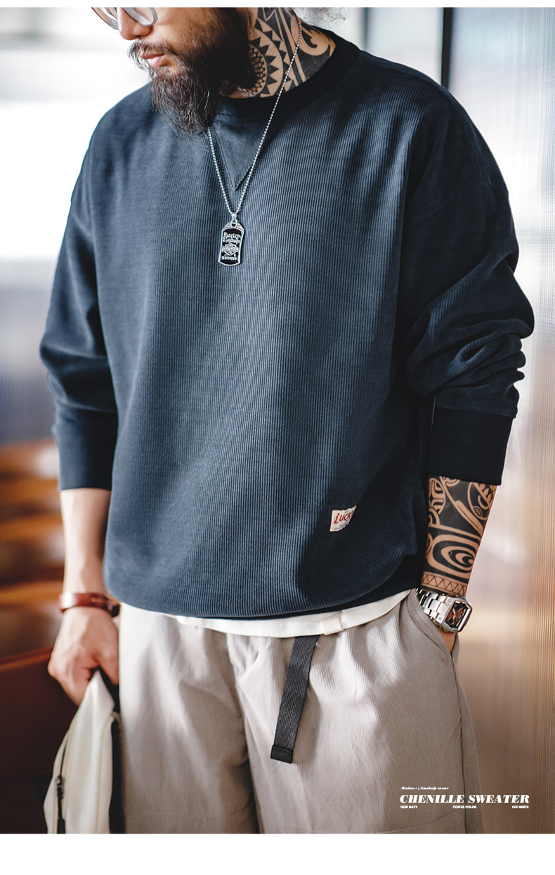 工装优选 美式复古重磅雪尼尔卫衣圆领基础款抗皱打底长袖T恤男秋