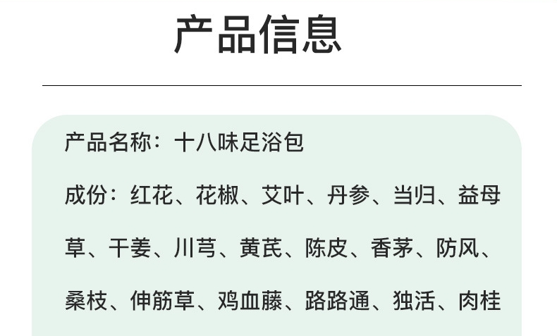 十八味足浴包 草本泡脚包 男女通用 (艾叶+红花+益母草+老姜+当归+黄芪等18味中草药)