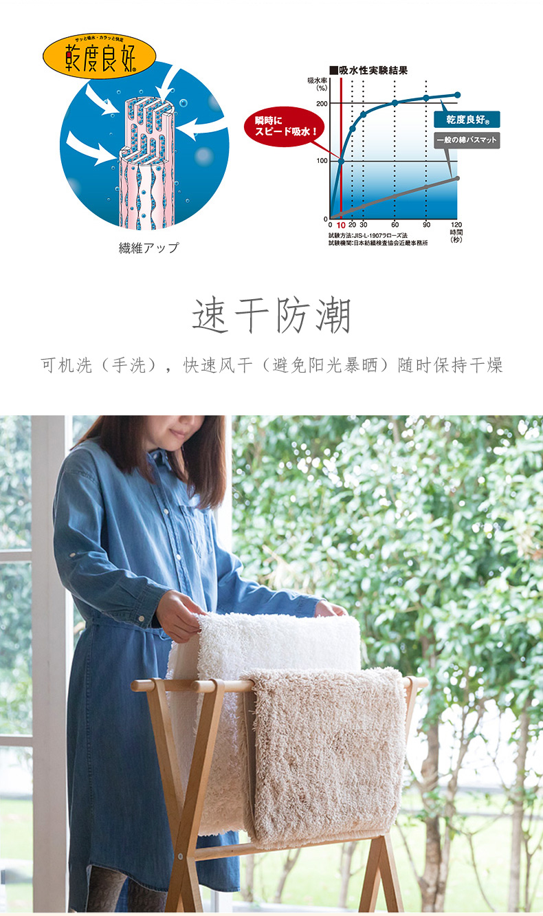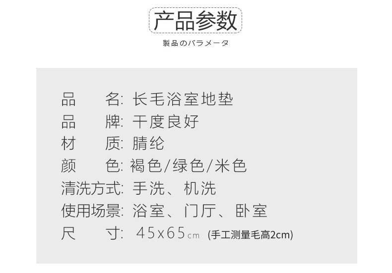 【6F】利快 强力吸水防滑地垫日本进口垫子家用浴室垫厨房脚垫门垫 长毛浴室地垫 45*65 绿色