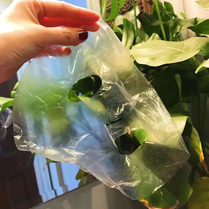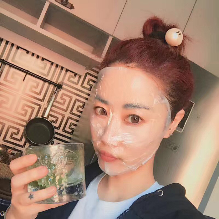 这个保鲜膜的用法也真的很简单,以前我还都是自己剪来着。这个保鲜膜面膜很薄,有眼睛鼻子嘴巴的露出口,直接在水膜、贴片面膜、珍珠粉面膜或者涂抹面膜之后加上一层就好了。这样做主要就是可以让面膜干的慢一些,让精华更多滴被脸吸收而不是被大气吸收。