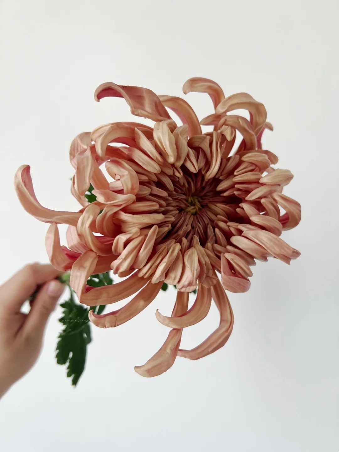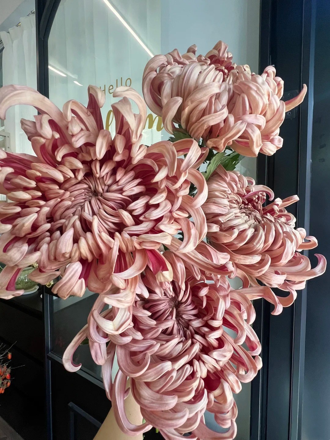 维也纳菊(盘龙菊),属于菊花的名贵品种,以下是关于它的特点与文化内涵介绍: 1. 形态特征 ◦ 花型硕大饱满,花瓣呈丝状卷曲,层层叠叠向外舒展,整体呈现出优雅的盘龙状,因此也被称作盘龙菊。 2. 观赏价值 ◦ 作为鲜切花品种,维也纳菊花期较长,水养条件下可观赏10天左右,适合单枝插瓶或搭配花艺作品。 ◦ 花型独特且花头较大,单瓶摆放就能成为空间视觉焦点,兼具艺术感与装饰性。 3. 文化寓意 ◦ 继承了菊花“高洁、长寿、吉祥”的传统寓意,维也纳菊更添温柔浪漫的气质,成为家居插花的热门选择。