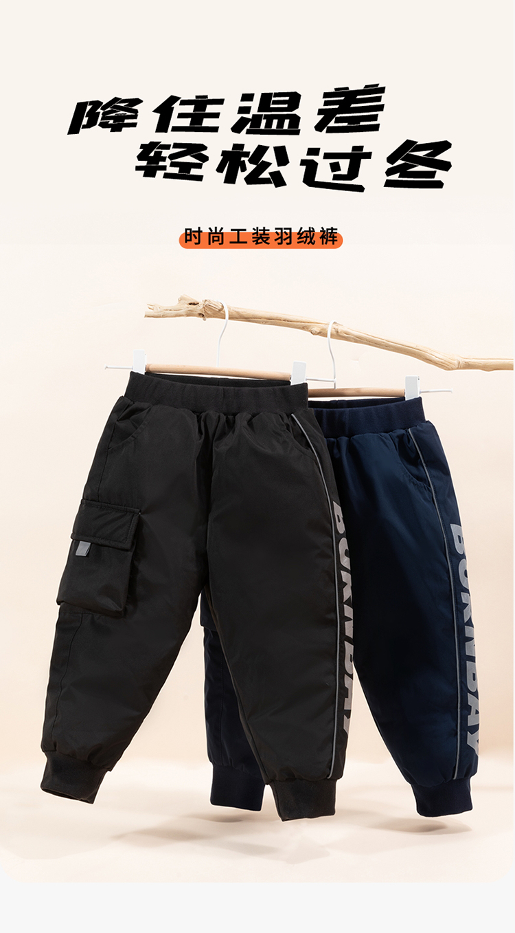 贝贝怡童装男童时尚工装羽绒裤子冬季宝宝保暖加厚休闲束脚裤234K2527