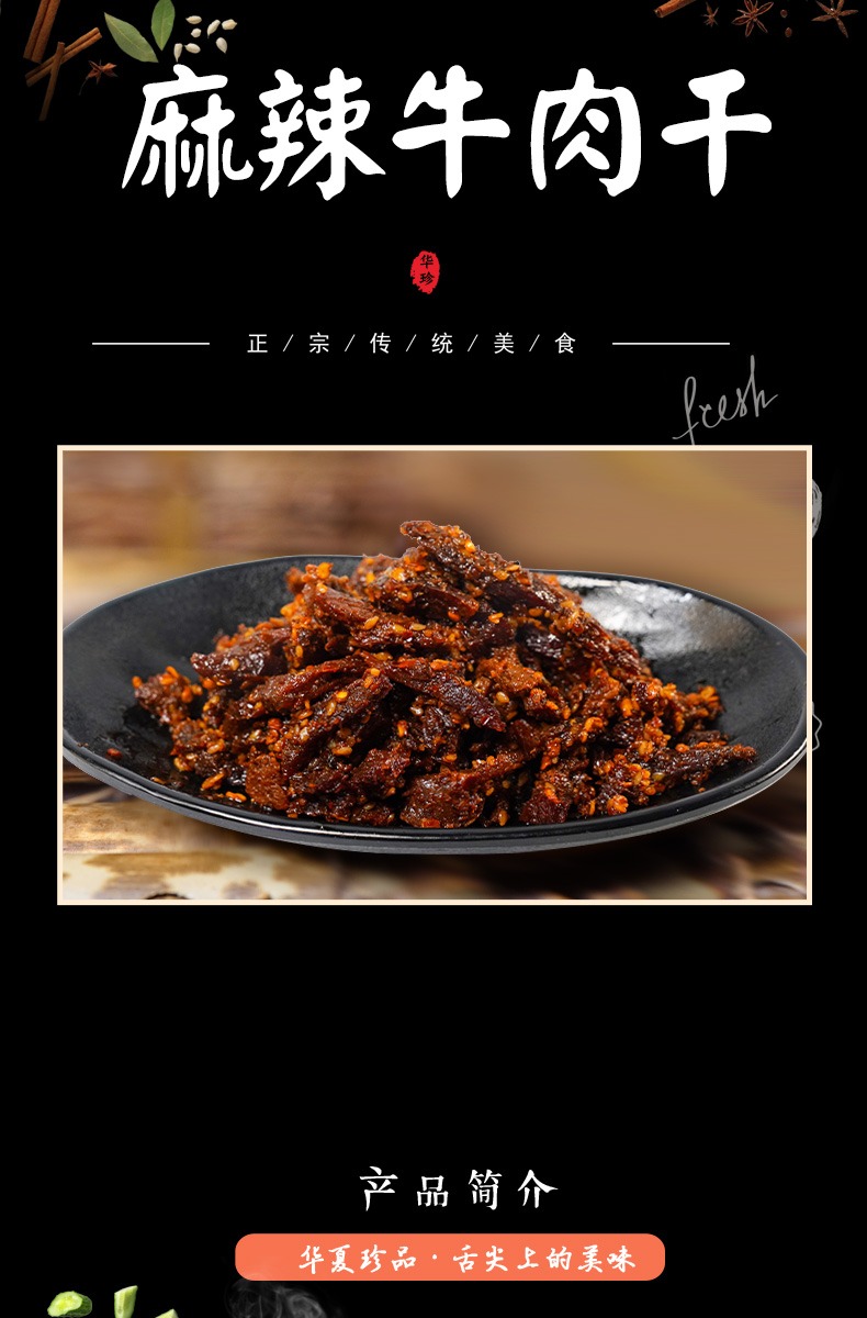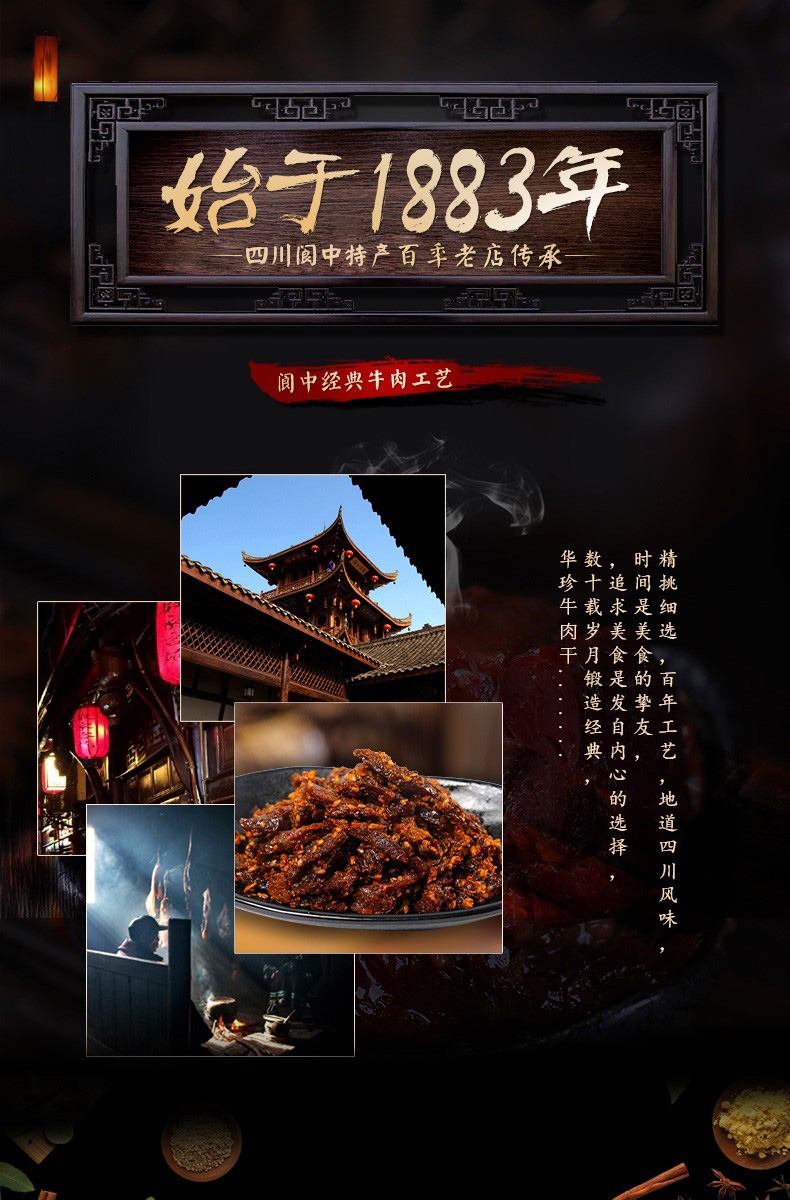 - 四川省非物质文化遗产,盐叶子牛肉,清真干牛肉,酥软鲜香,入口化渣。四川省阆中市地方特色风味小吃。阆中华珍风味食品公司直营,华珍牛肉唯一有赞官方旗舰店。