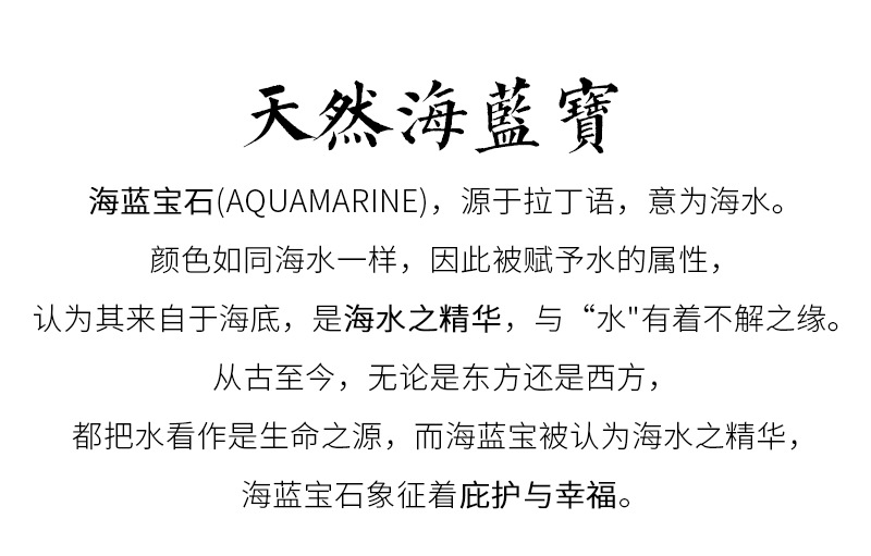 4、增强直觉与灵性:海蓝宝被认为具有提升个人灵性和直觉的作用,常被用于冥想和灵性修行中,帮助清晰思维和内心洞察。