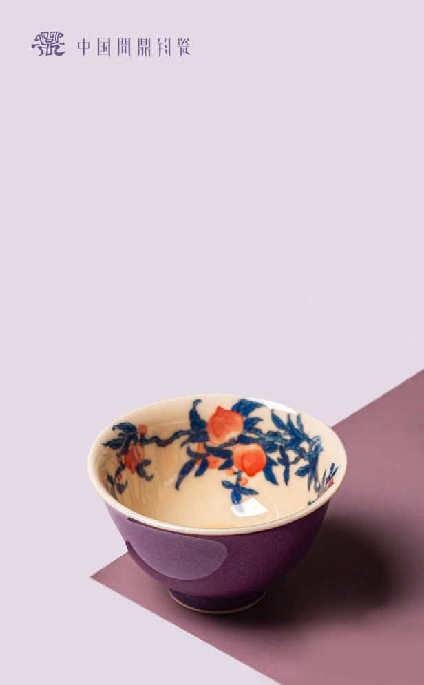 问鼎汝瓷鼎峰柴窑月白观月杯(梵红描金狮子绣球)