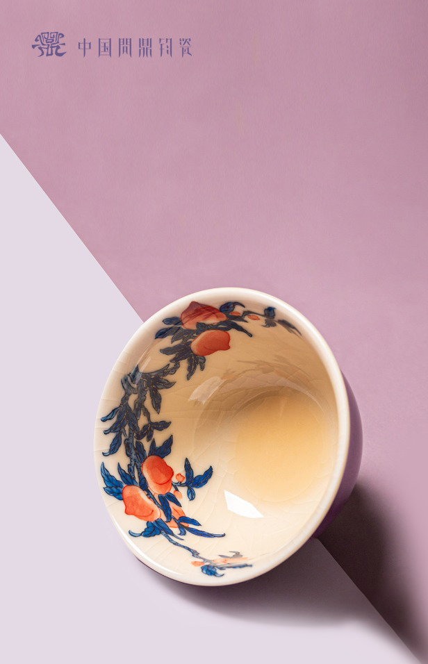 问鼎钧瓷鹅黄青花雨尘杯(多福)