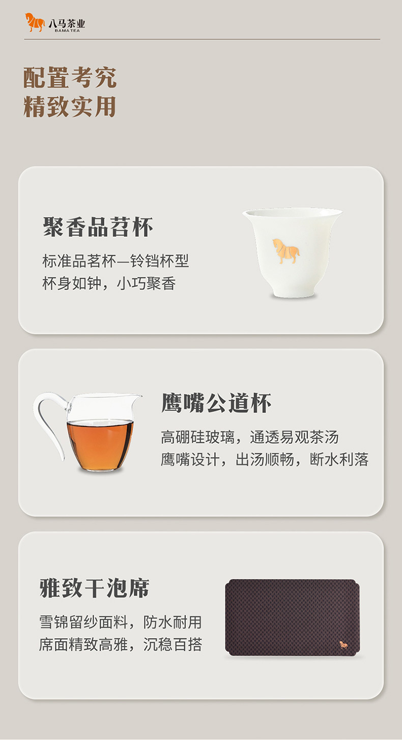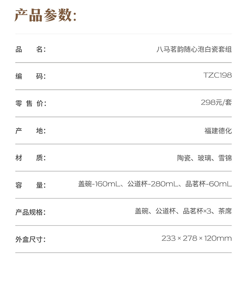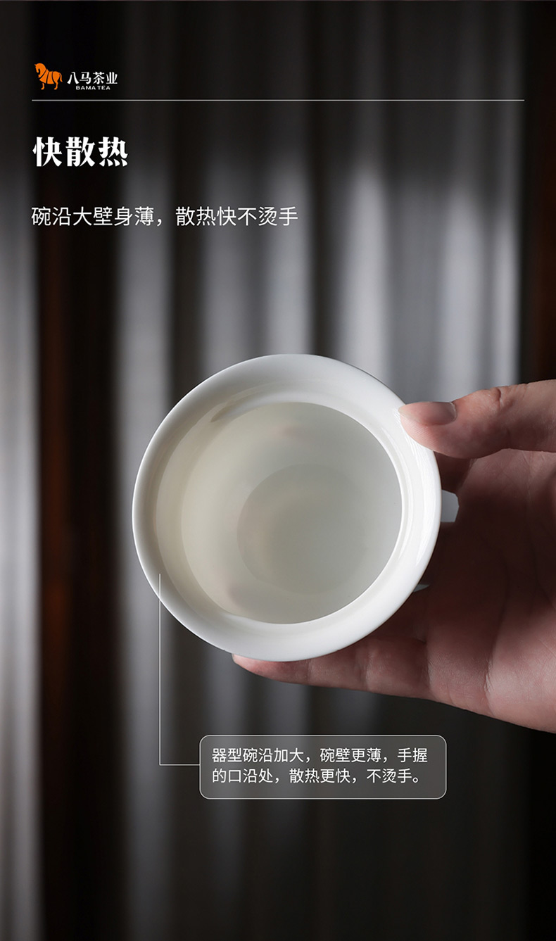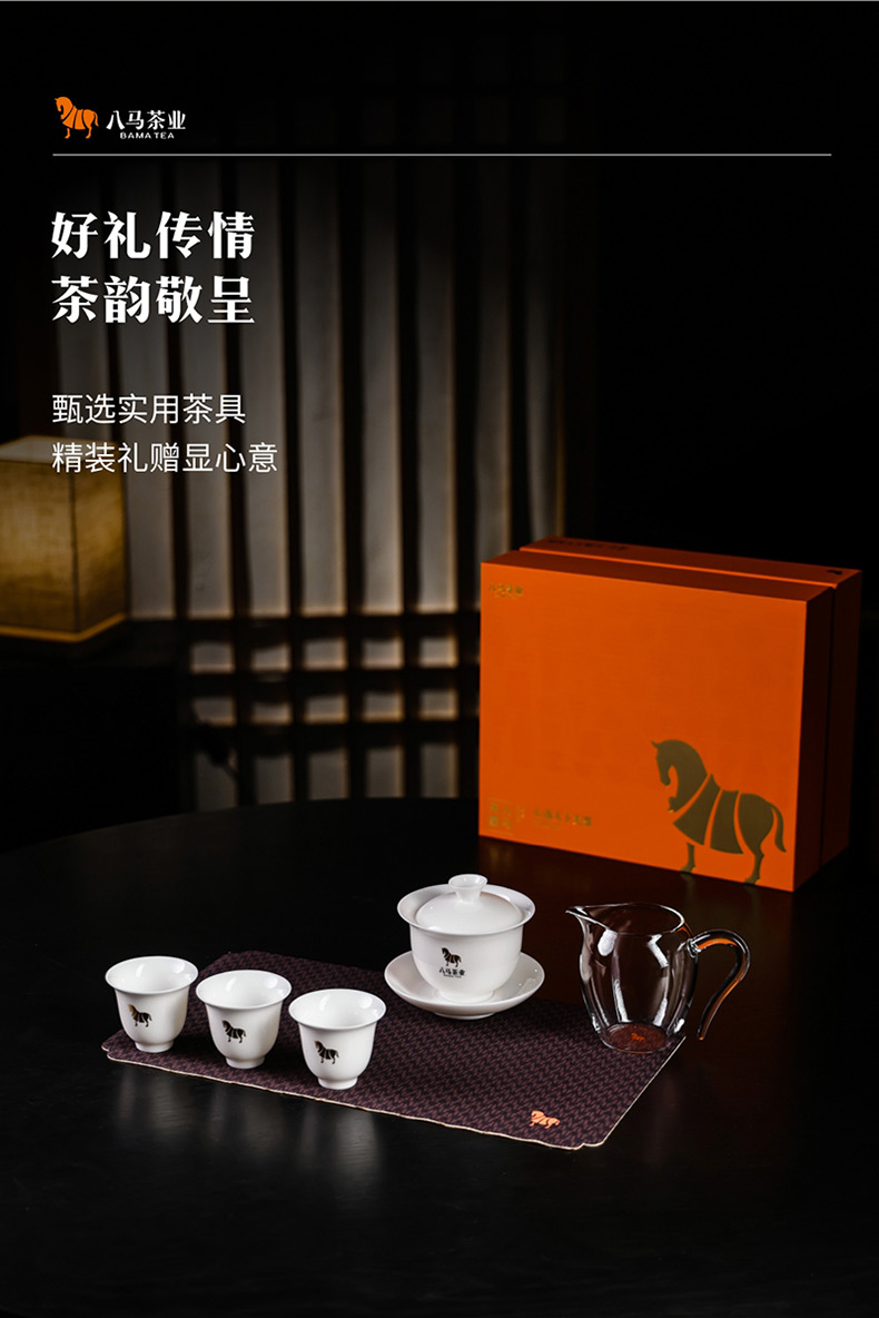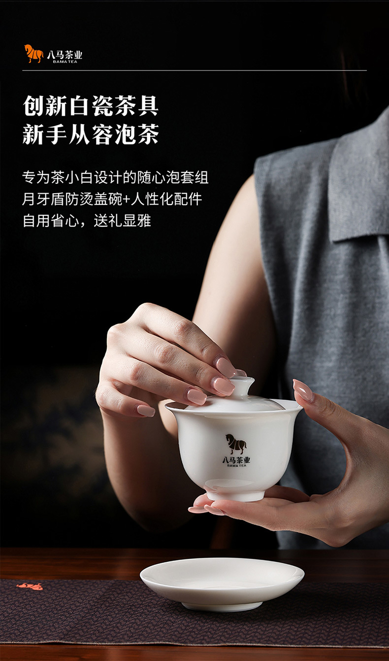 八马茶具 | 茗韵随心泡白瓷套组盖碗-160mL、公道杯-280mL、品茗杯-60mL