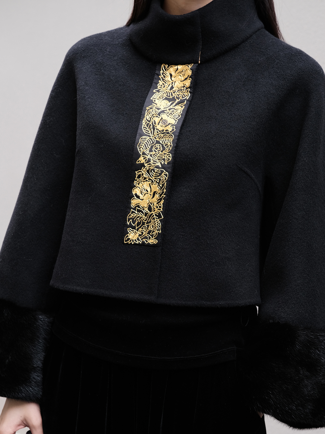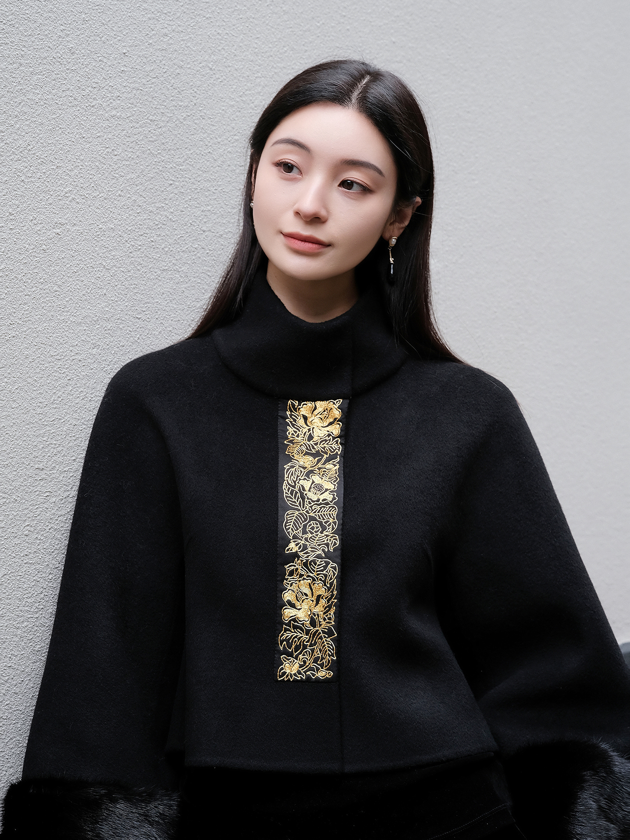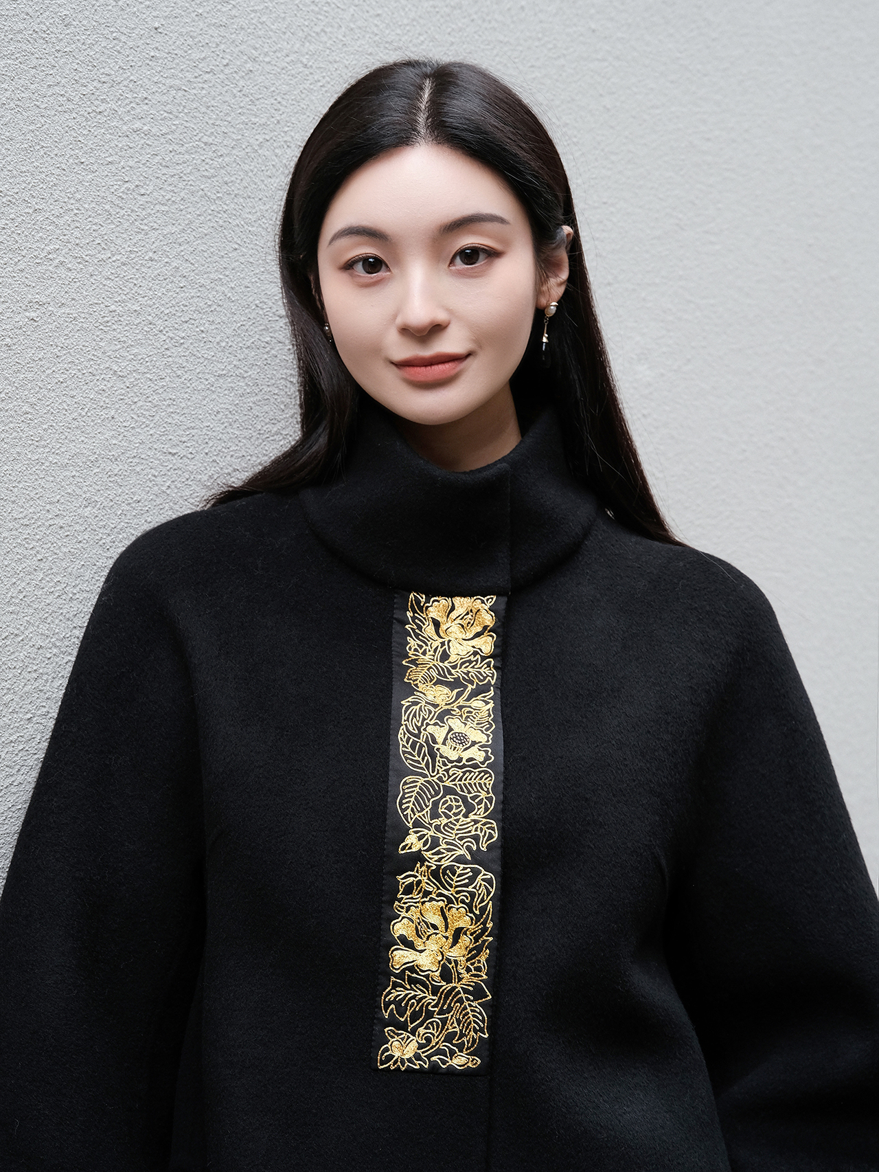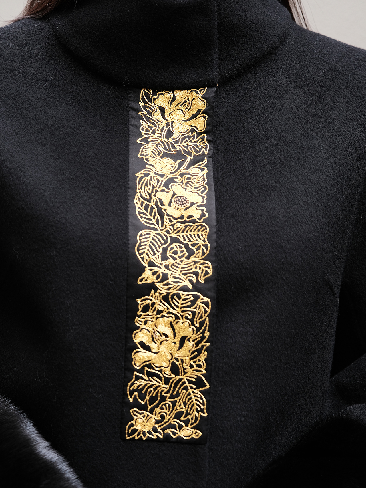 盛唐牡丹 | 手工盘金绣双面穿羊毛外套