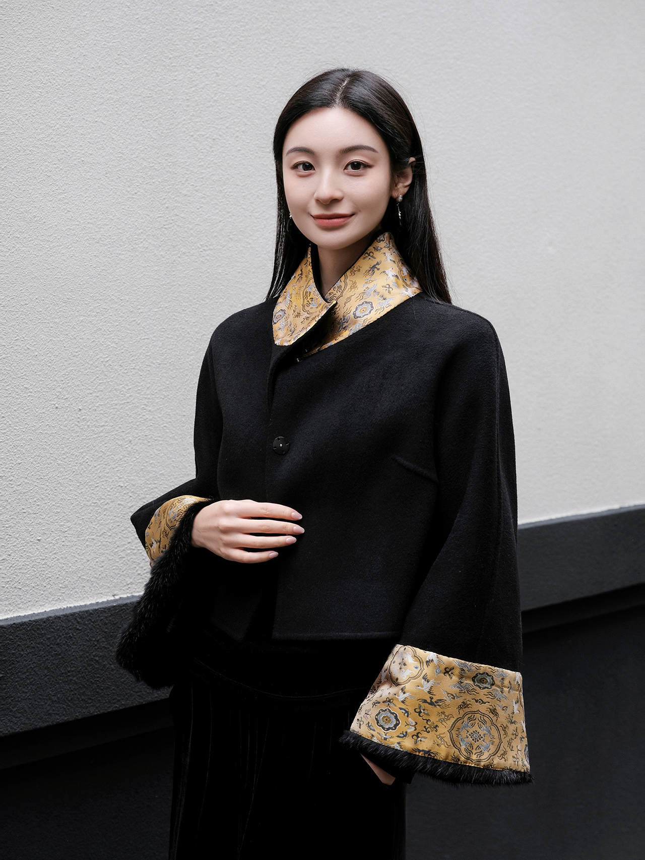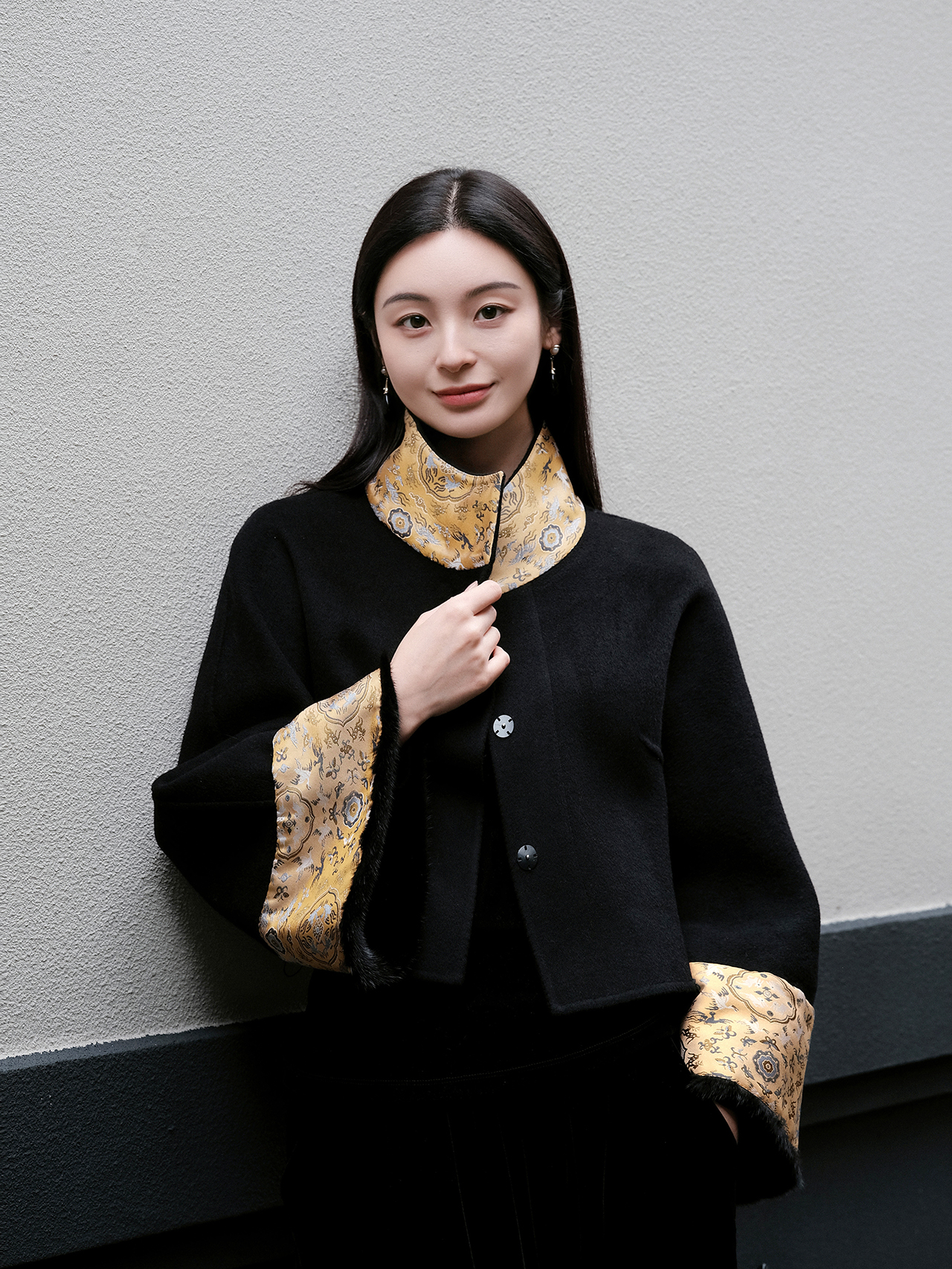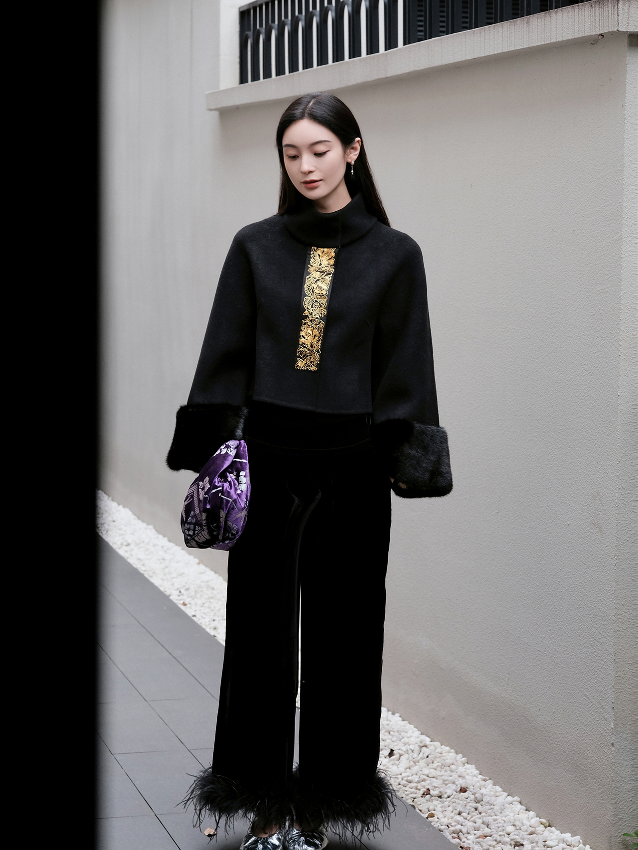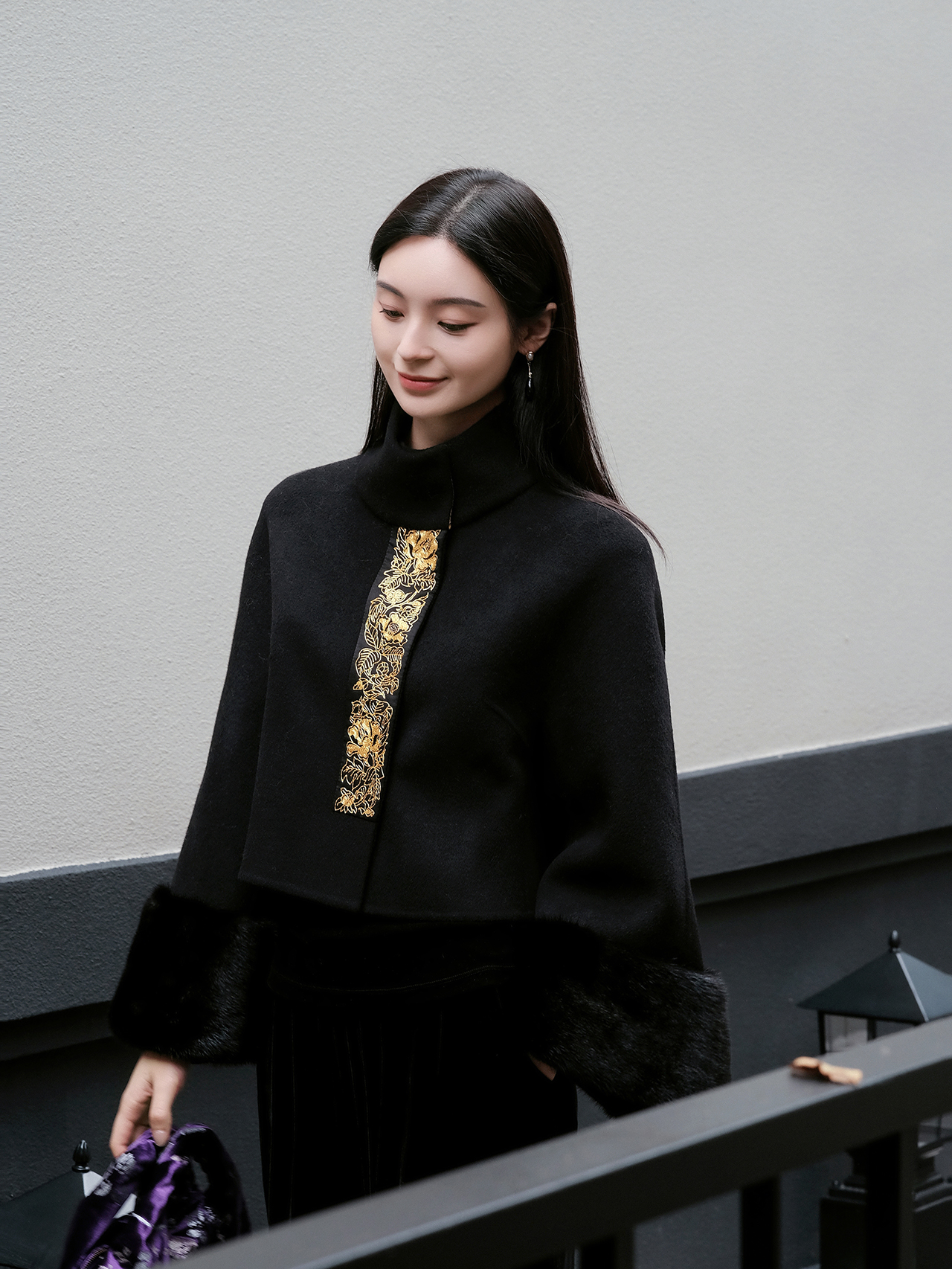 盛唐牡丹 | 手工盘金绣双面穿羊毛外套