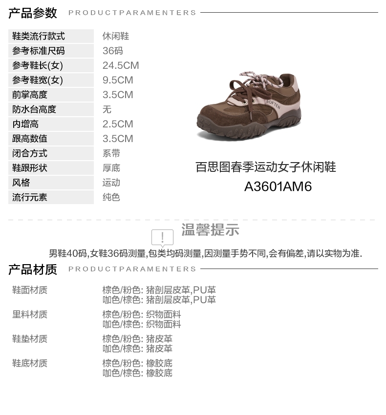 【云粉节】BF楼百思图2026春季新款真皮厚底德训鞋运动鞋女休闲鞋A3601AM6吊牌价799.现价499