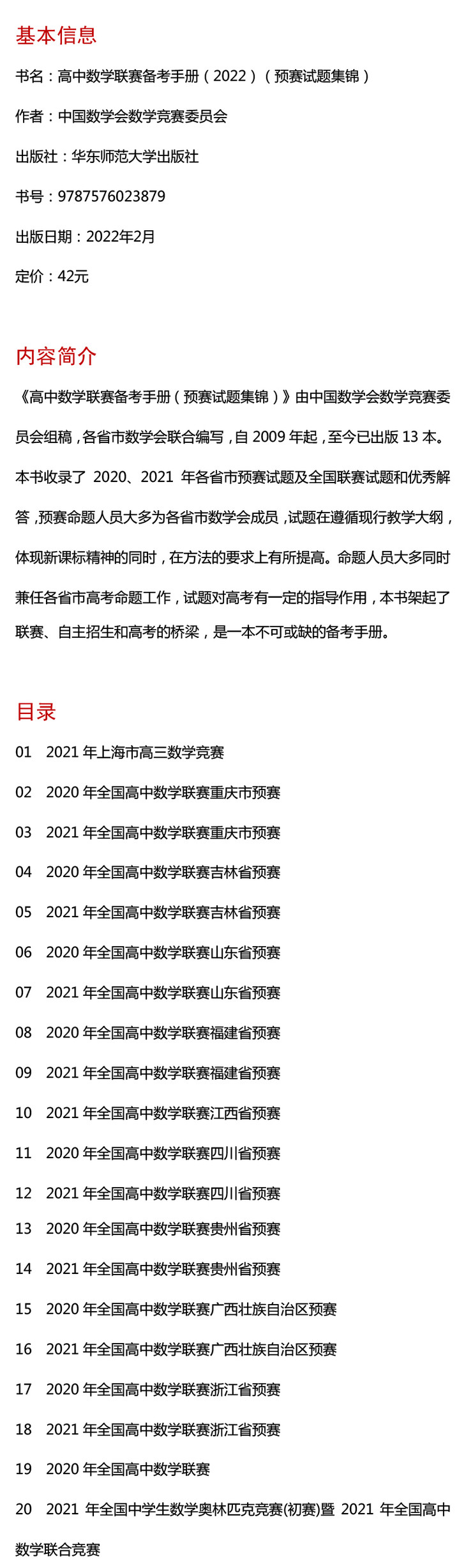 2009-2023高中数学联赛备考手册 预赛试题集锦 中国数学会数学竞赛委员会主编