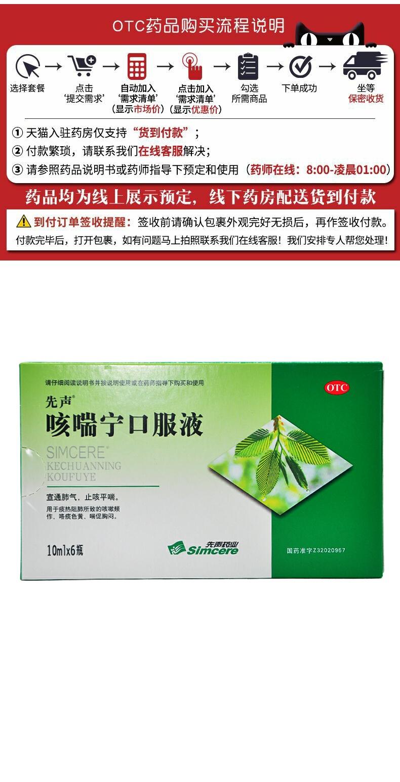 先声咳喘宁口服液6支宣通肺气止咳平喘止咳祛痰胸闷
