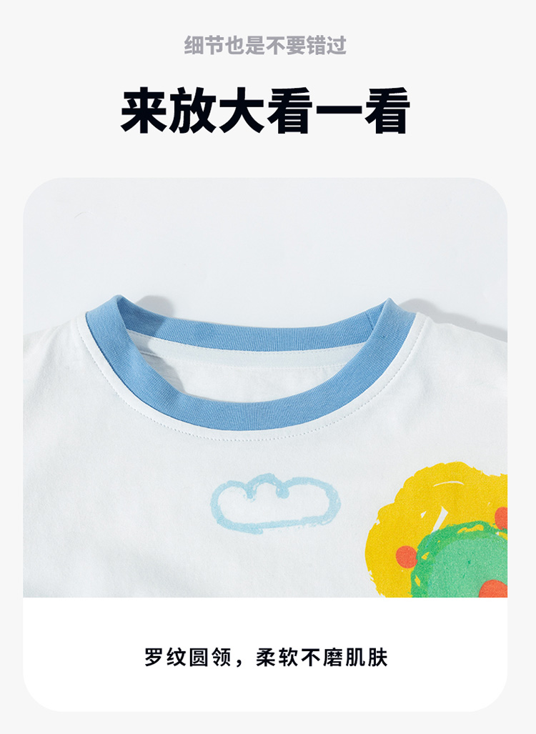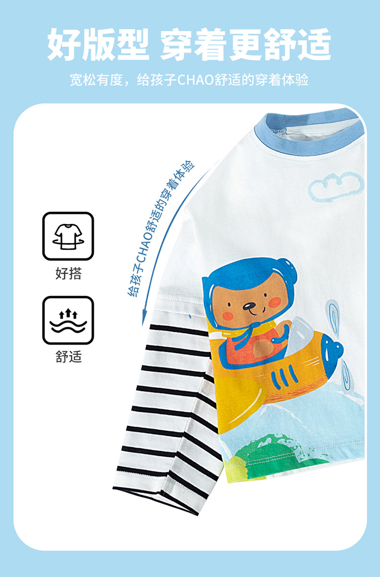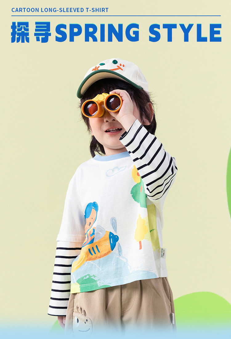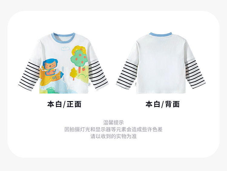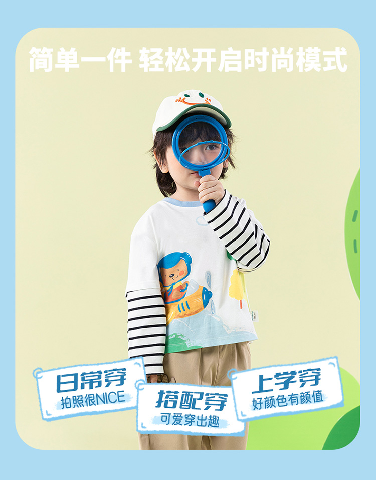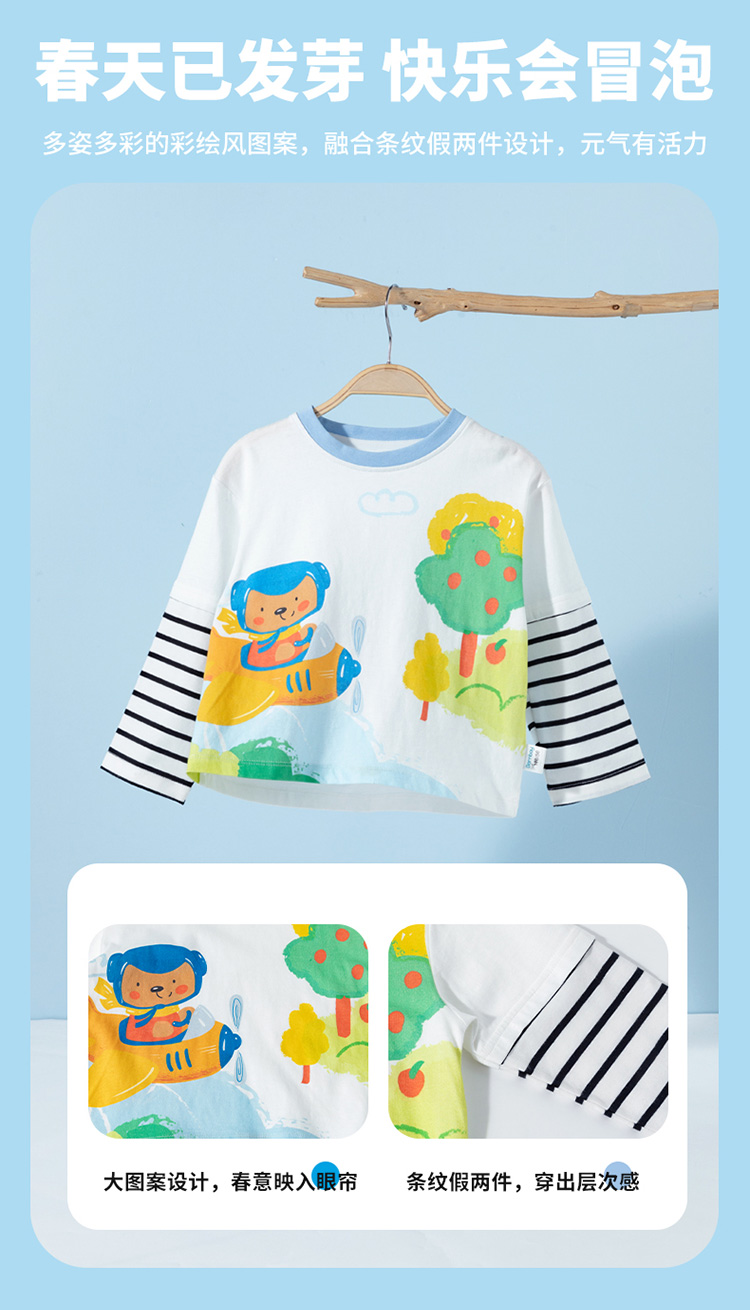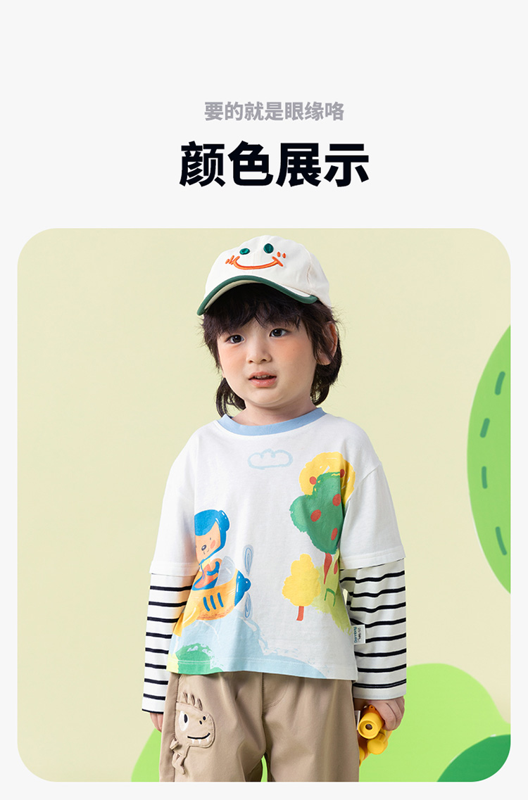 【假两件】2025新款春季简约时尚纯棉圆领休闲t恤儿童上衣