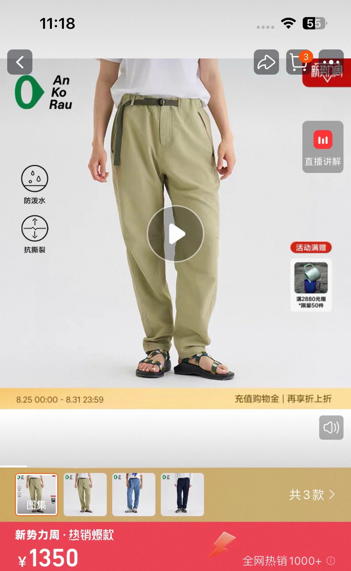 2509415 素 三色直锥裤,运动裤 户外休闲
