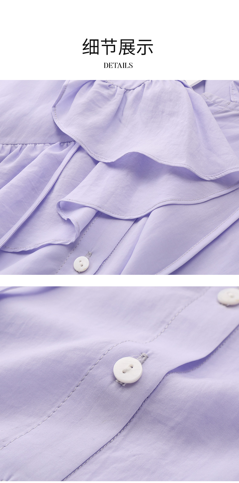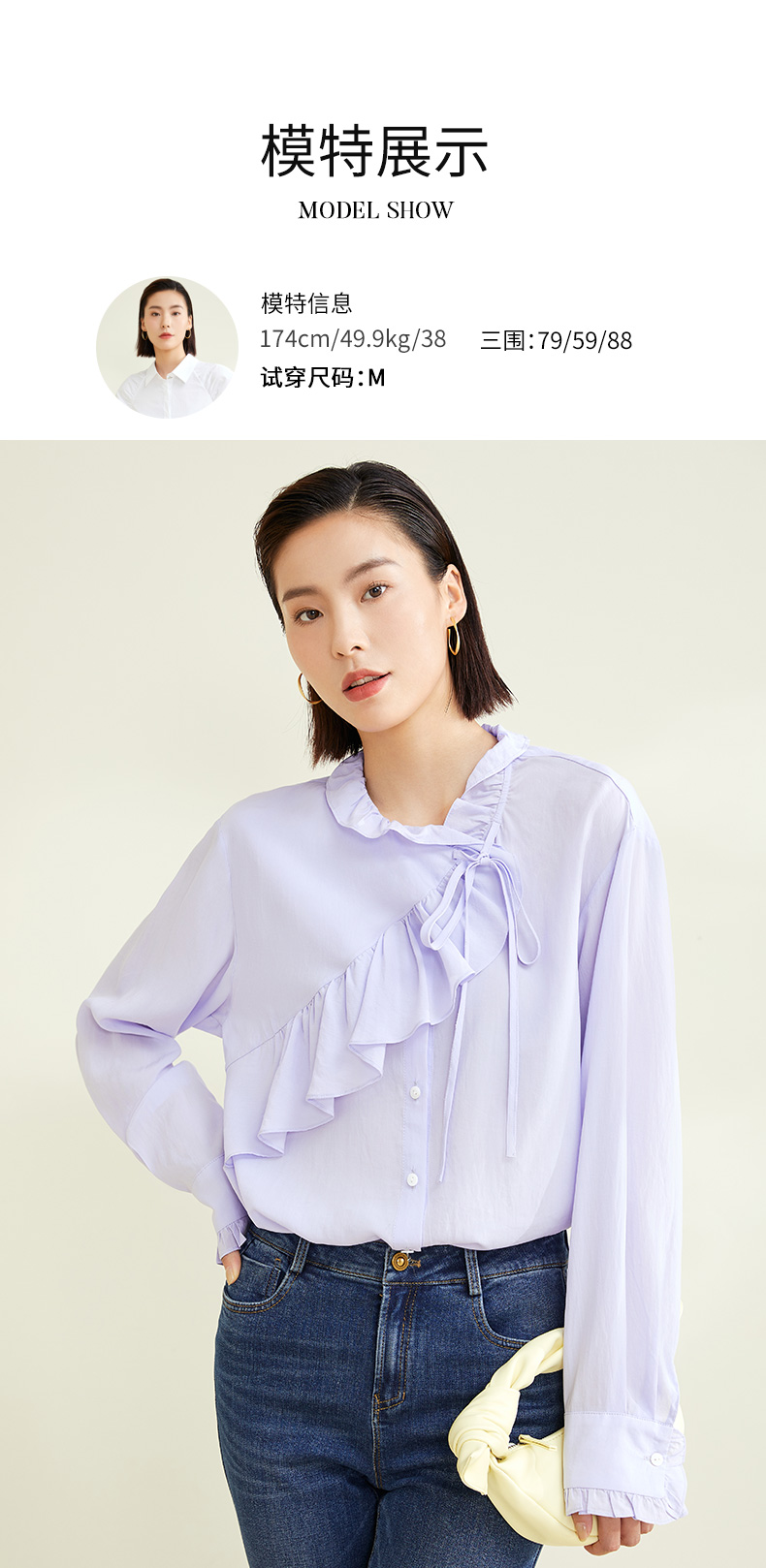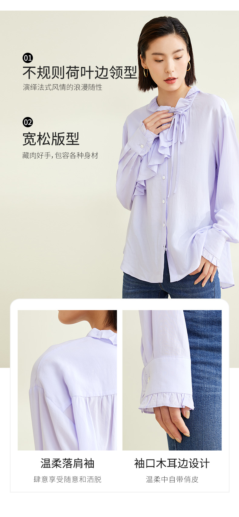 玳莎不规则荷叶边领衬衫女2022新品宽松优雅别致设计感长袖小衫上衣 CC31320