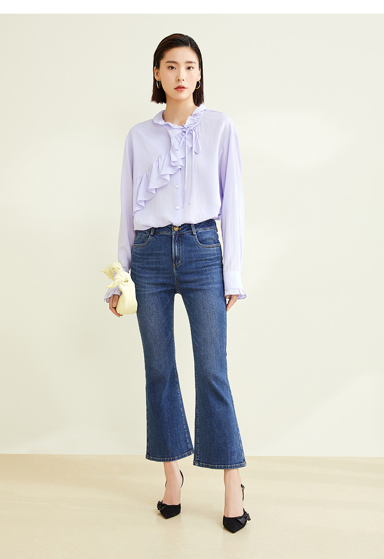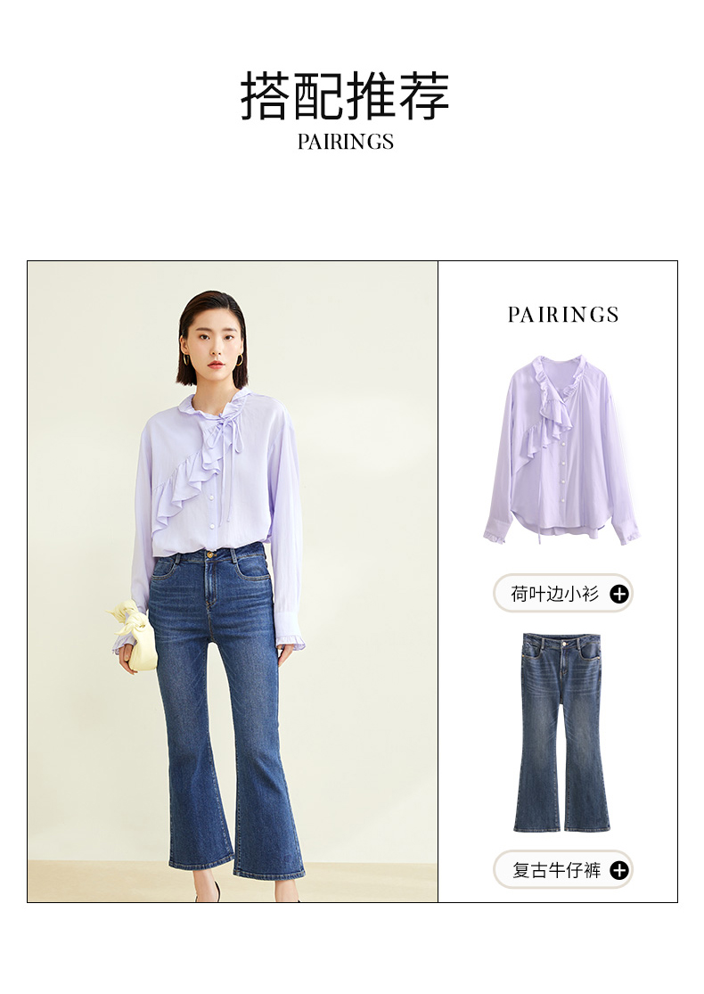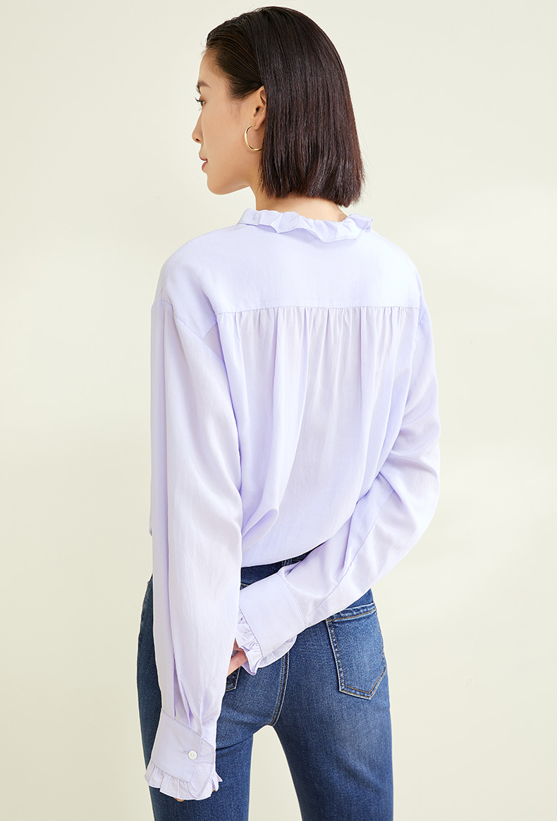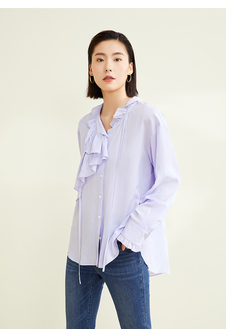 玳莎不规则荷叶边领衬衫女2022新品宽松优雅别致设计感长袖小衫上衣 CC31320