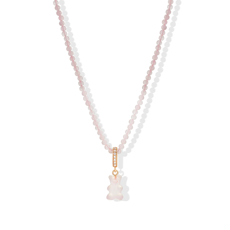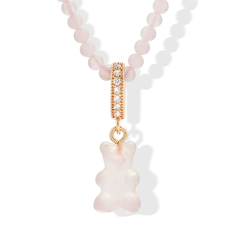 订购4周到|CRYSTAL HAZE-Crystal-pave-玫瑰石英小熊 项链(金色环扣)[挪威设计师]