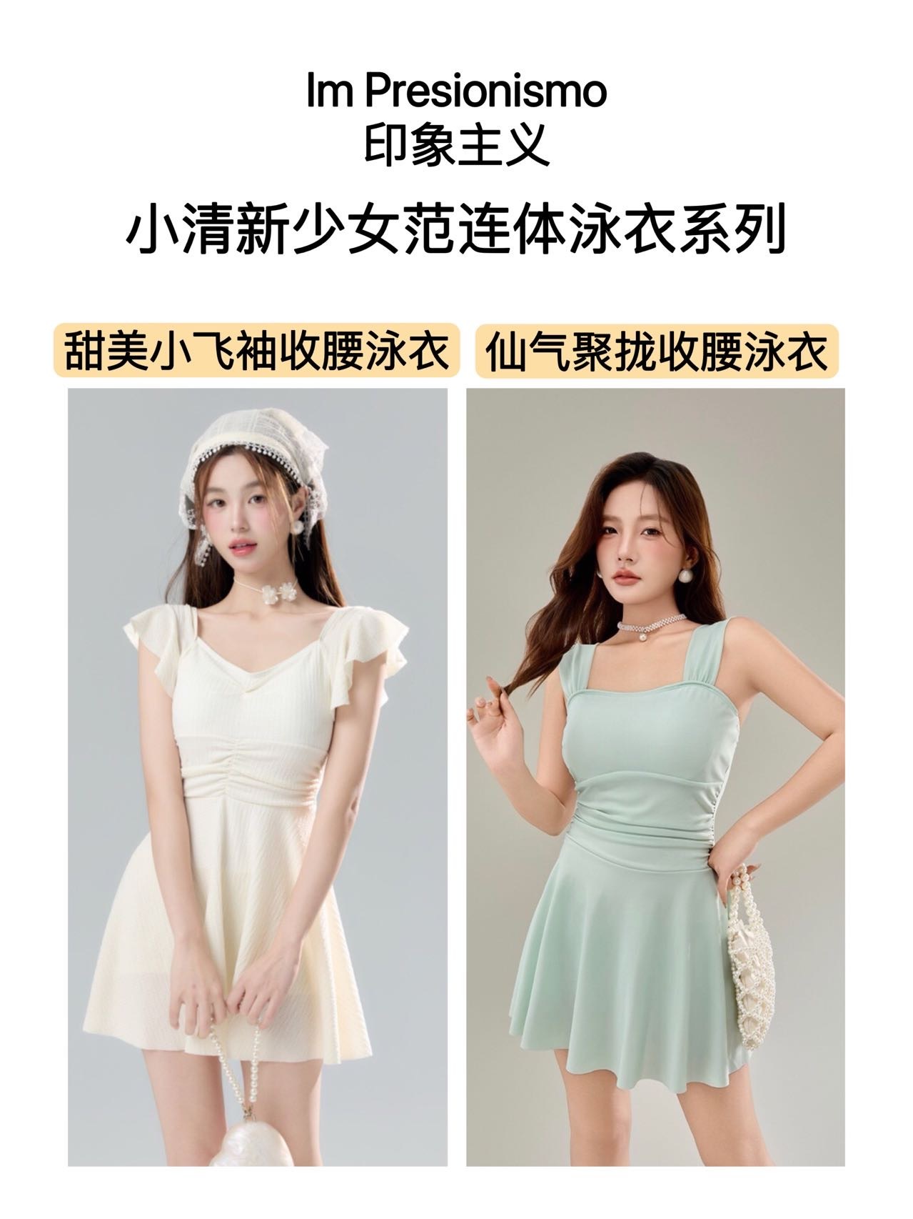 【Im Presionismo 印象主义 小清新少女范连体泳衣系列】不撞款减龄少女感泳衣!玩水亮眼战袍:有质感的泳衣,速干面料有厚度个回弹性好身材包容度高舒适不東缚个带无钢圈胸垫设计,舒适全包裹