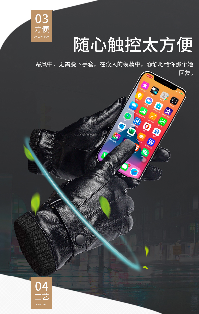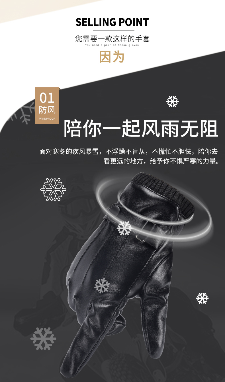 皮手套男士冬季加绒加厚保暖防寒防水可触屏冬天骑行摩托车电动车 rr56