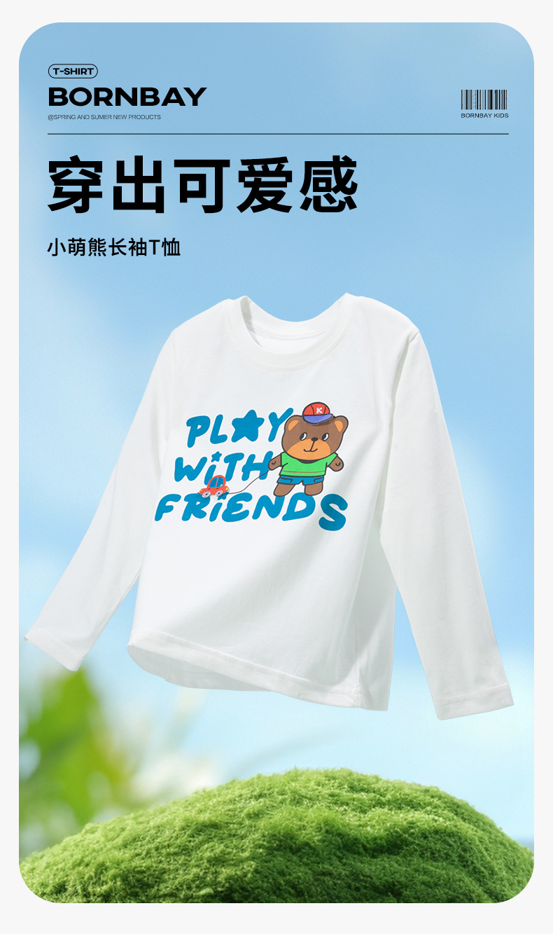 贝贝怡儿童t恤男24夏季新款休闲萌趣小熊薄款透气短袖男ZB1DS039