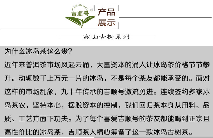 - 云南吉顺号茶业,专业云南普洱茶基地生产销售商。自有基地茶厂及运营仓储物流团队。