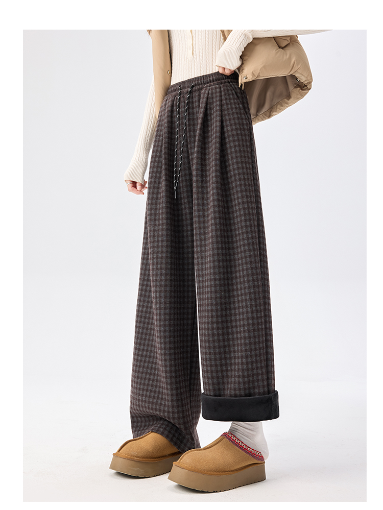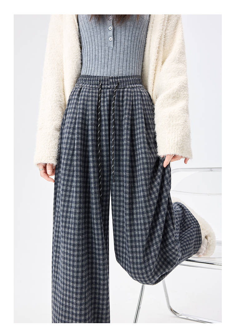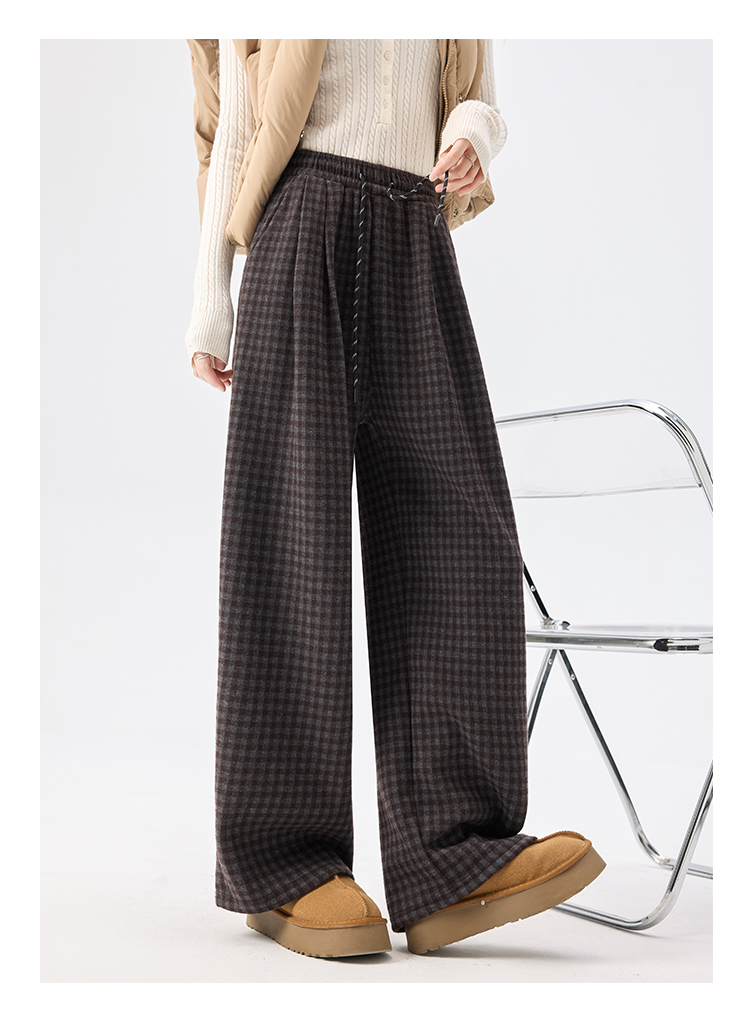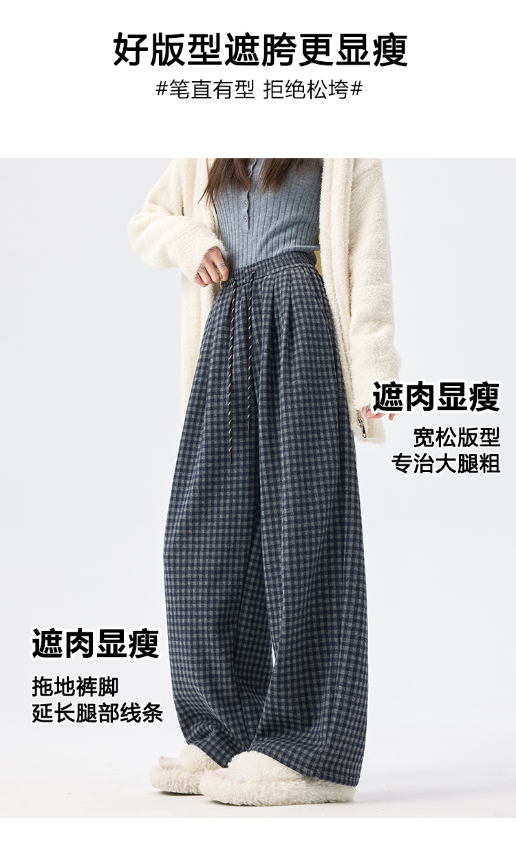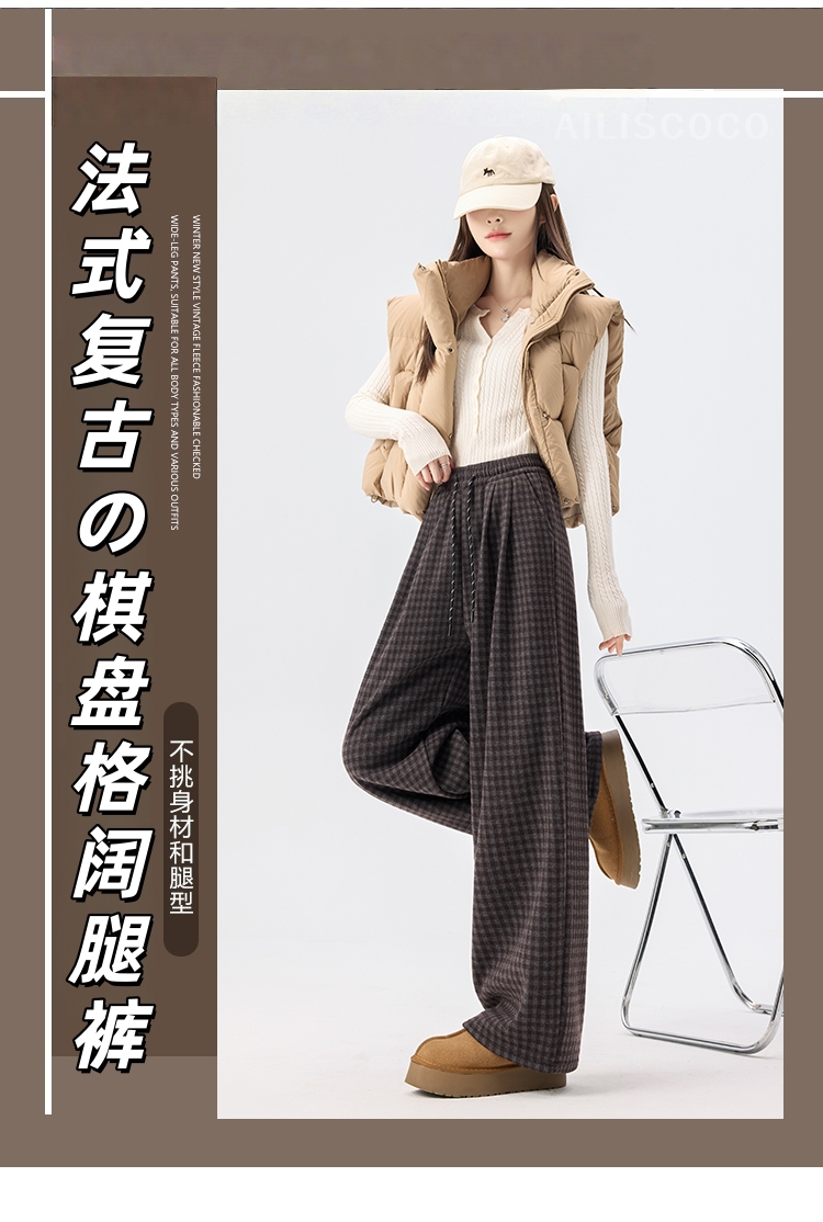 冬季必入!『复古の棋盘格阔腿裤』细腻密绒 触感更舒适 高腰松紧抽绳设计 弯腿救星 遮肉显腿长 百搭不挑人!!