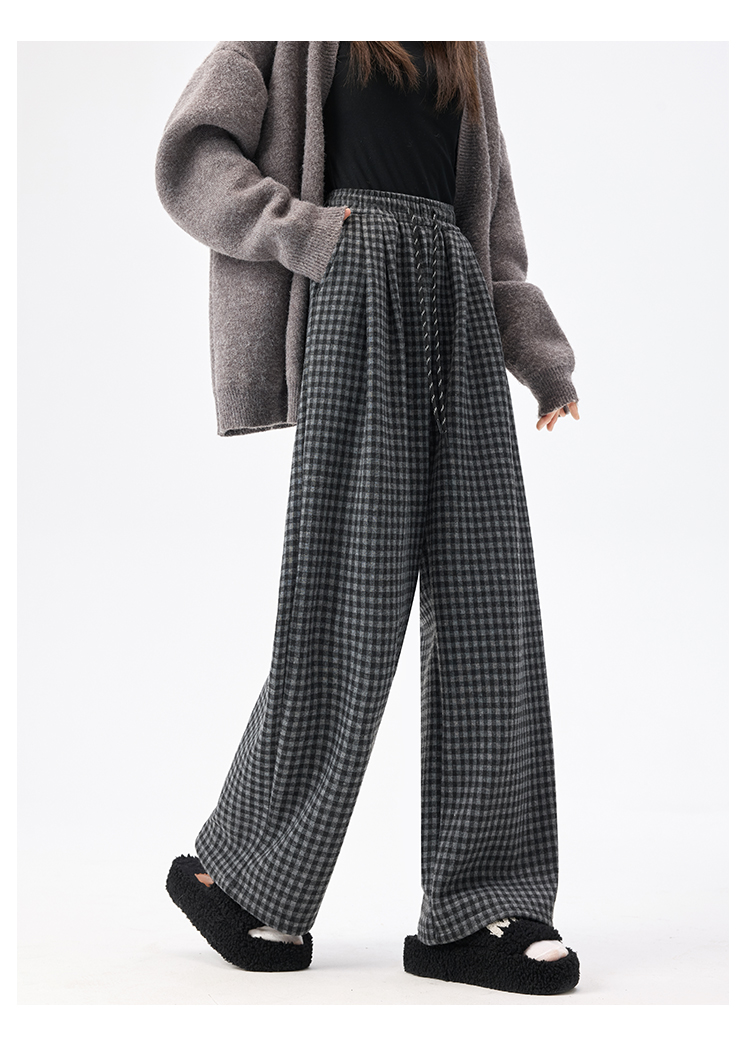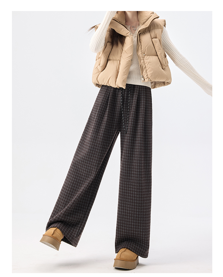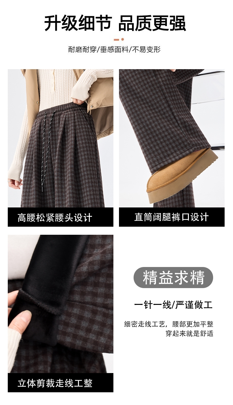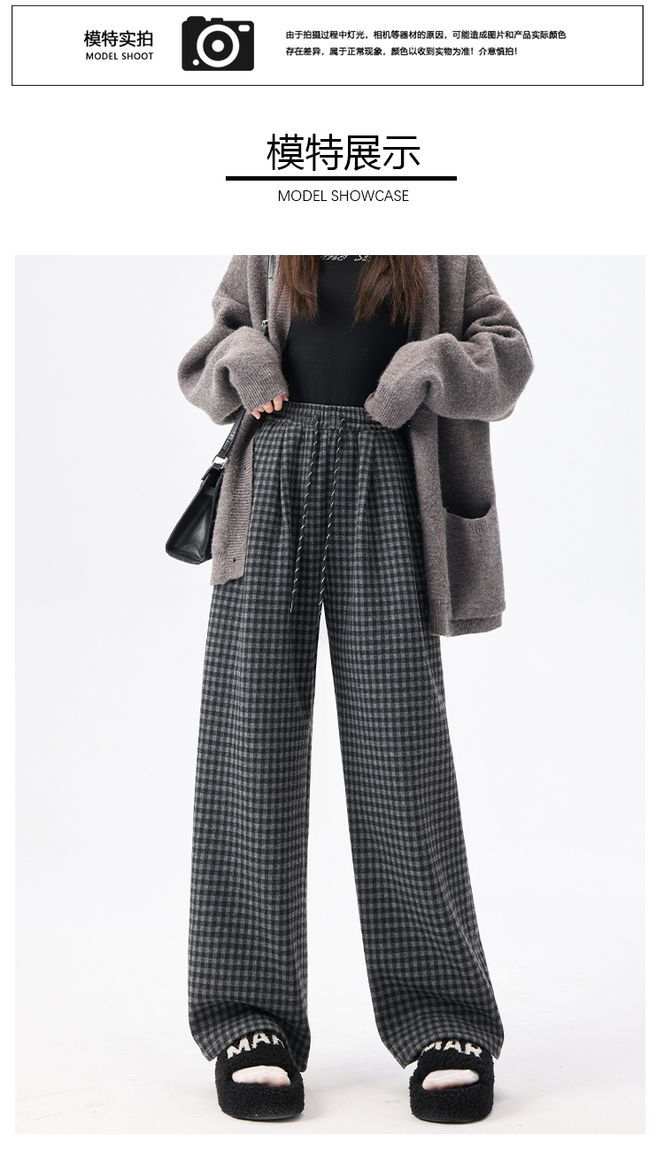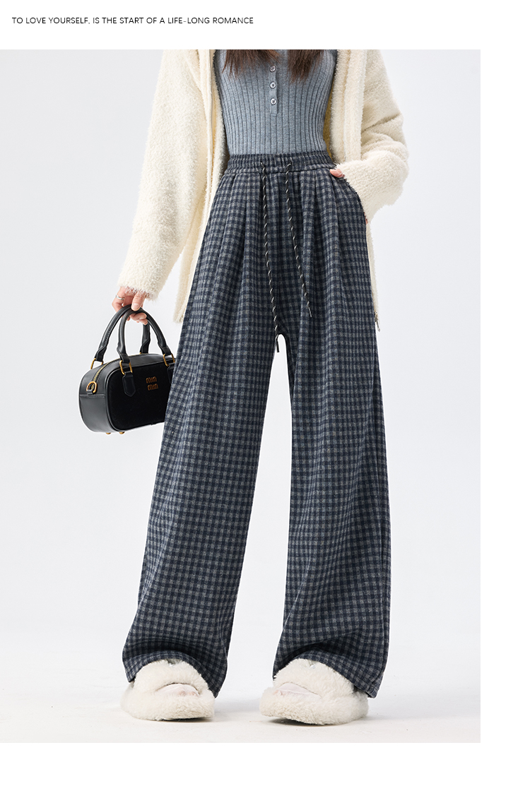 冬季必入!『复古の棋盘格阔腿裤』细腻密绒 触感更舒适 高腰松紧抽绳设计 弯腿救星 遮肉显腿长 百搭不挑人!!