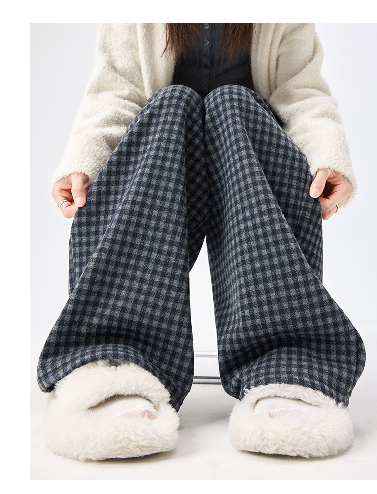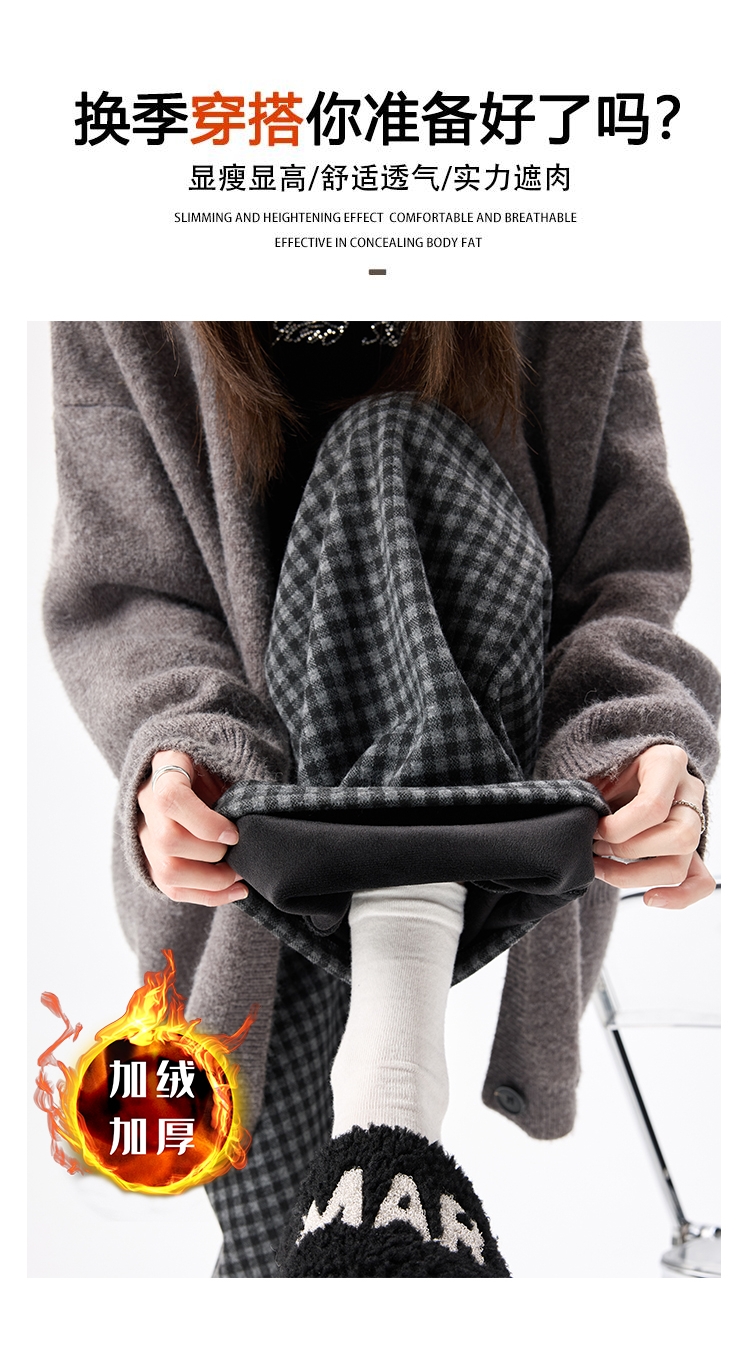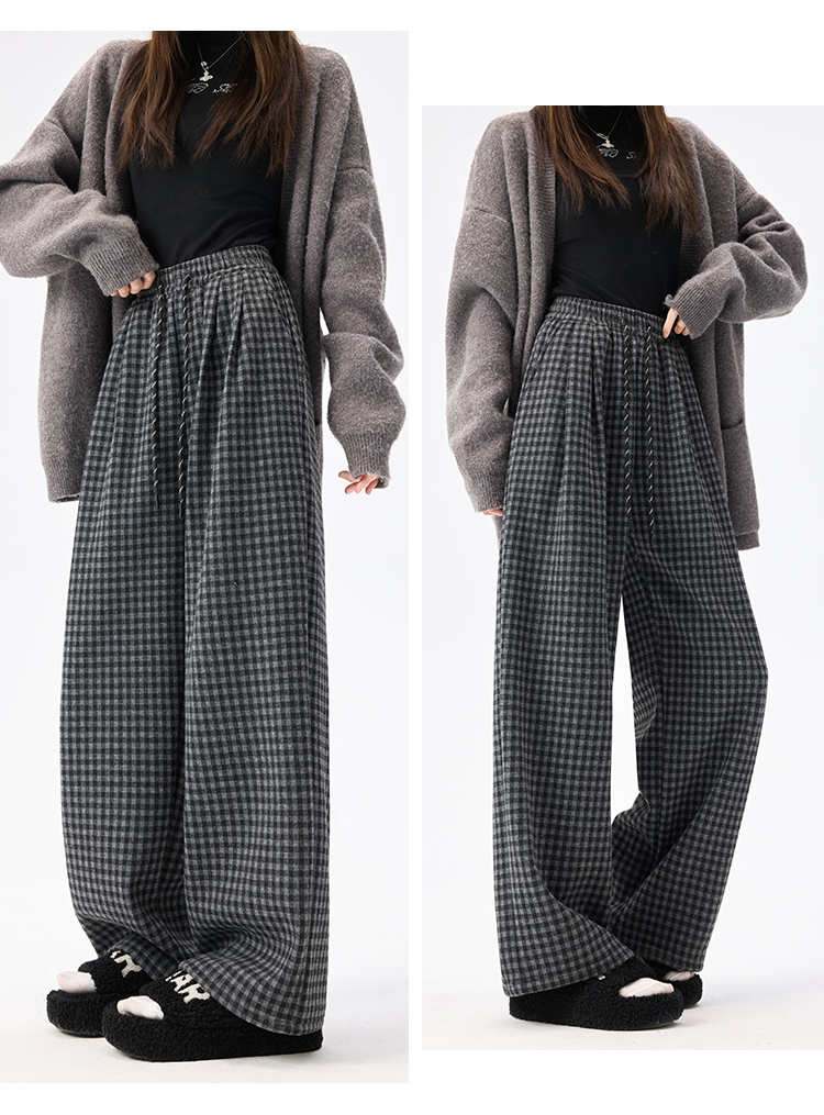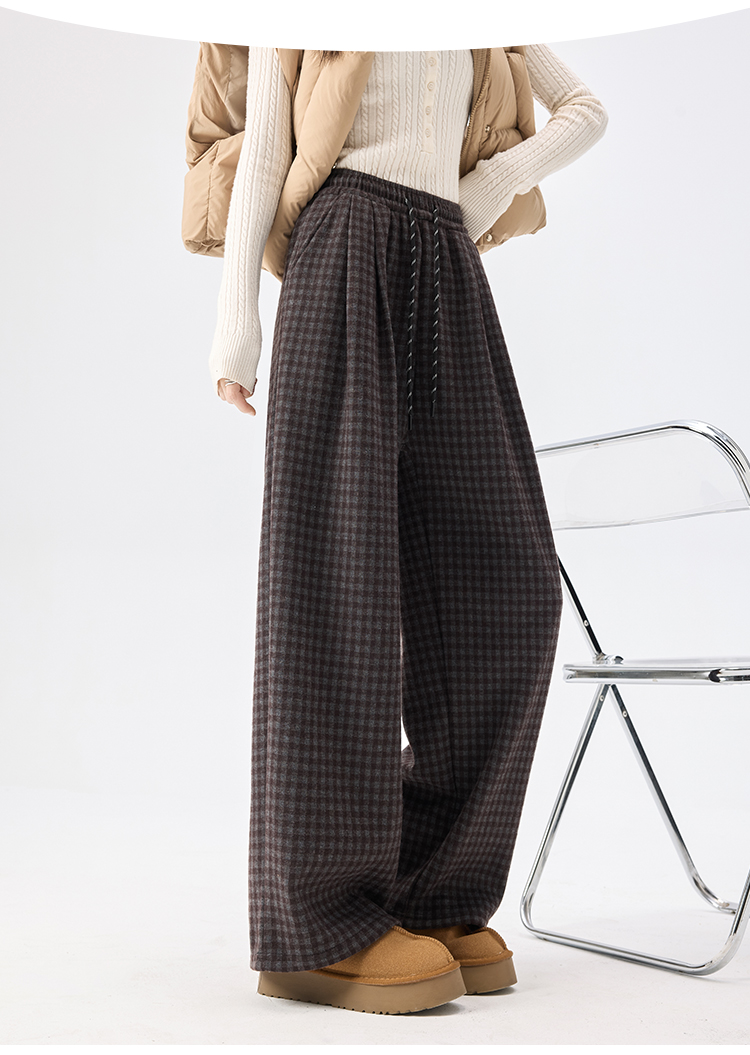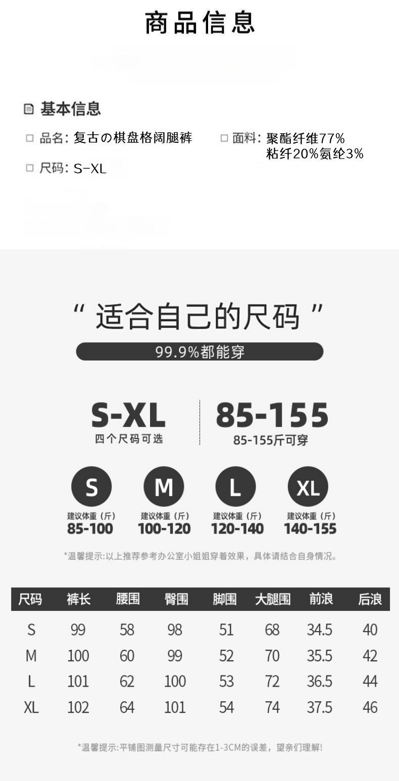 冬季必入!『复古の棋盘格阔腿裤』细腻密绒 触感更舒适 高腰松紧抽绳设计 弯腿救星 遮肉显腿长 百搭不挑人!!