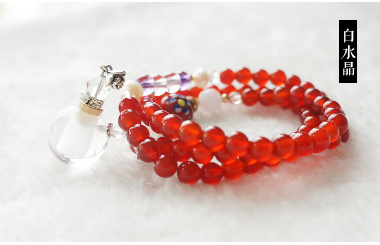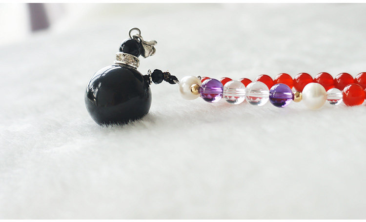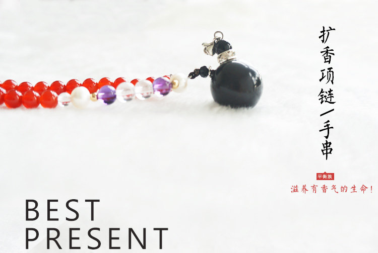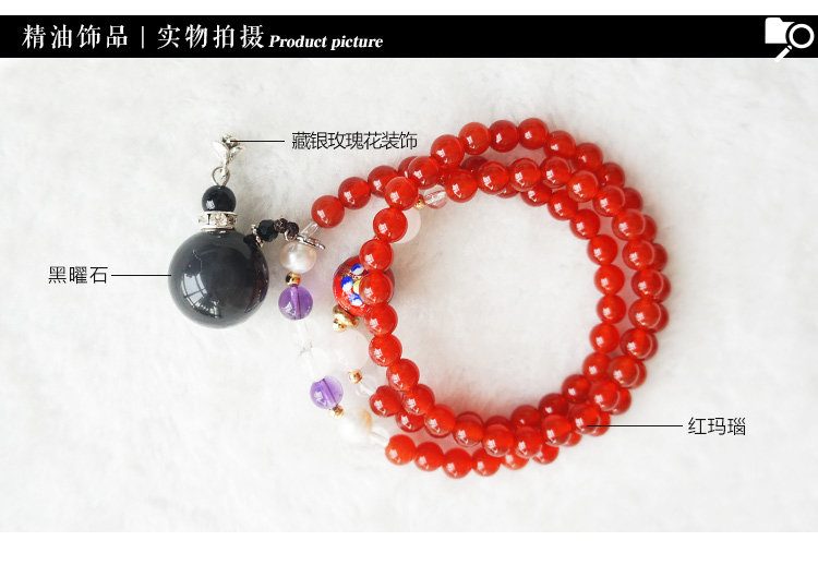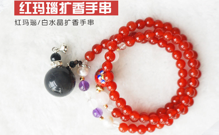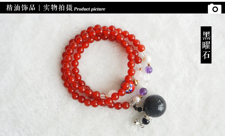 平衡小柅 红玛瑙扩香手链 手串 黑曜石/白水晶精油瓶 两用扩香项链 3层多圈玛瑙手串