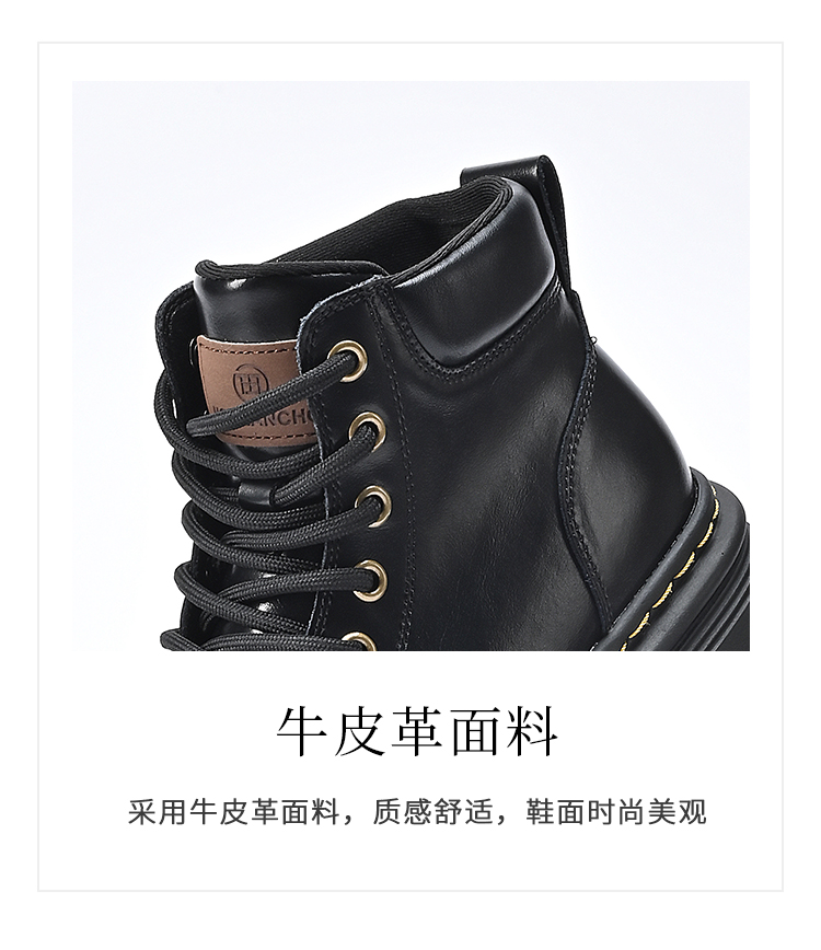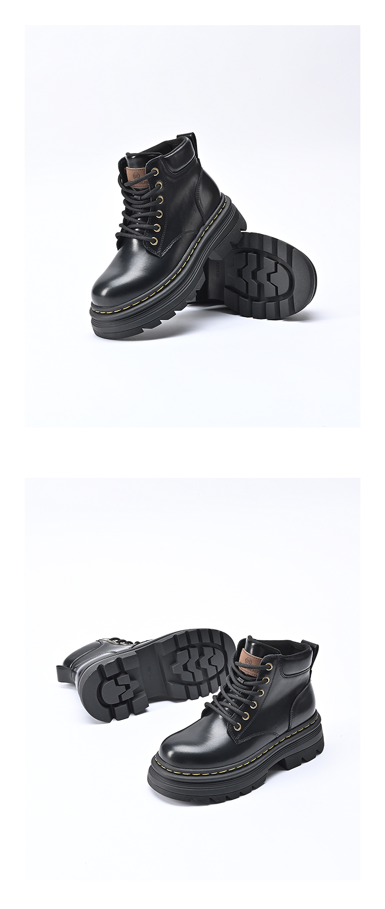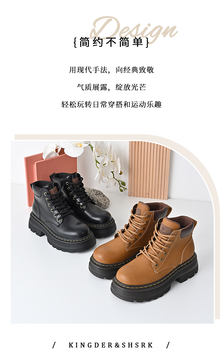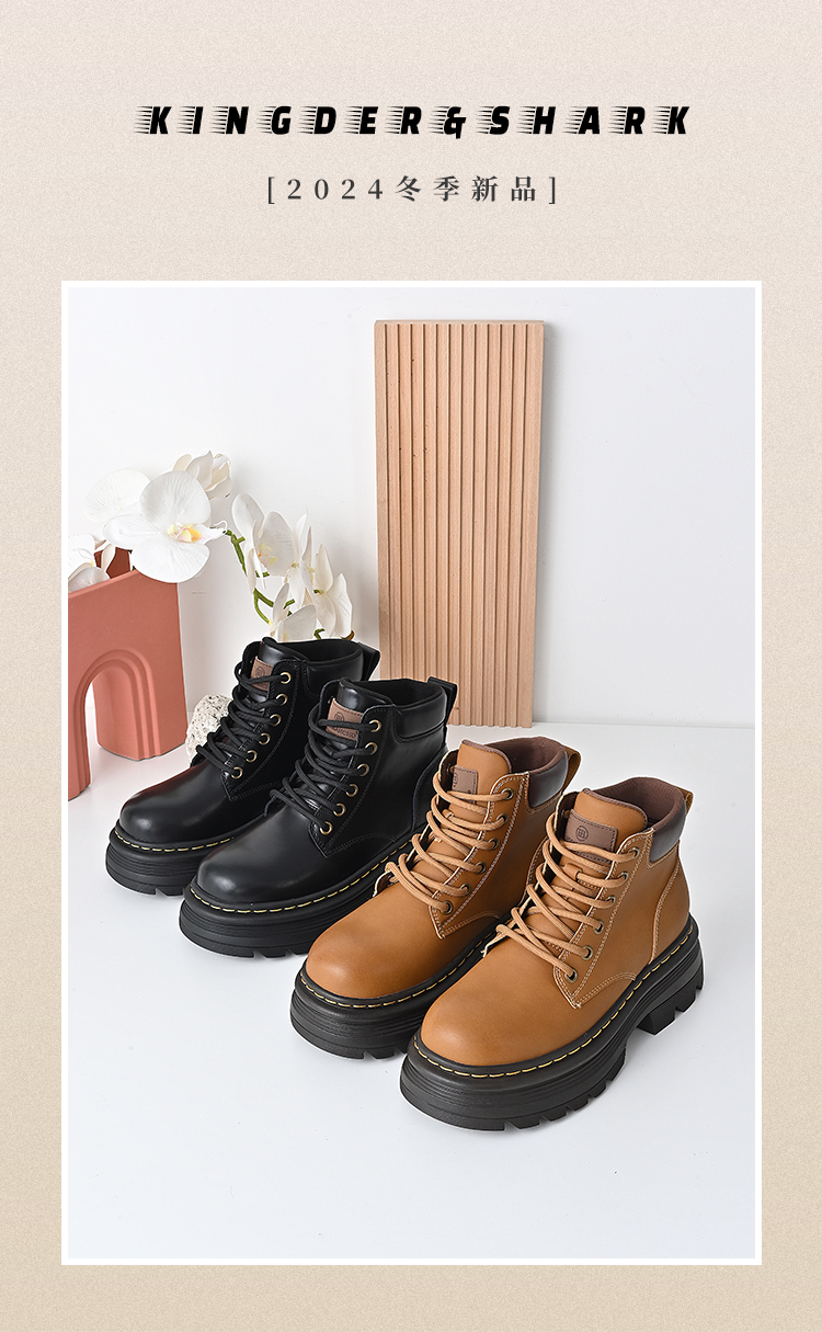 经典鲨2024年冬季新款潮流系带通勤舒适工装靴短筒马丁靴女KW182-D58091