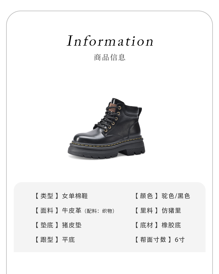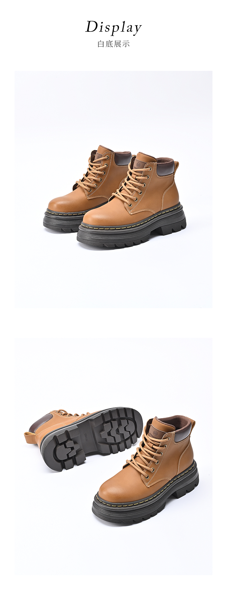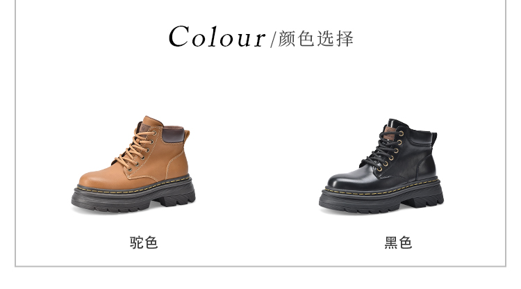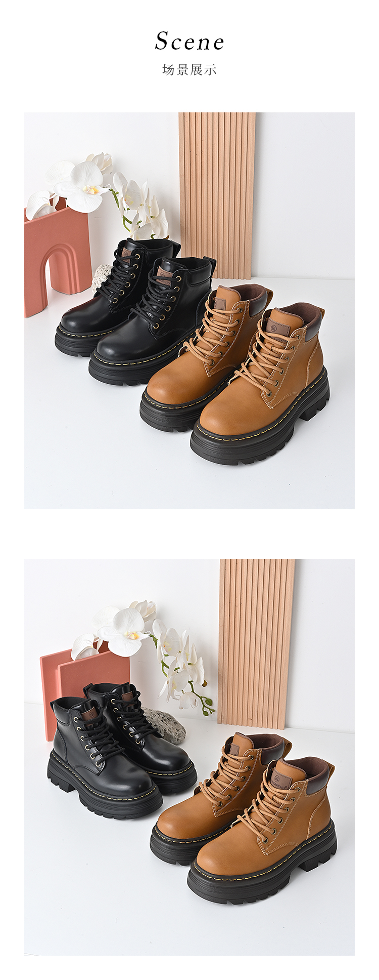 经典鲨2024年冬季新款潮流系带通勤舒适工装靴短筒马丁靴女KW182-D58091