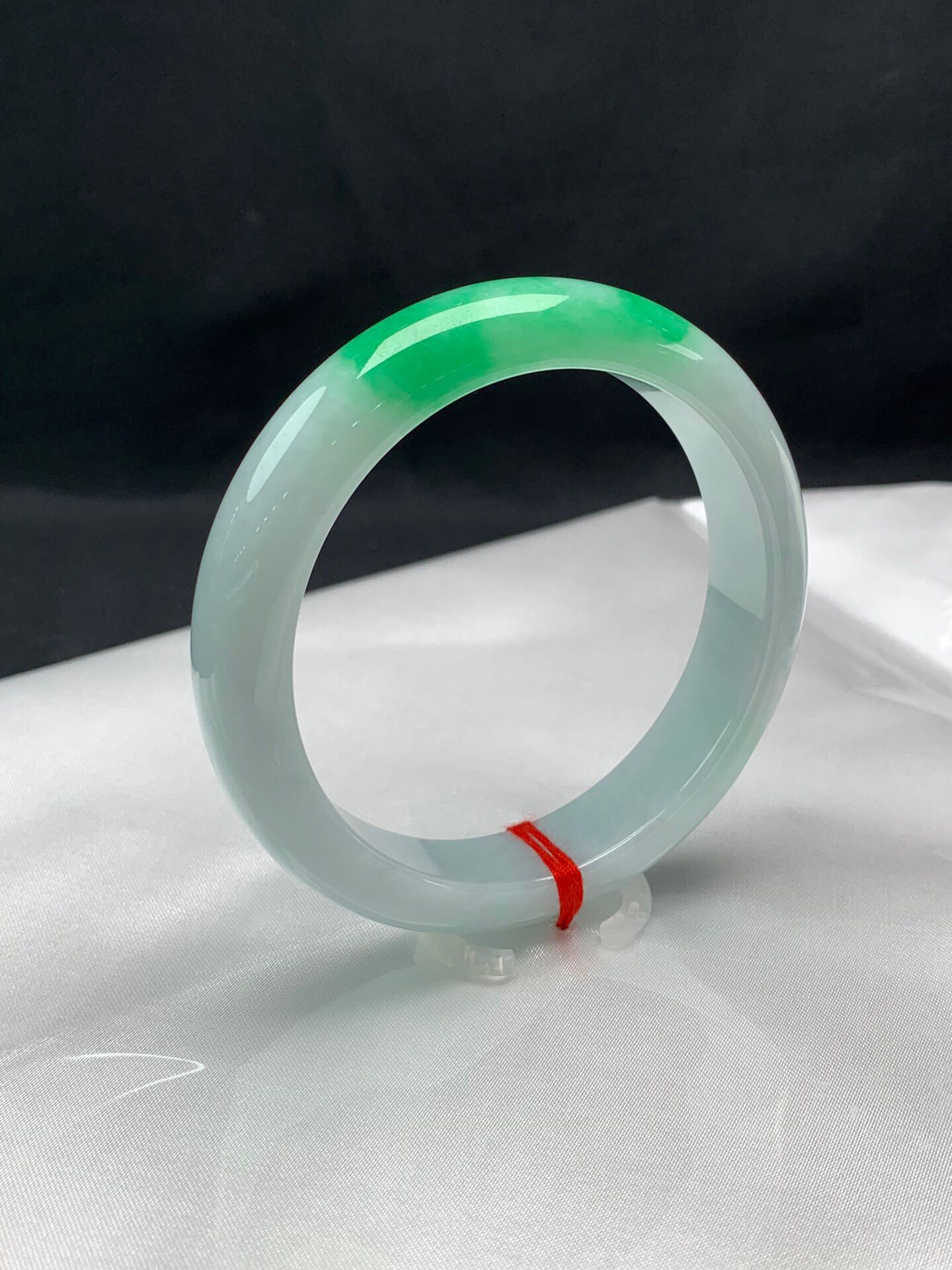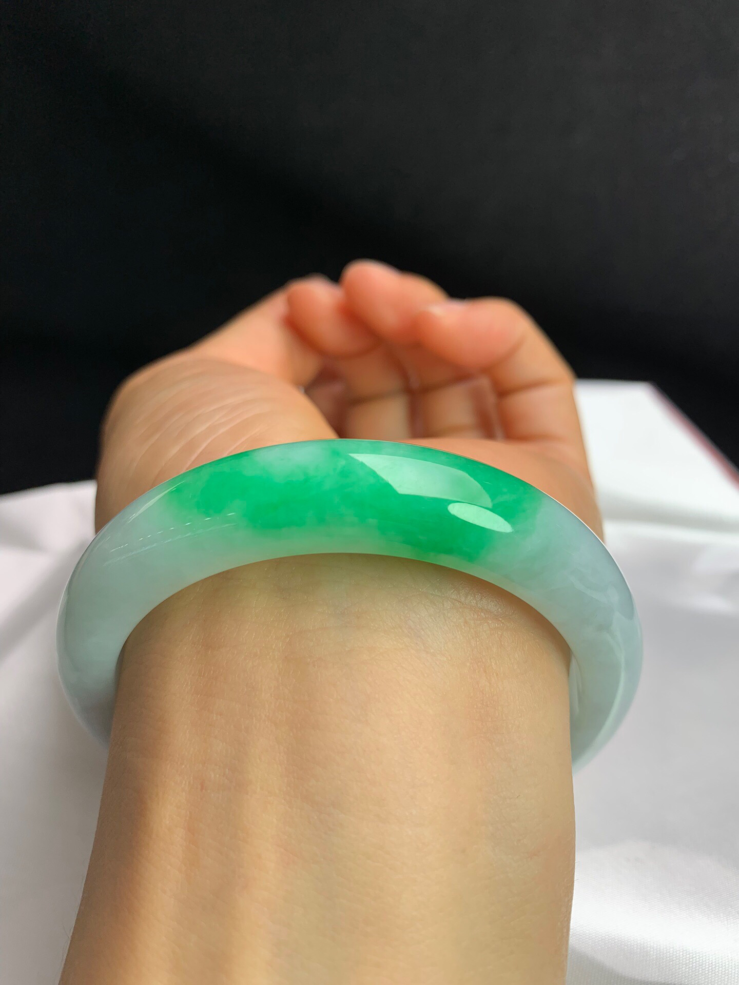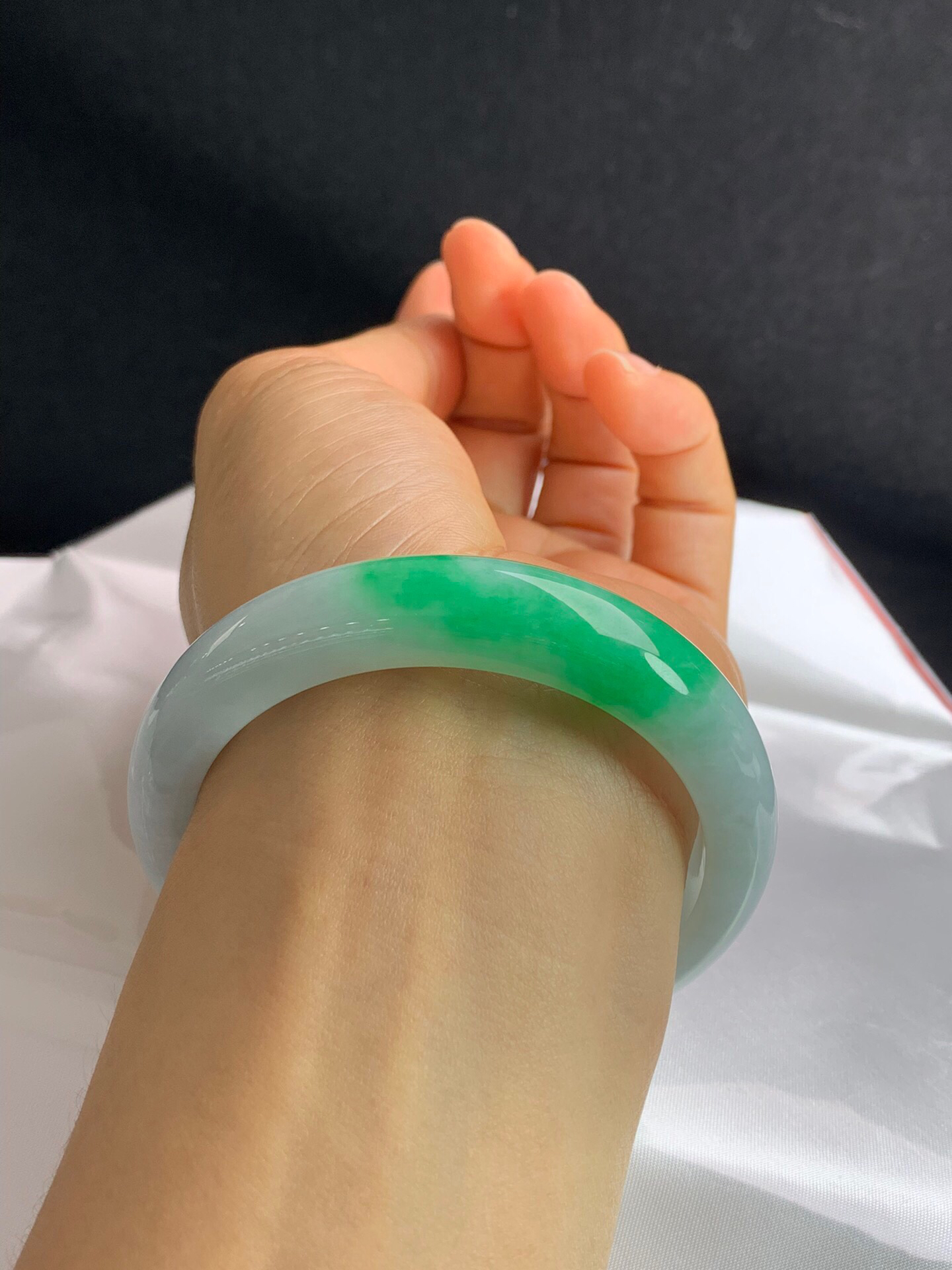 620036,58.8圈口,飘绿正圈平安镯,淡底色飘一截阳绿,颜色吸睛,底子细腻,完美,尺寸:58.8-13.4-8.6,超值价💰105000 #优石客珠宝#香玉荟萃