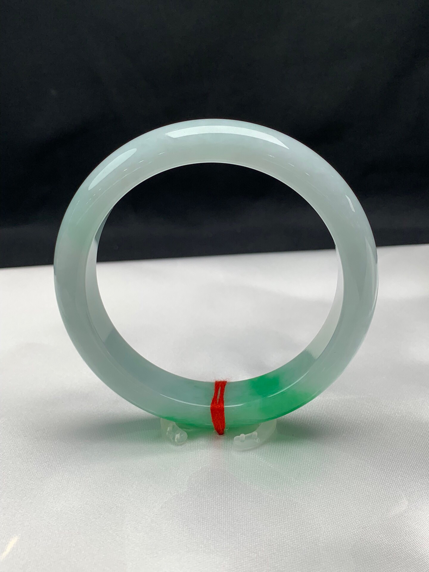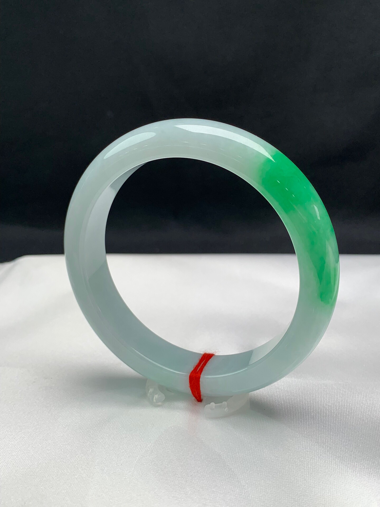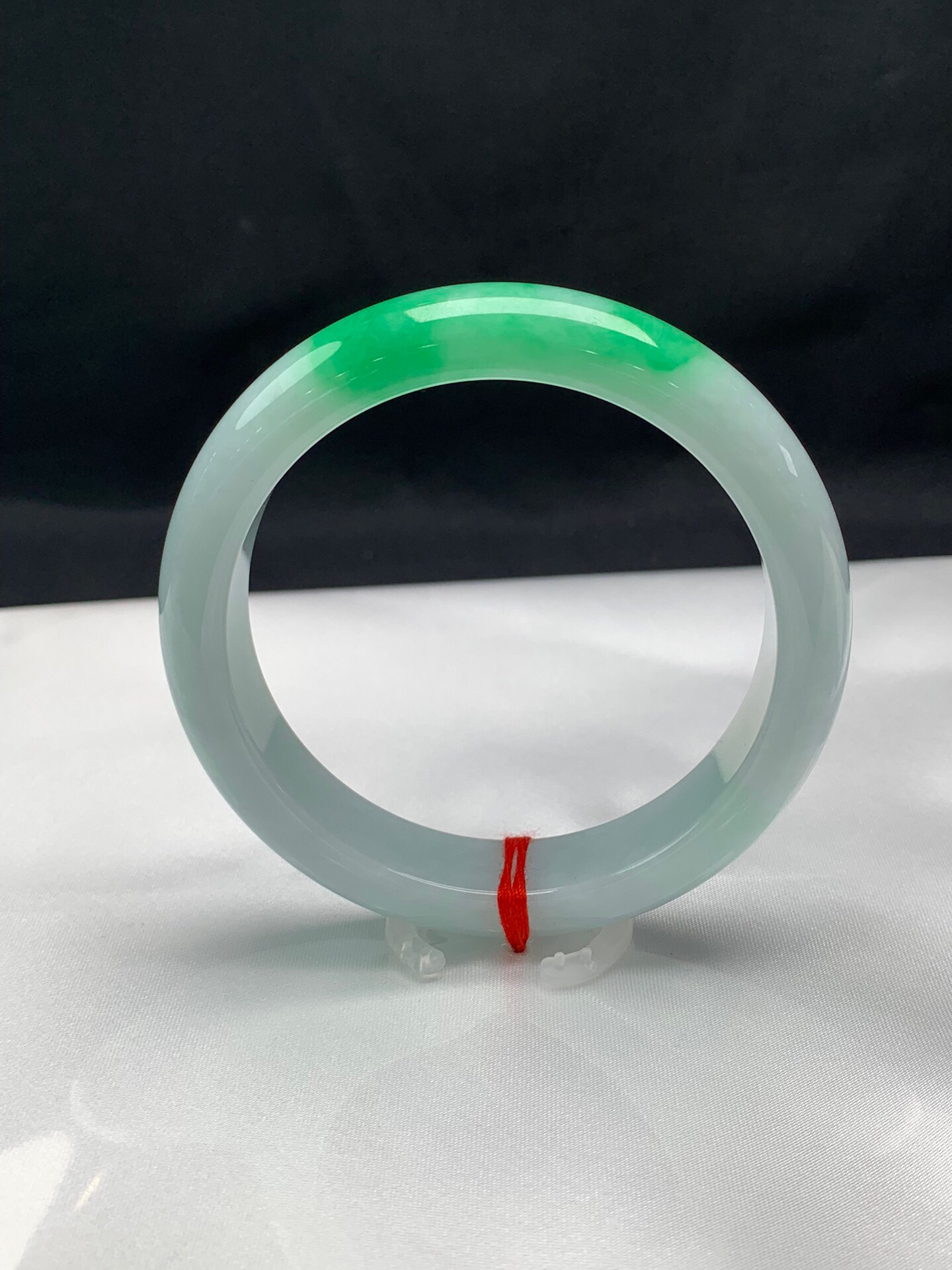 620036,58.8圈口,飘绿正圈平安镯,淡底色飘一截阳绿,颜色吸睛,底子细腻,完美,尺寸:58.8-13.4-8.6,超值价💰105000 #优石客珠宝#香玉荟萃
