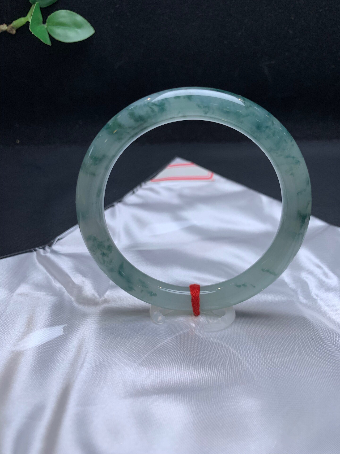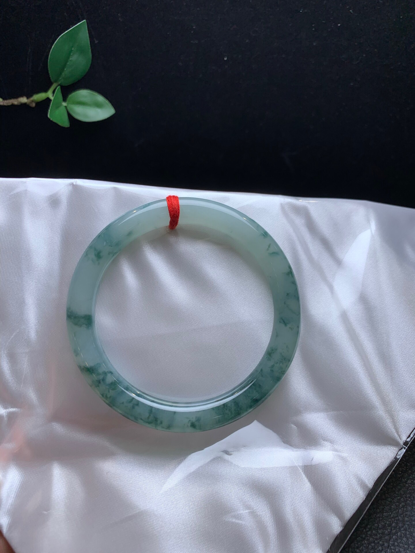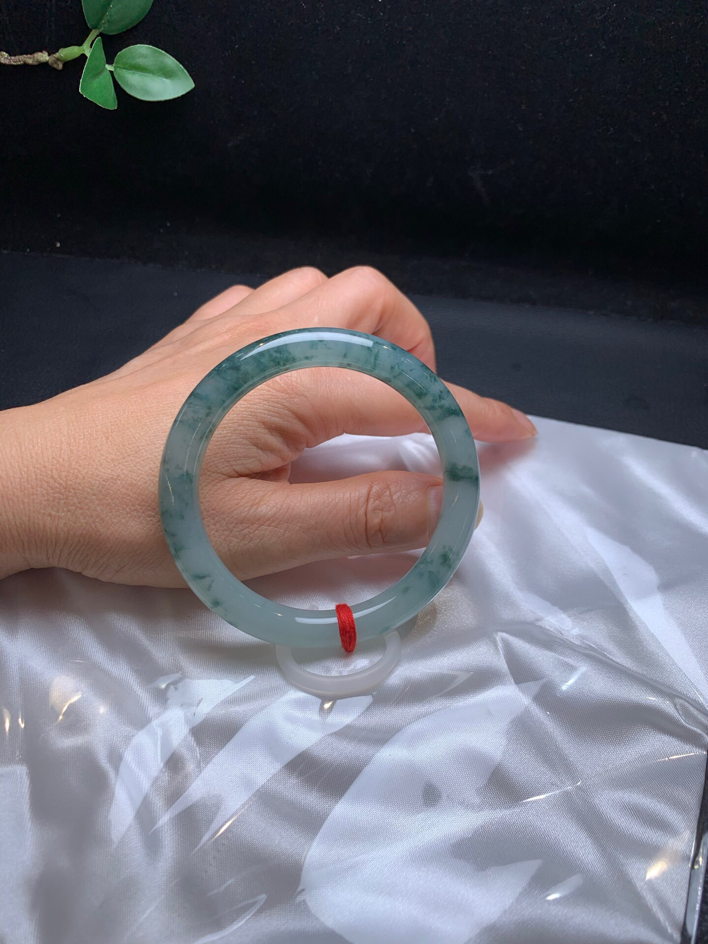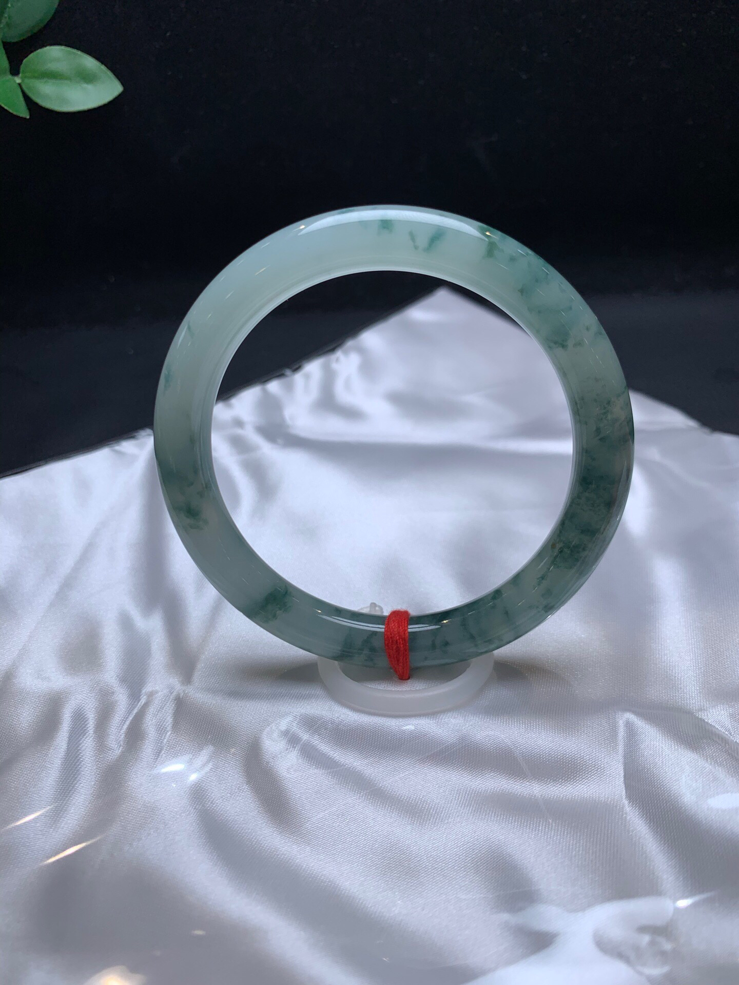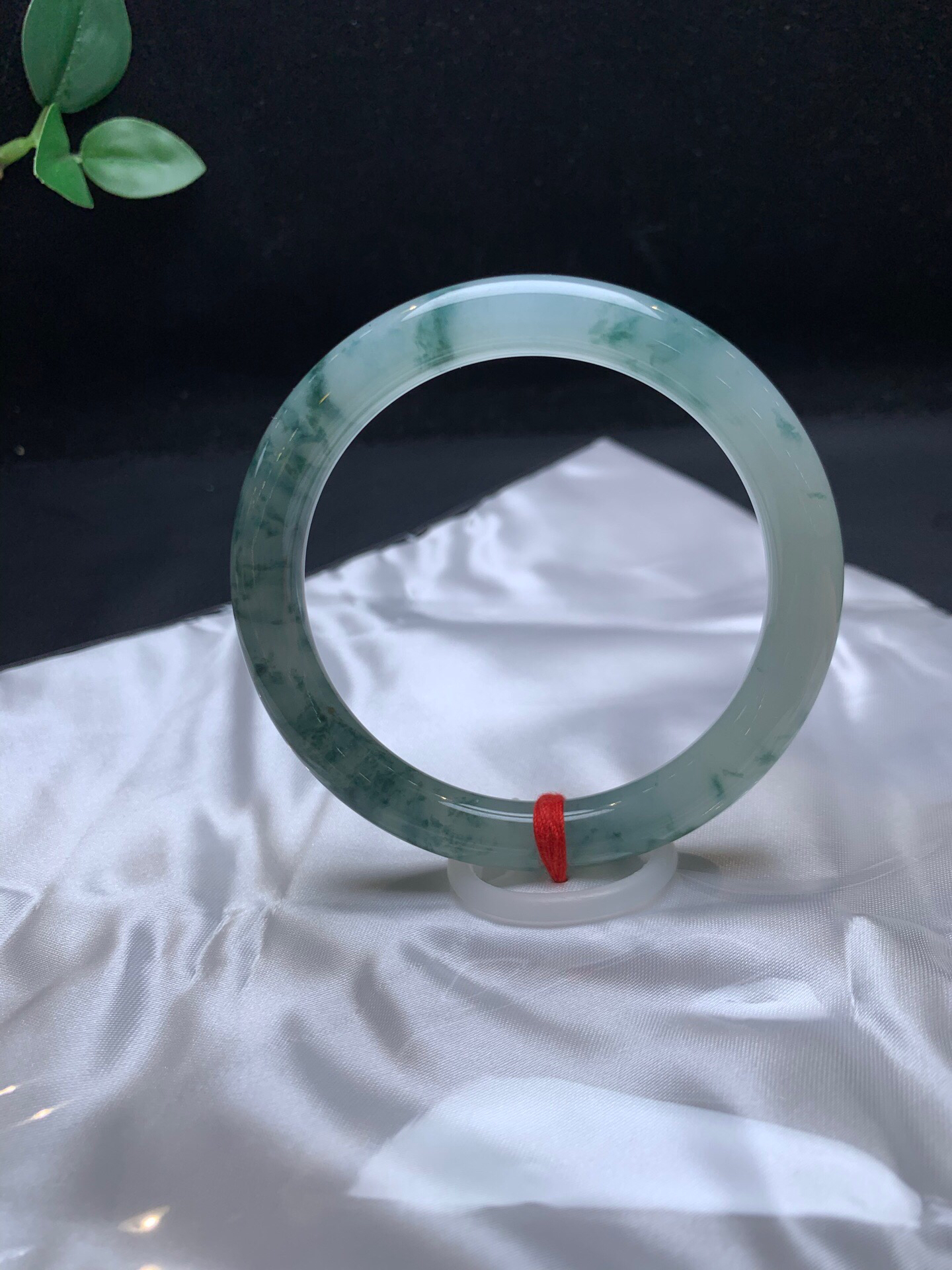 620551,58冰飘花细圆条,8.7mm,满圈冰冰的, 大半截飘蓝花 底子均匀细腻。超值价💰39300 #优石客珠宝#香玉荟萃