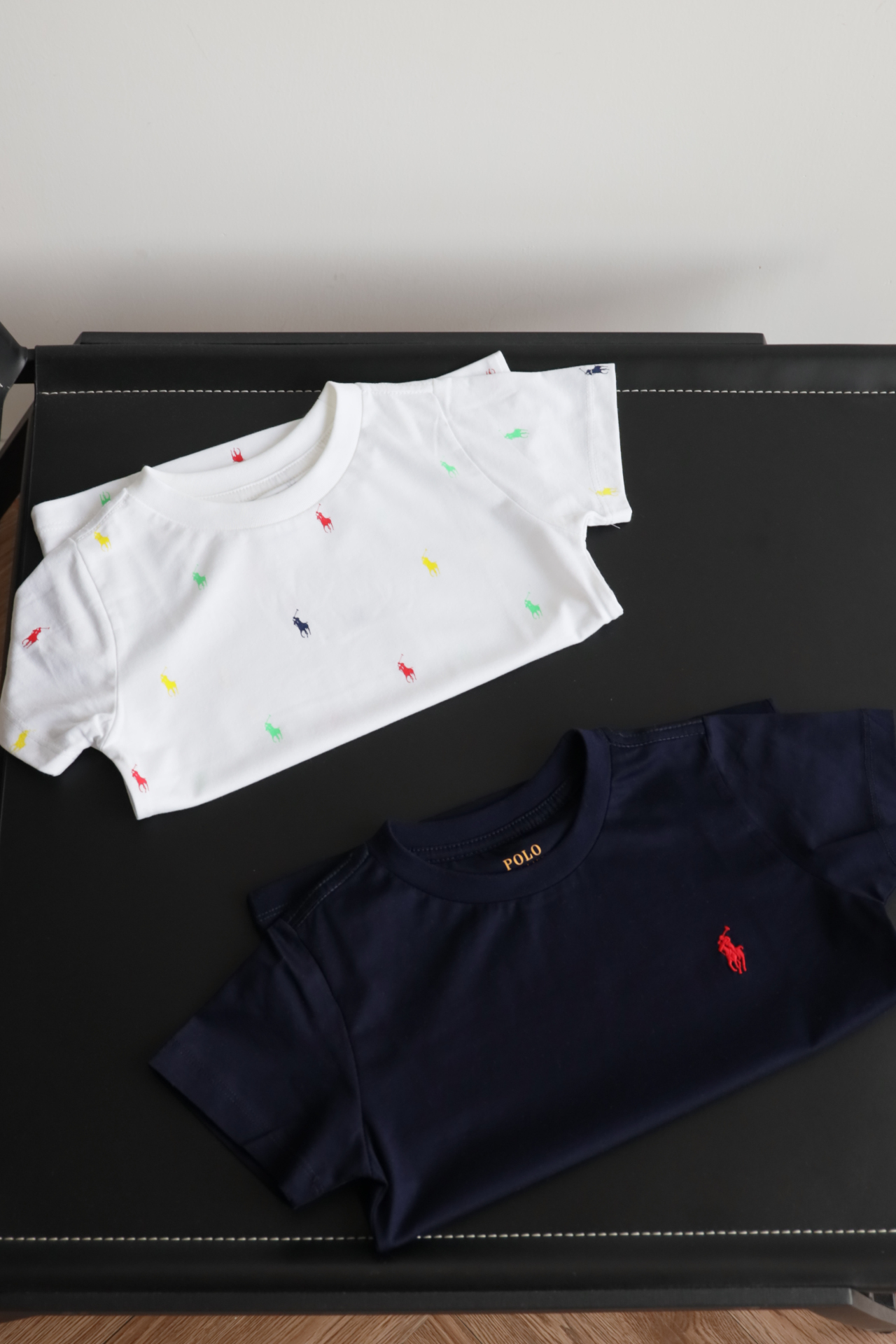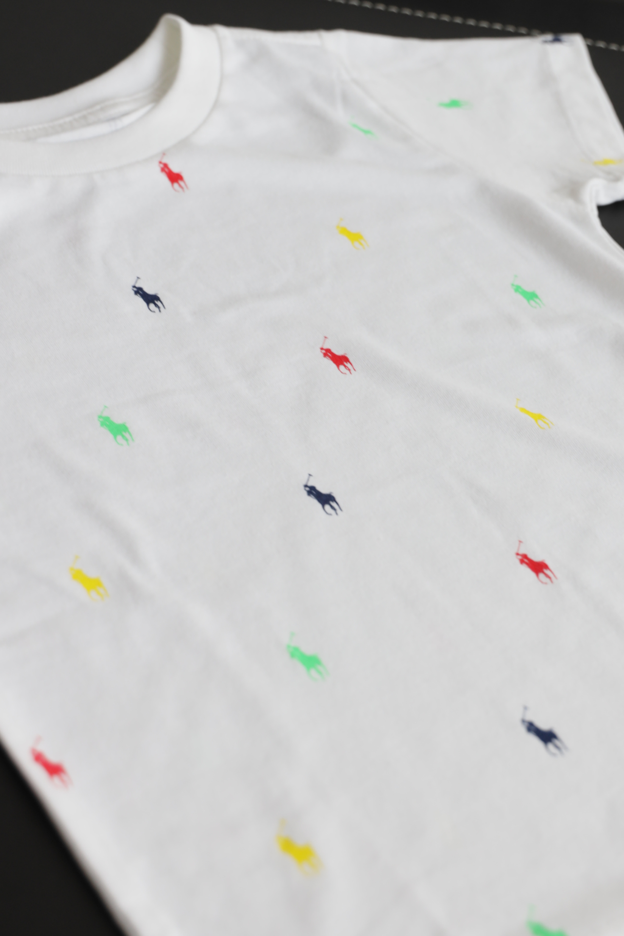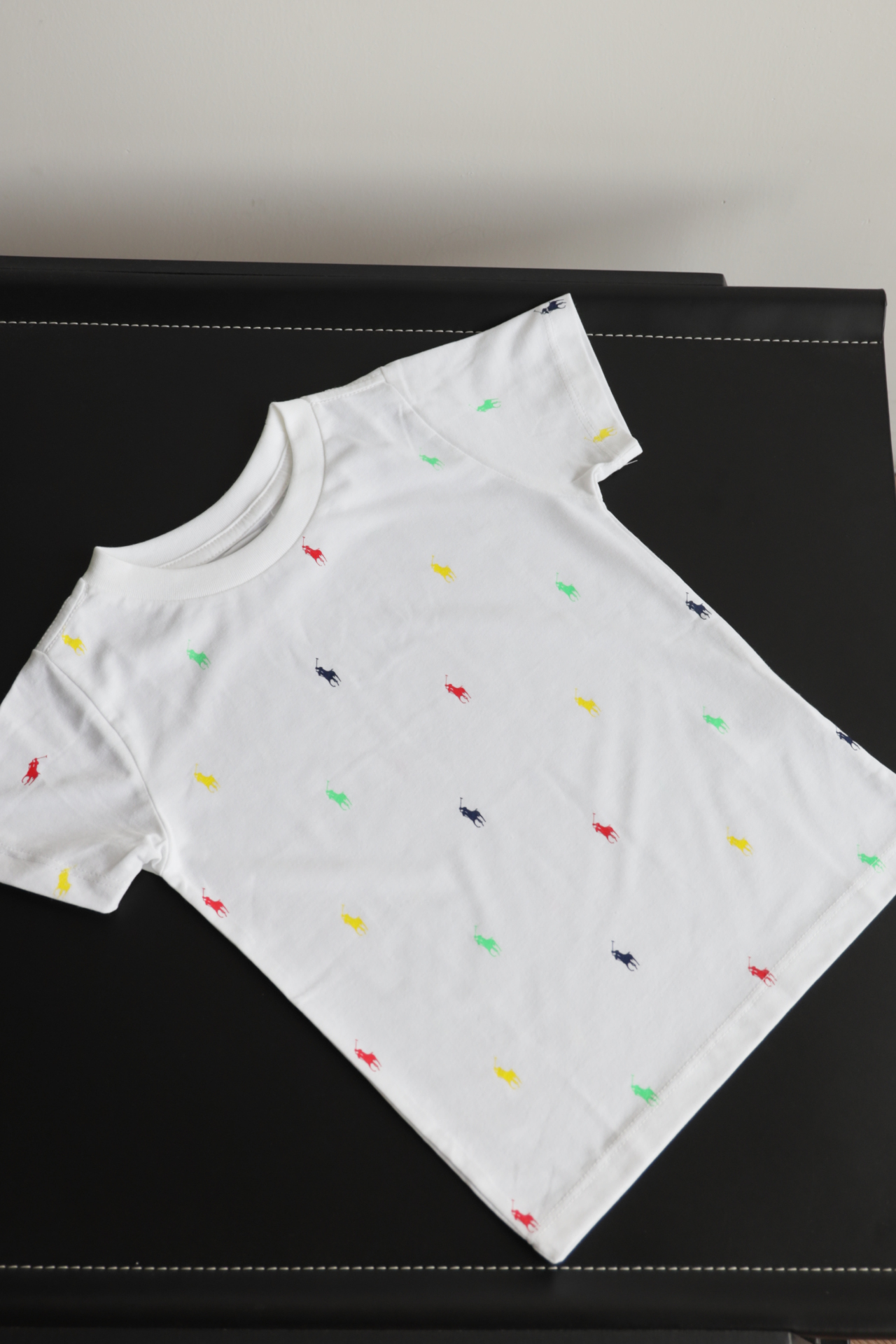 R.L 新款配色 满印+蓝色小标 童装 全棉圆领短袖