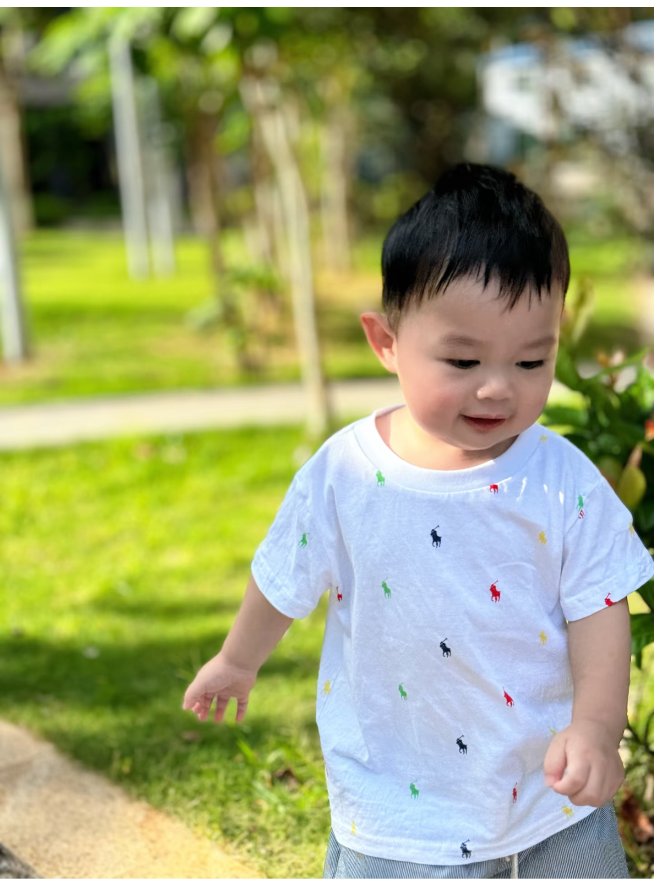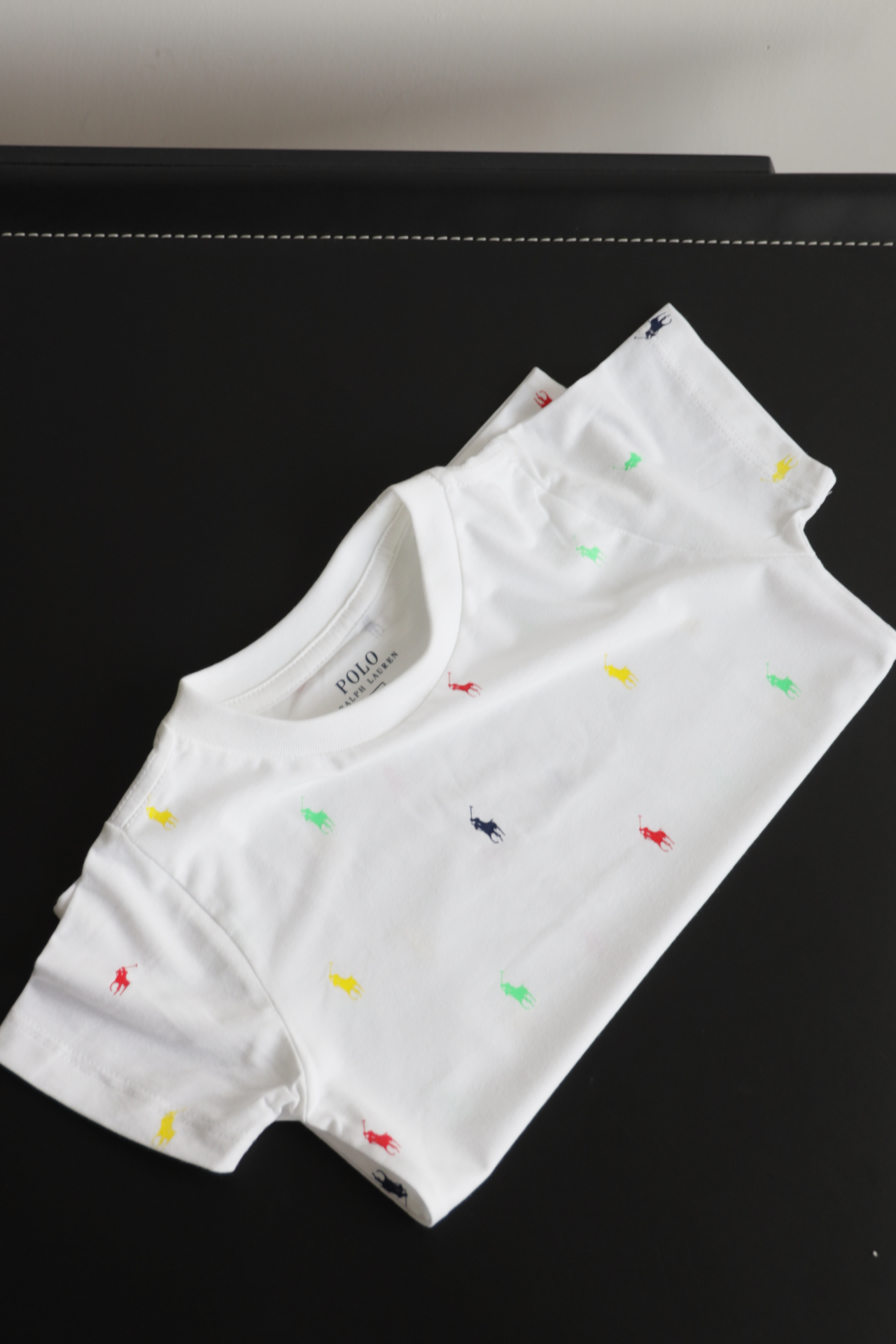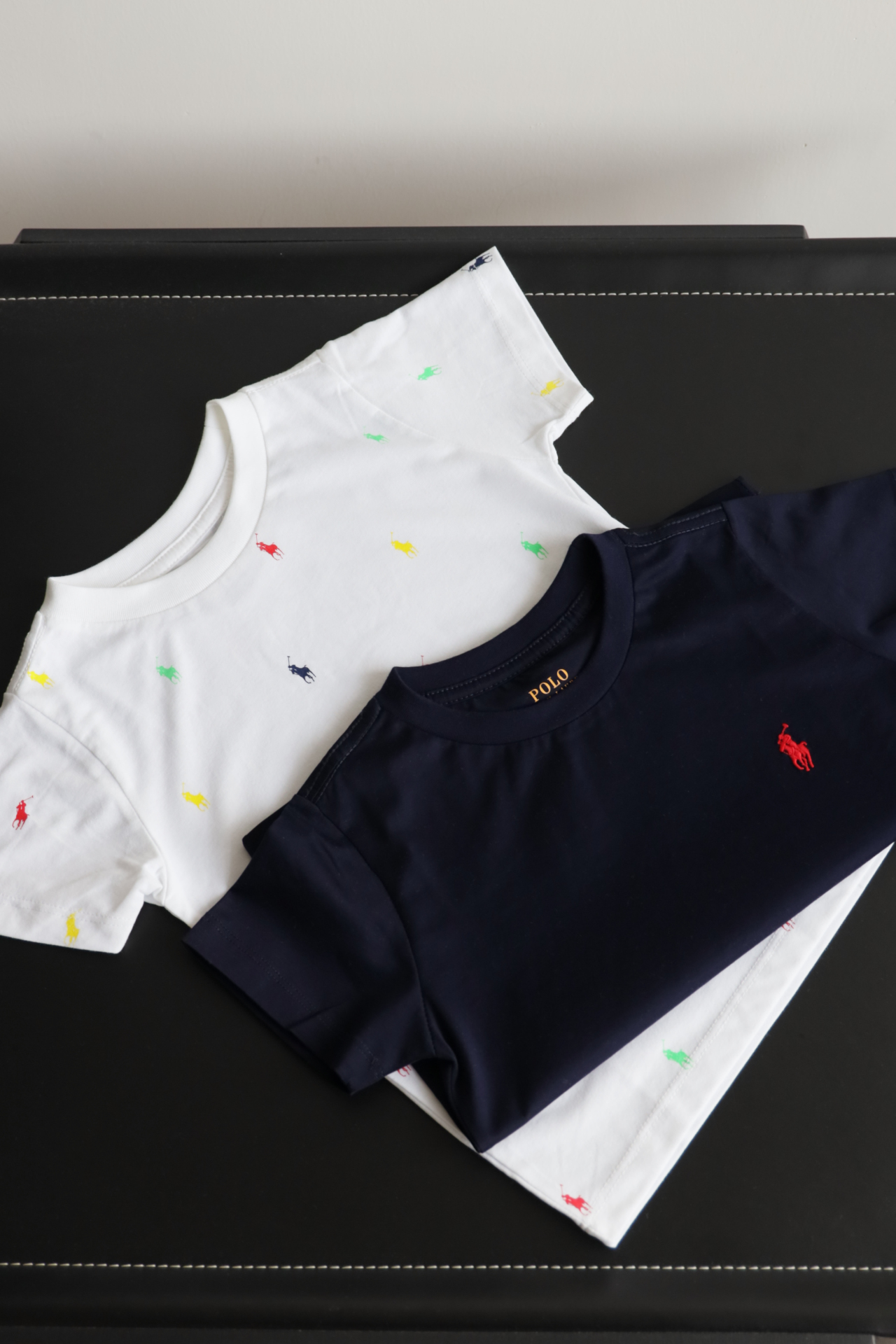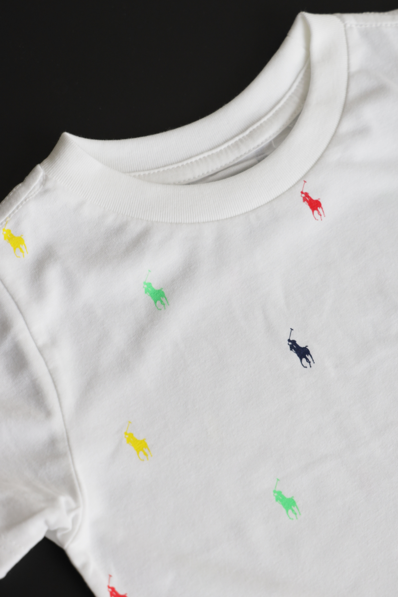 R.L 新款配色 满印+蓝色小标 童装 全棉圆领短袖