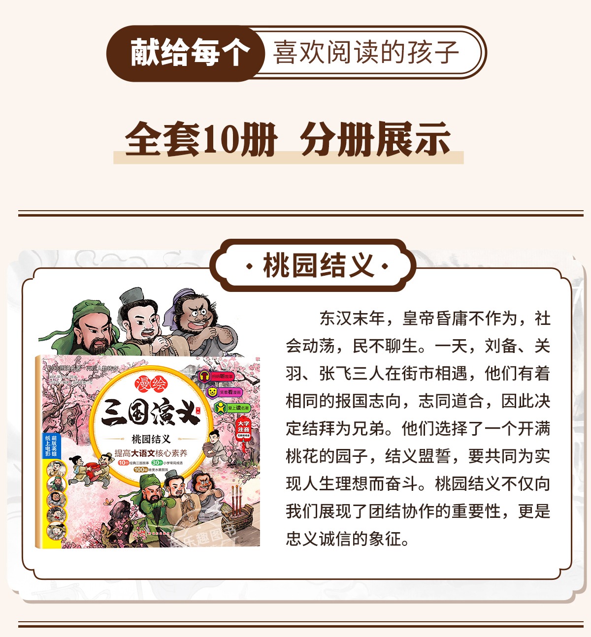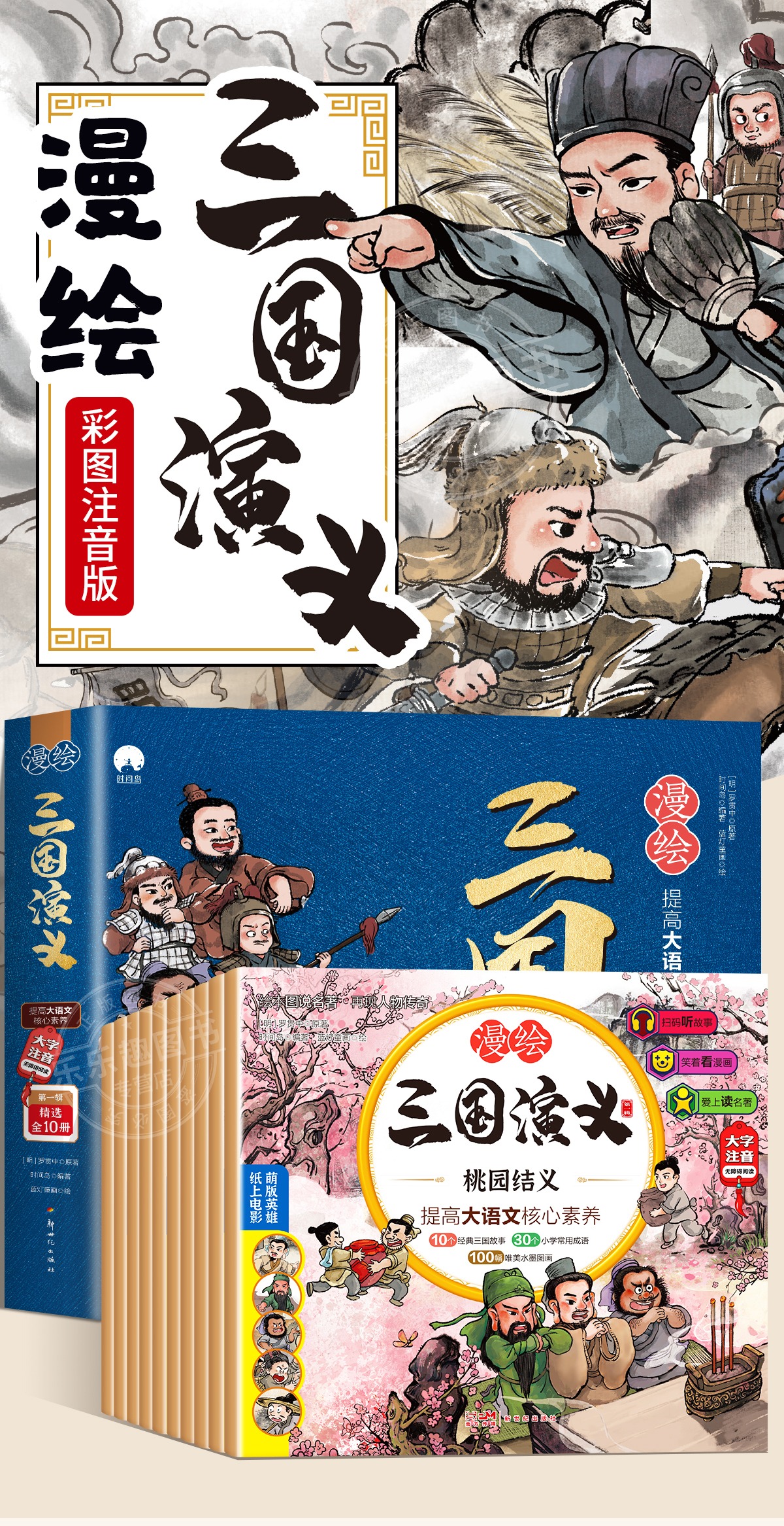 2023新版 三国演义儿童版绘本小学生版正版全10册漫绘版三国演义青少年注音漫画连环画有声书绘本阅读经典少儿四大名著读物小人书