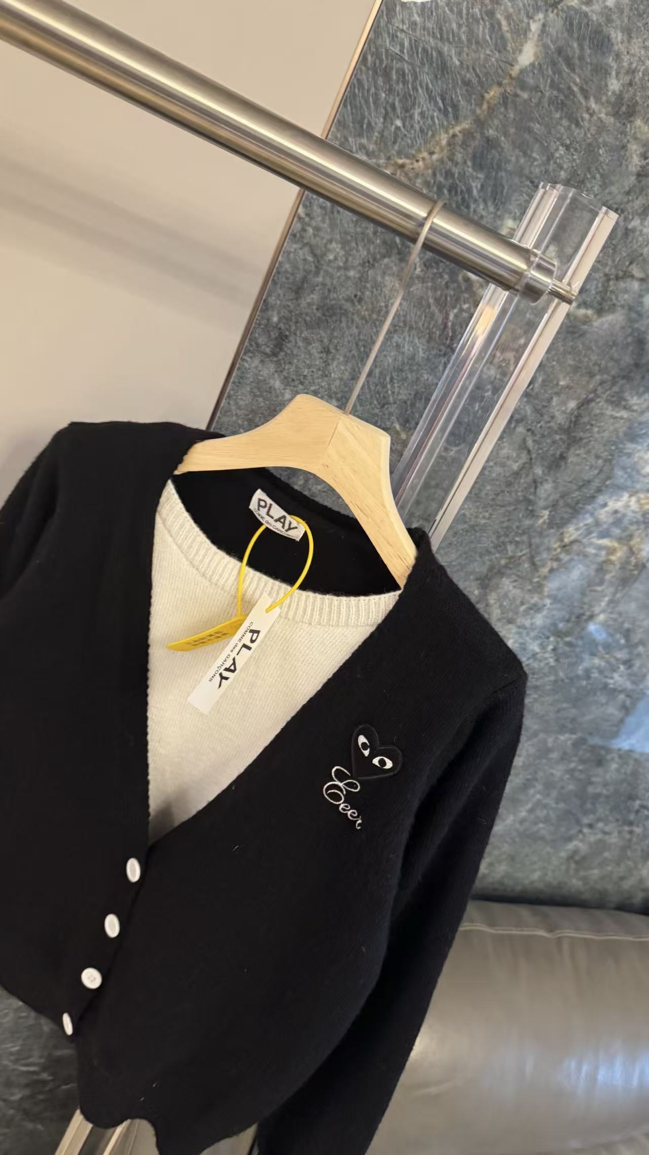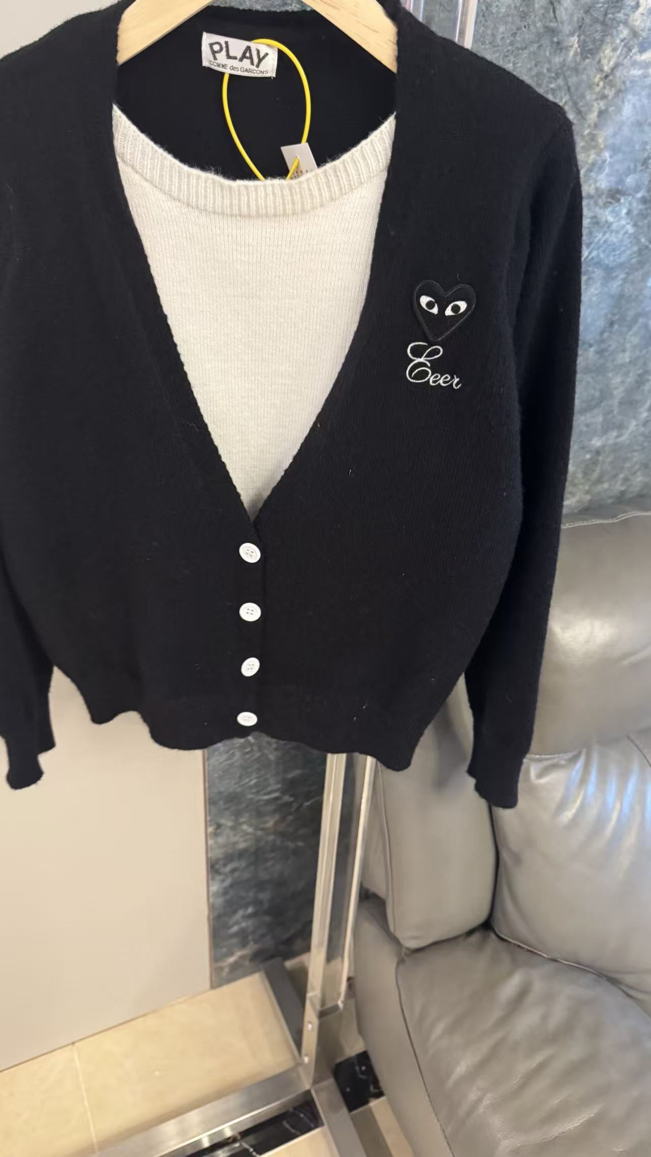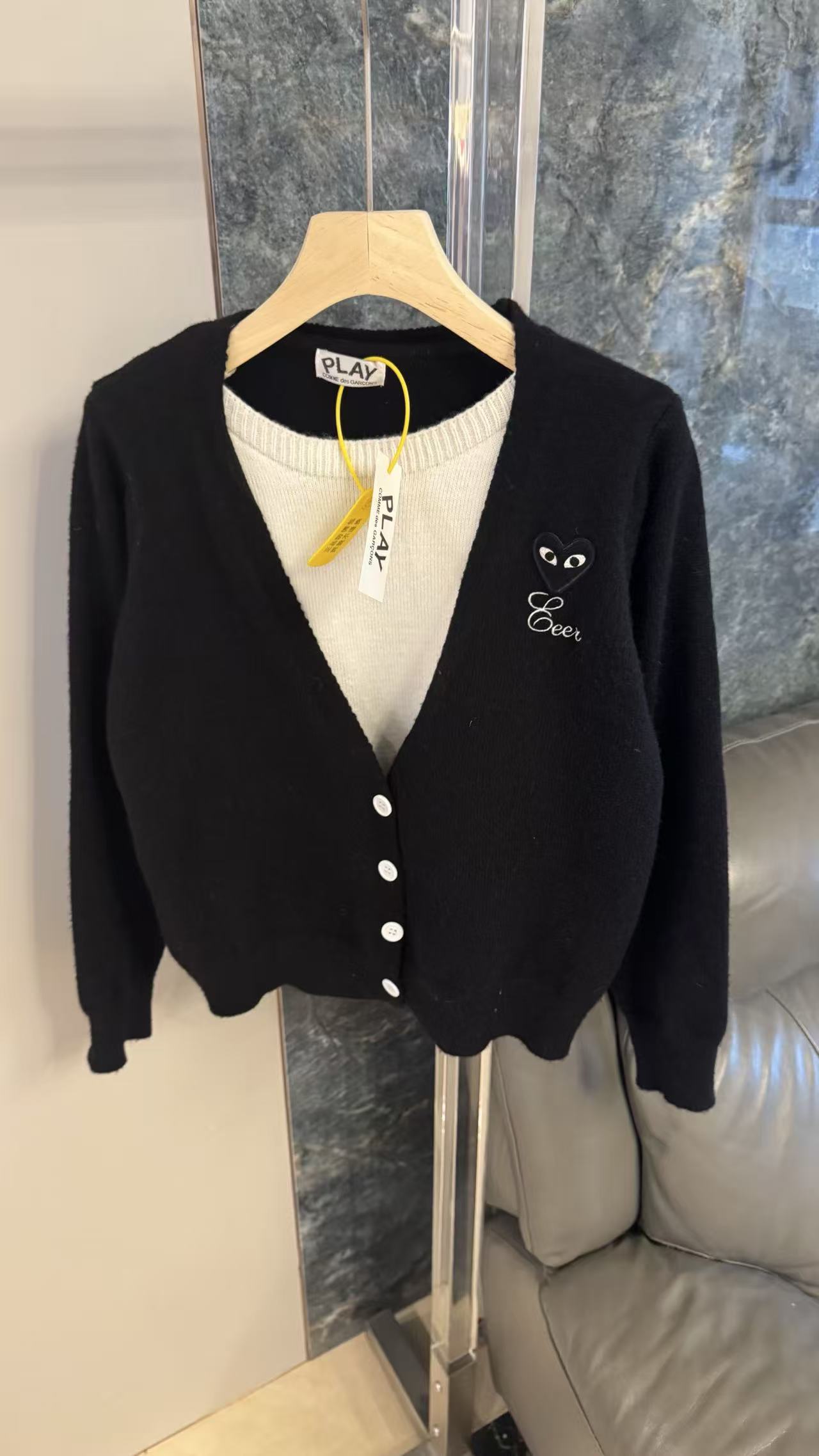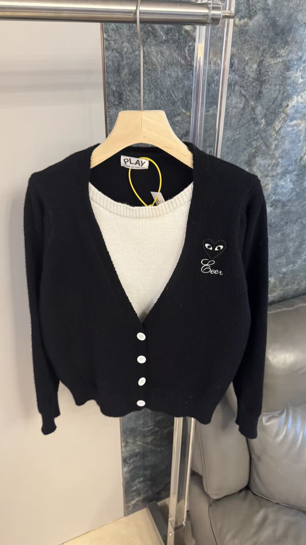 【9hd1】女士时尚休闲V领刺绣针织假两件开衫毛衣!!