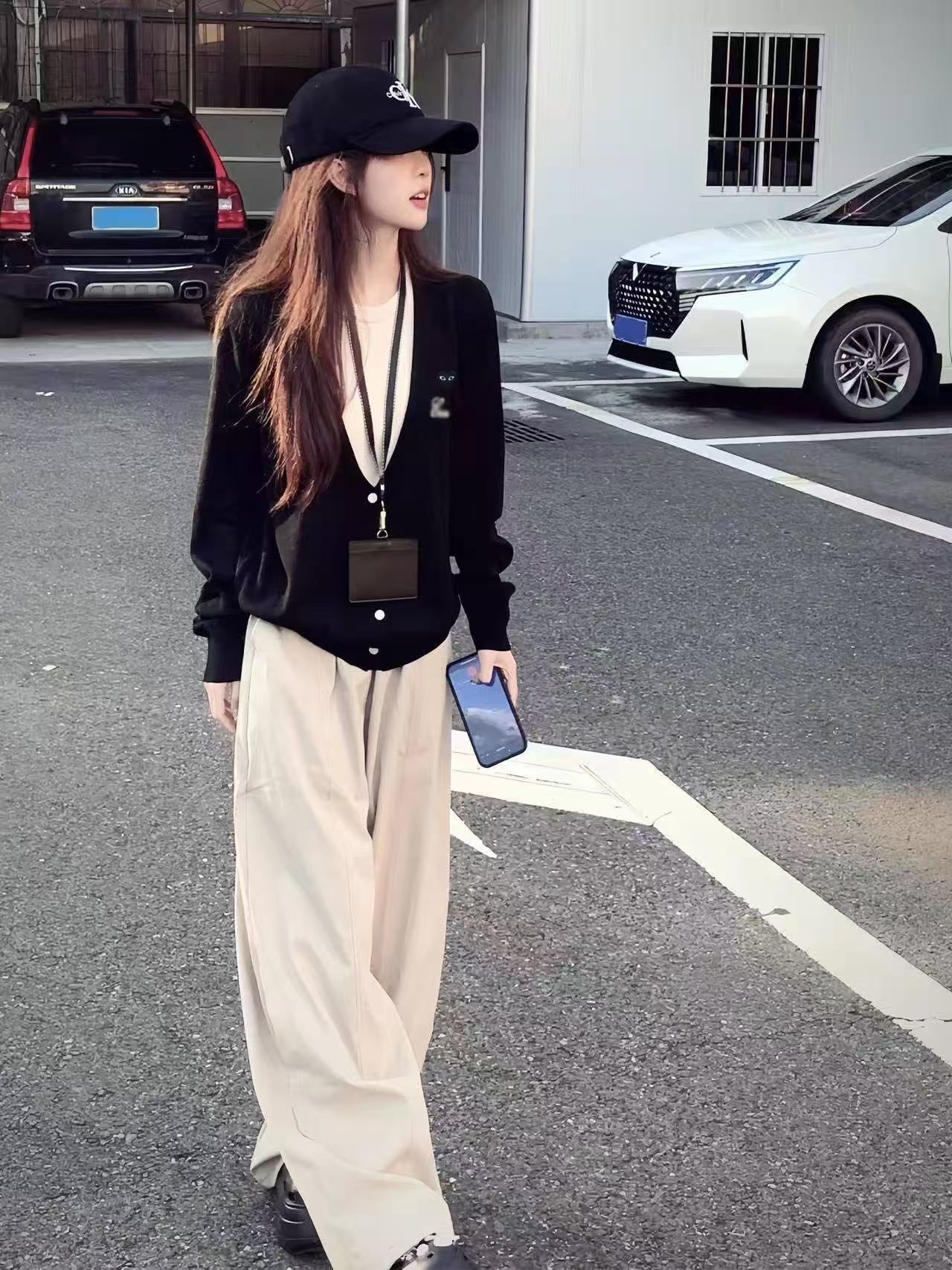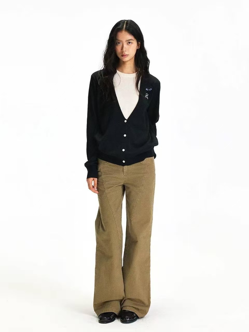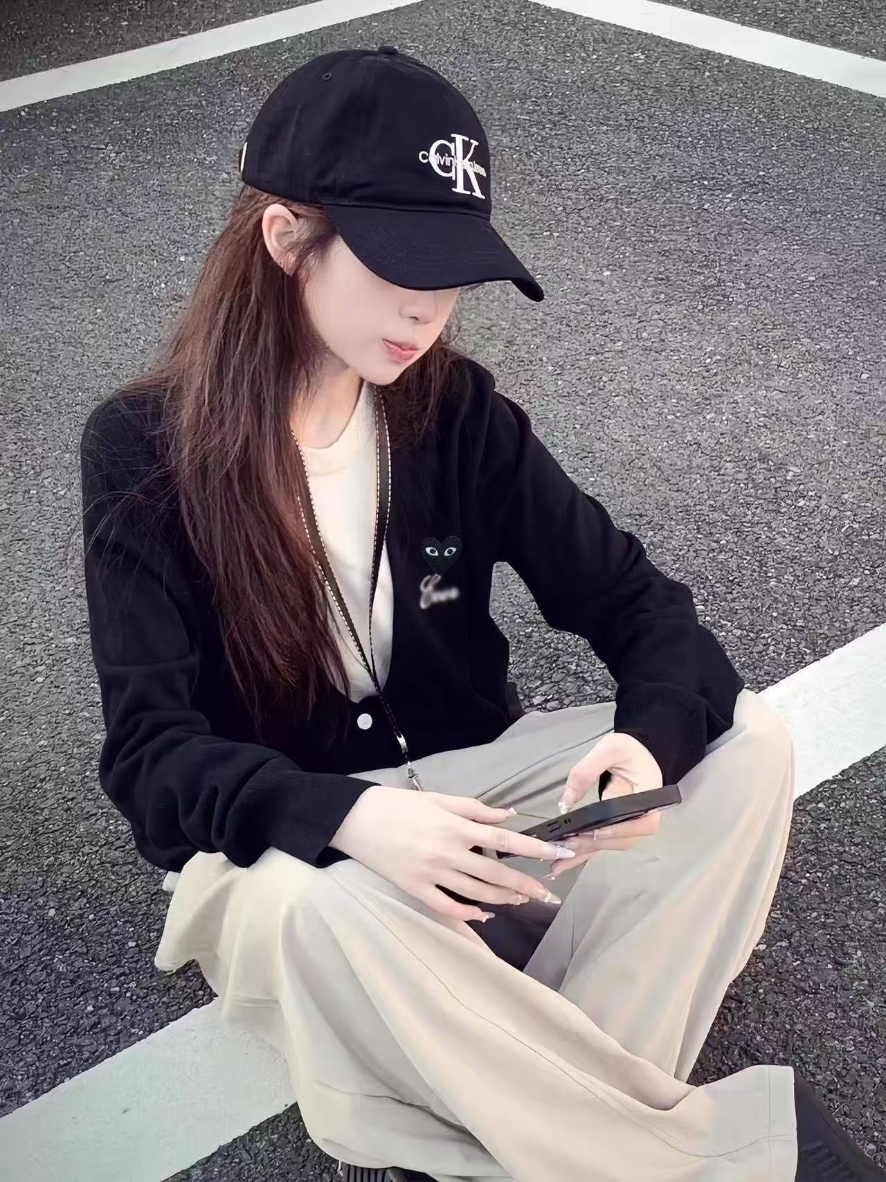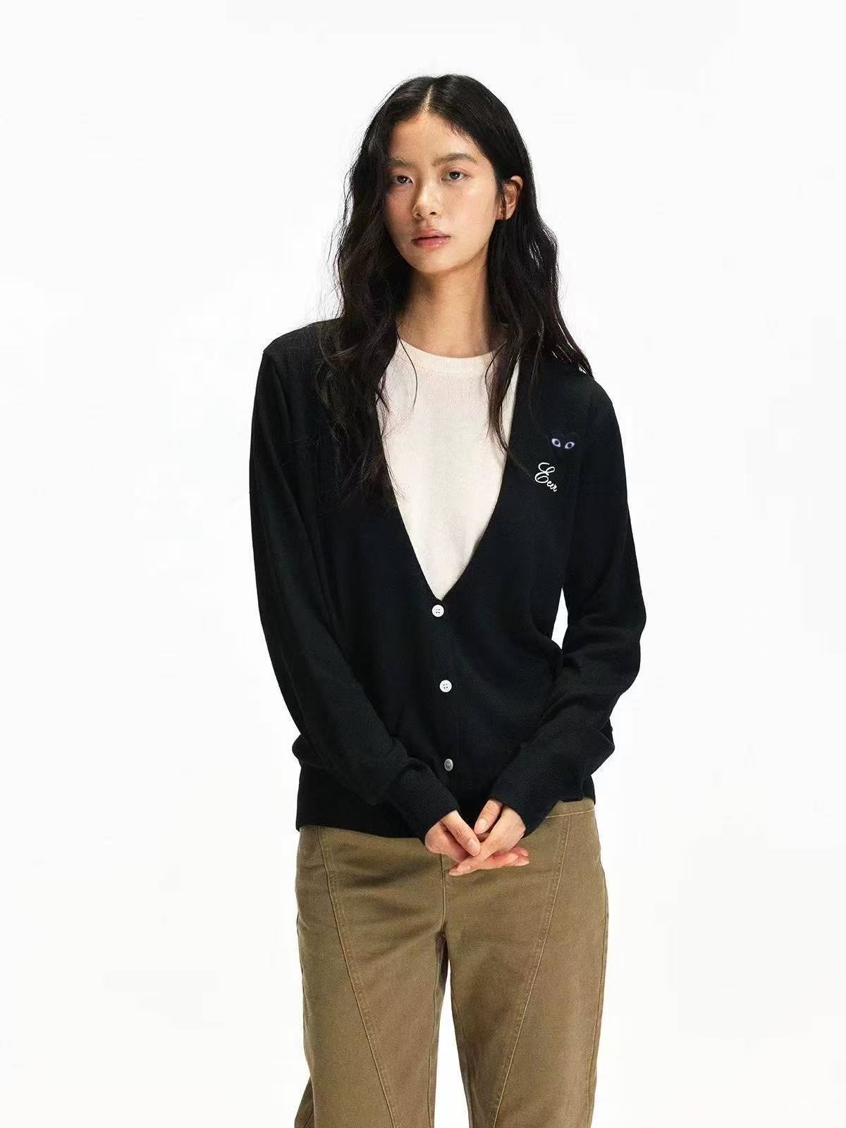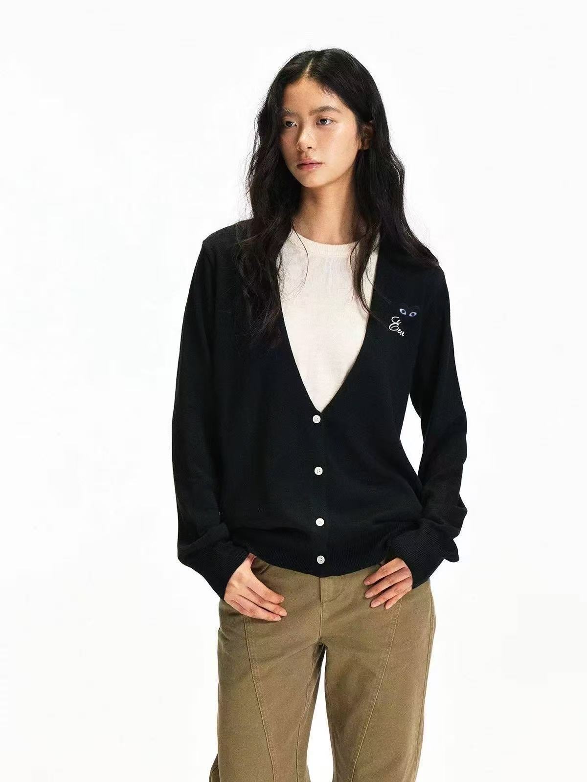 【9hd1】女士时尚休闲V领刺绣针织假两件开衫毛衣!!