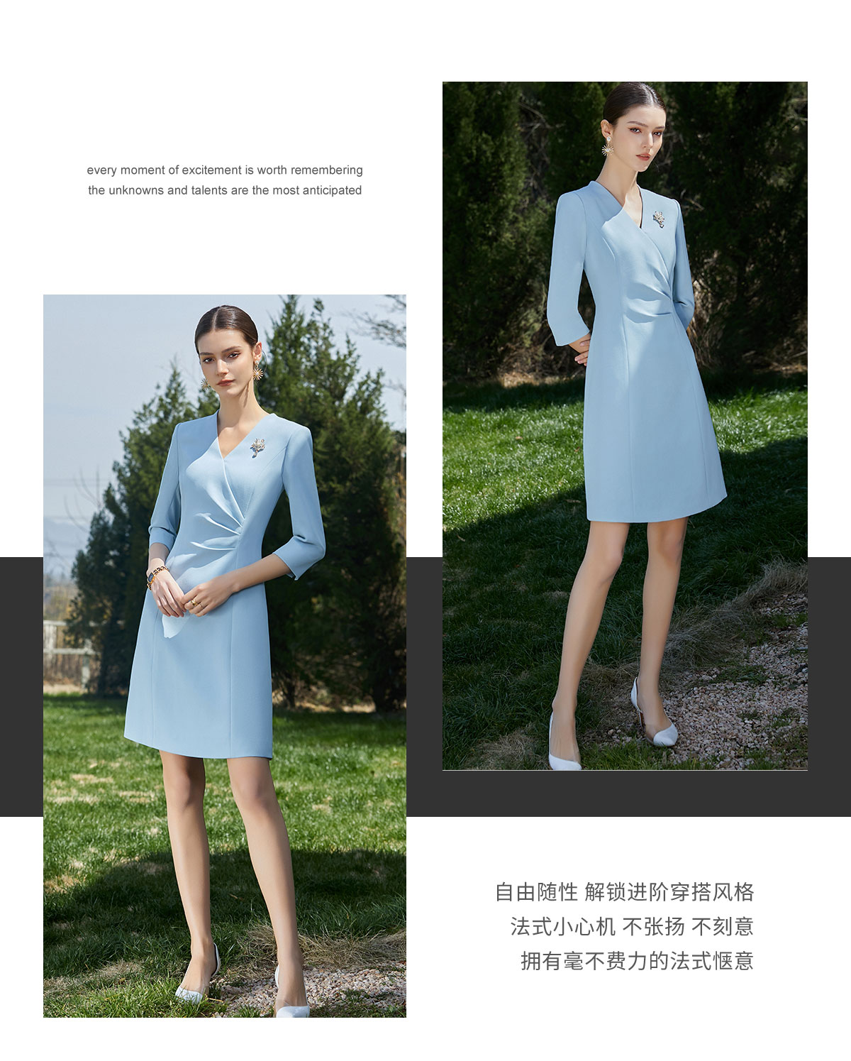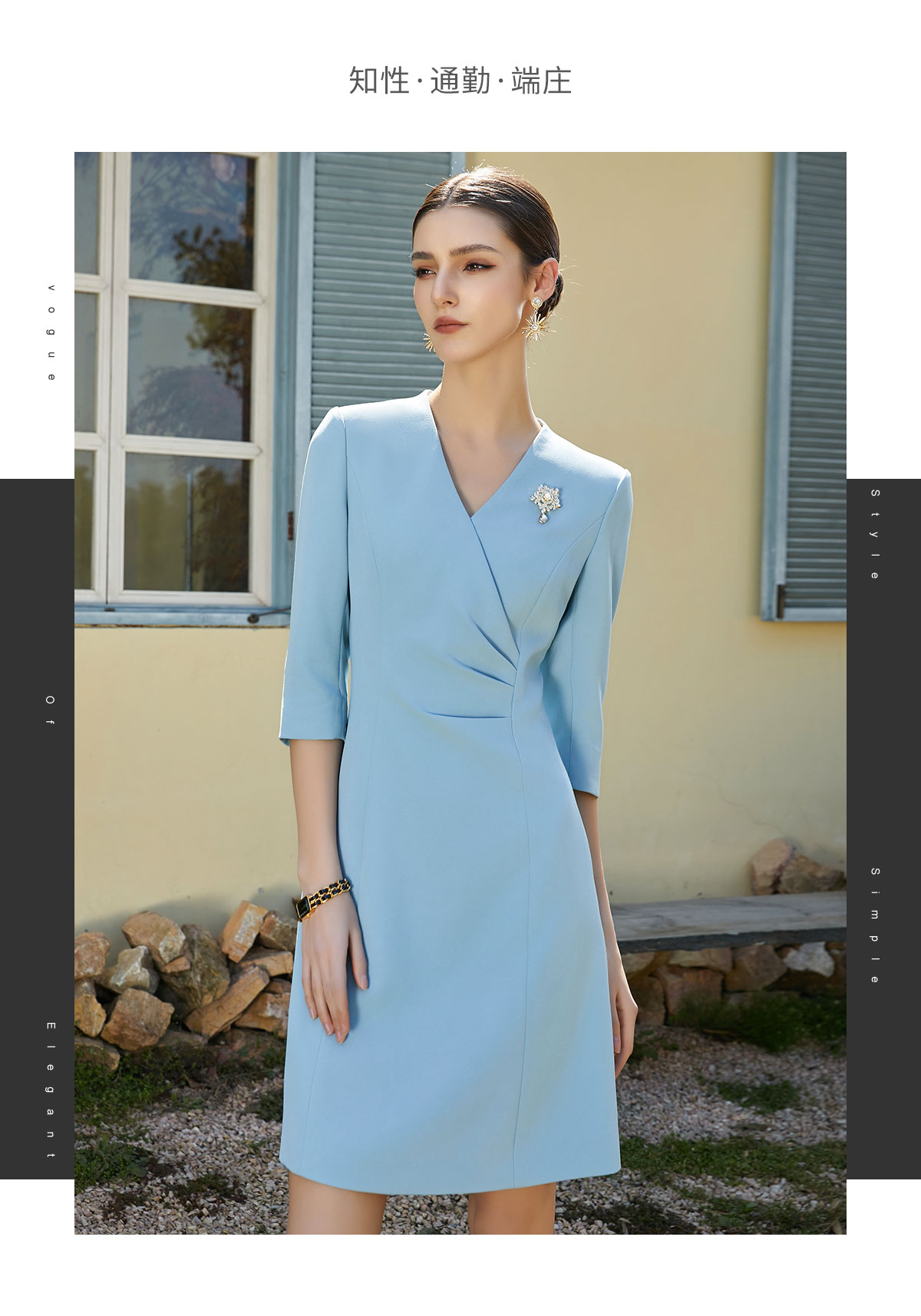 AD高级感职业连衣裙女士通勤OL西装裙夏季七分袖工作服上镜面试装