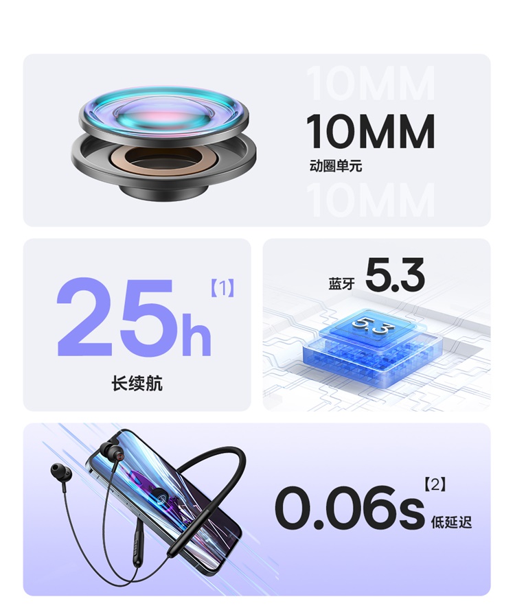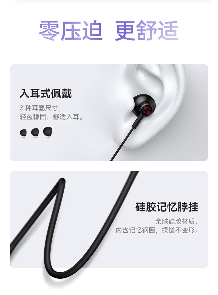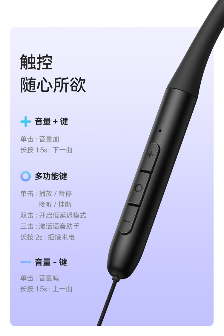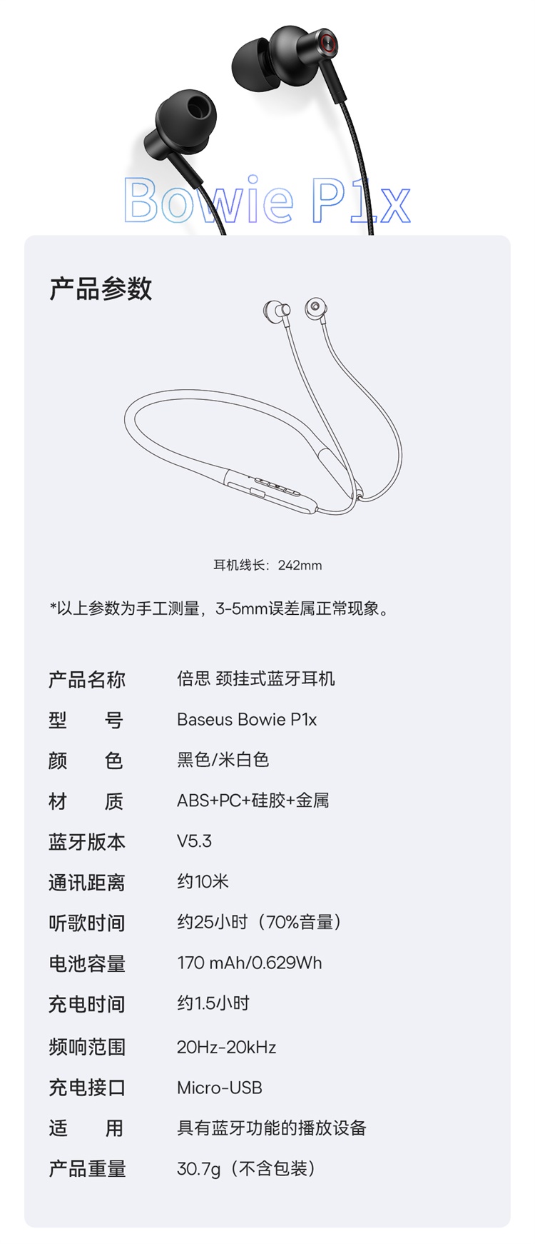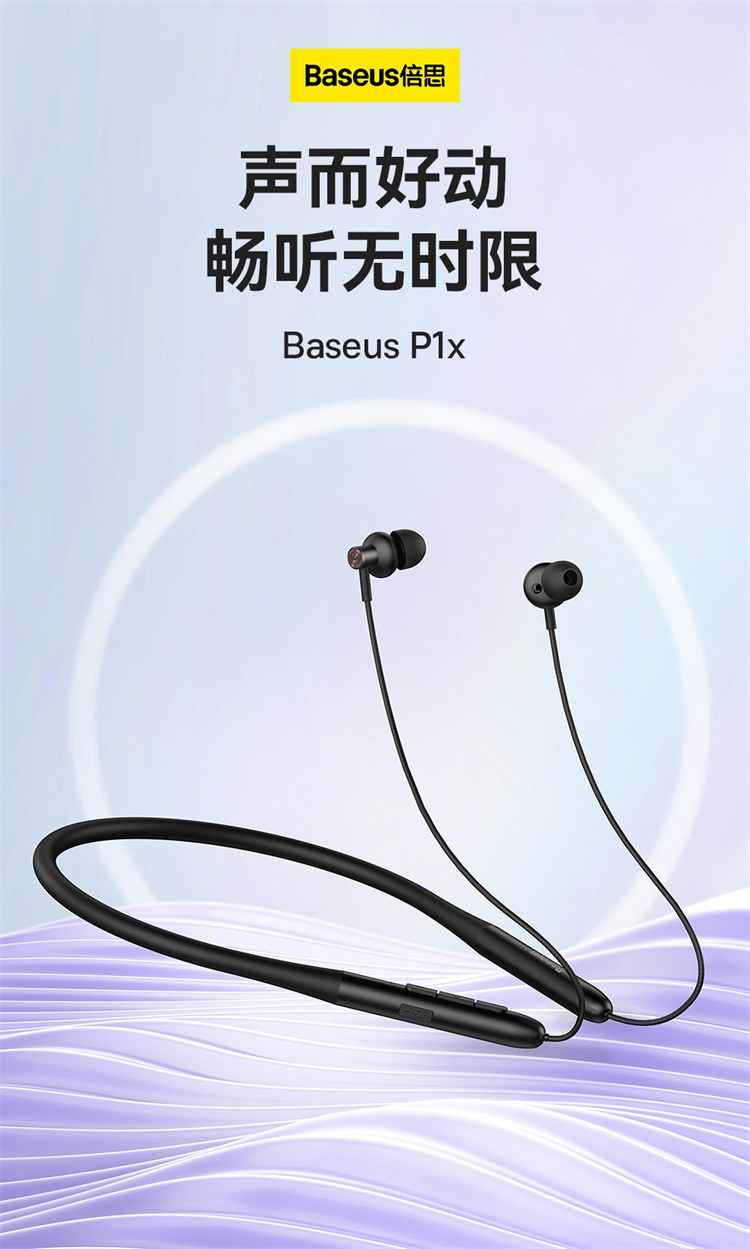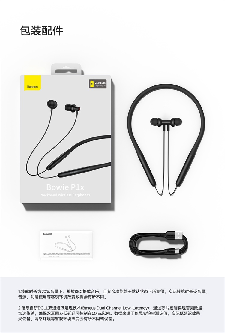 倍思 Bowie系列 P1x 入耳颈挂式蓝牙耳机 (含:简易通用数据线Micro2.4A 0.5M)