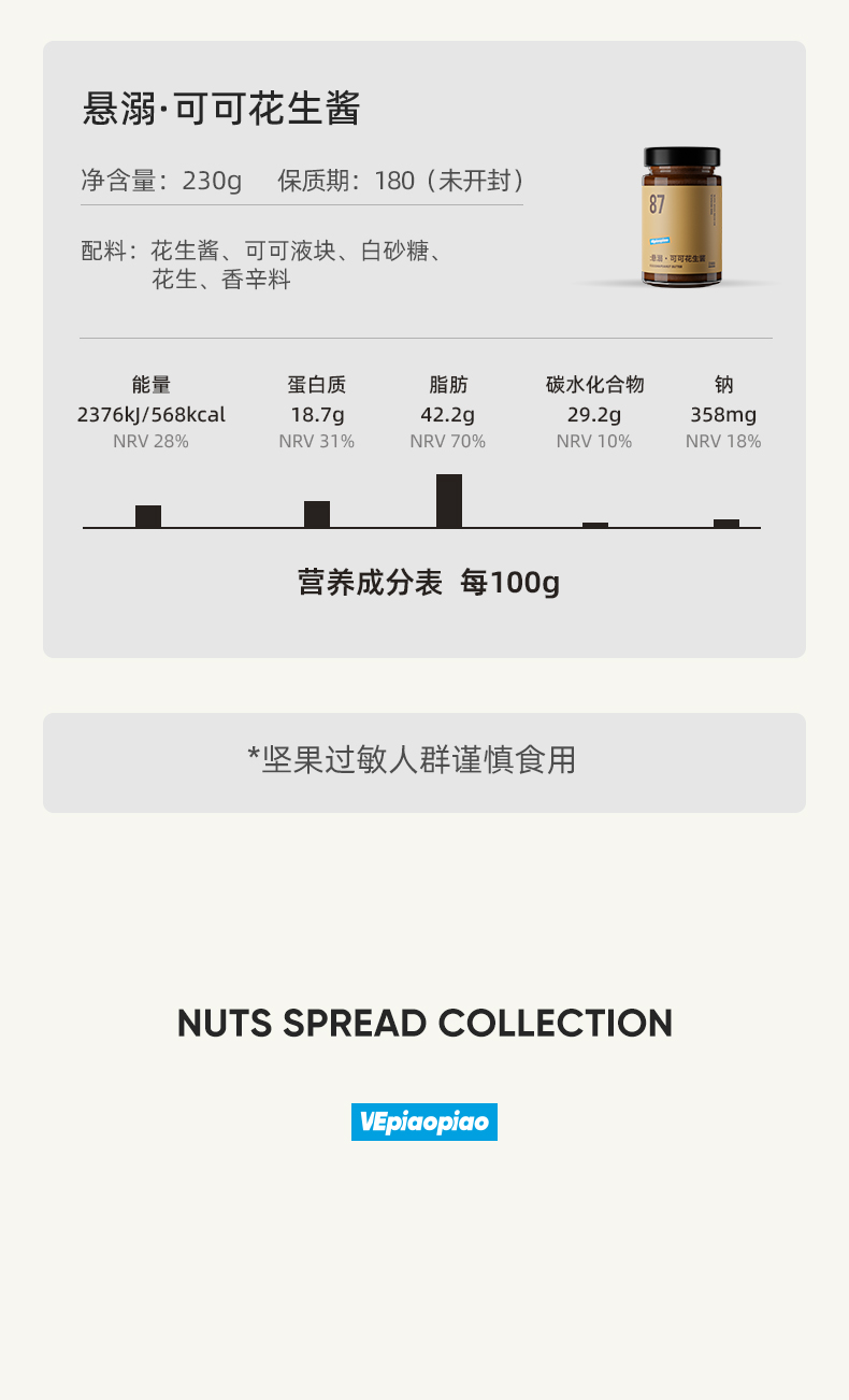 VEpiaopiao 坚果酱合辑 纯花生酱/黑芝麻酱/开心果酱